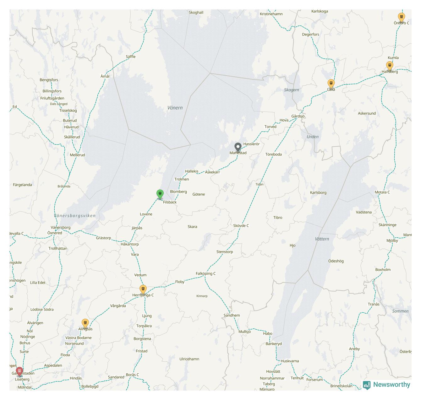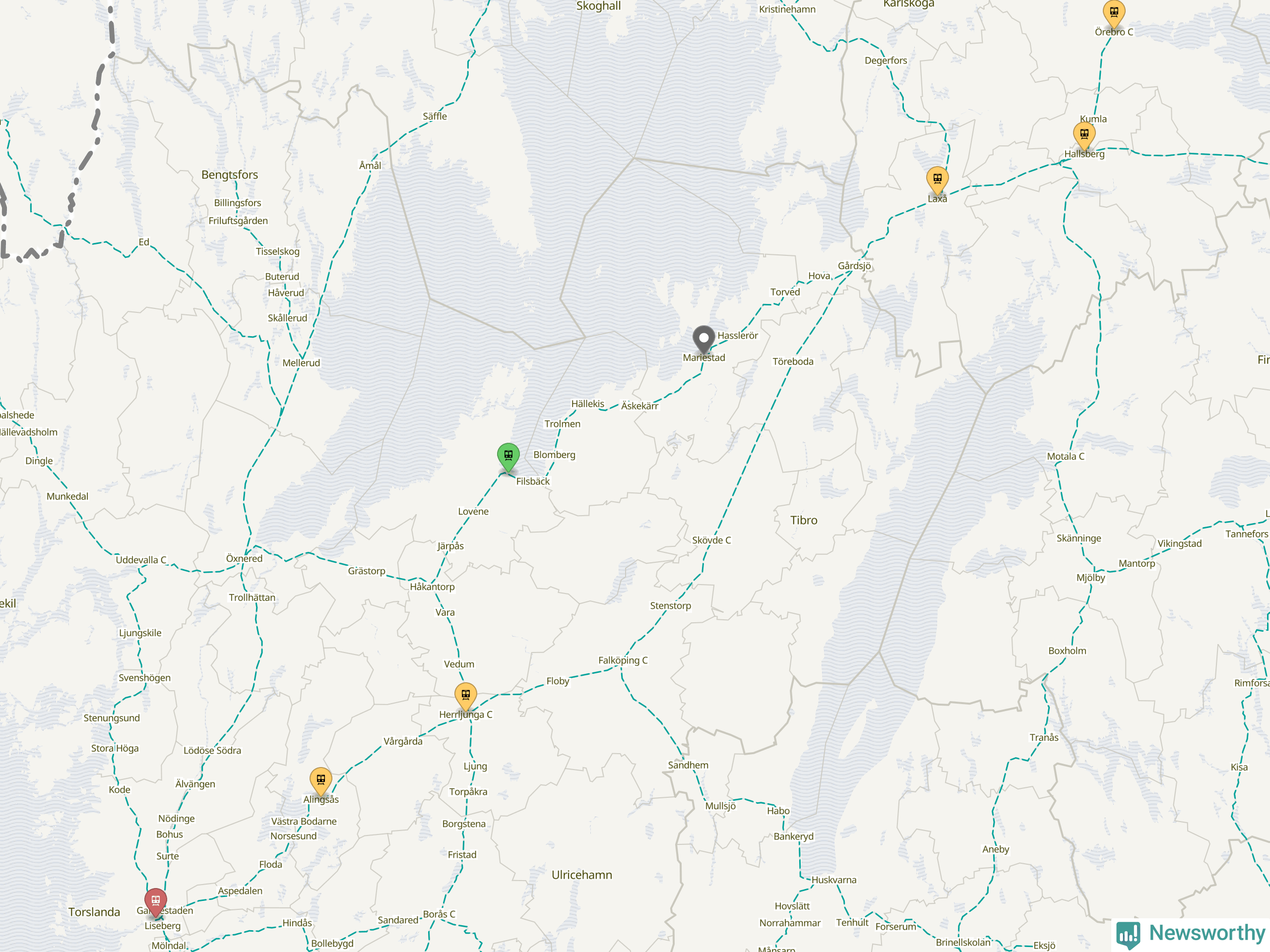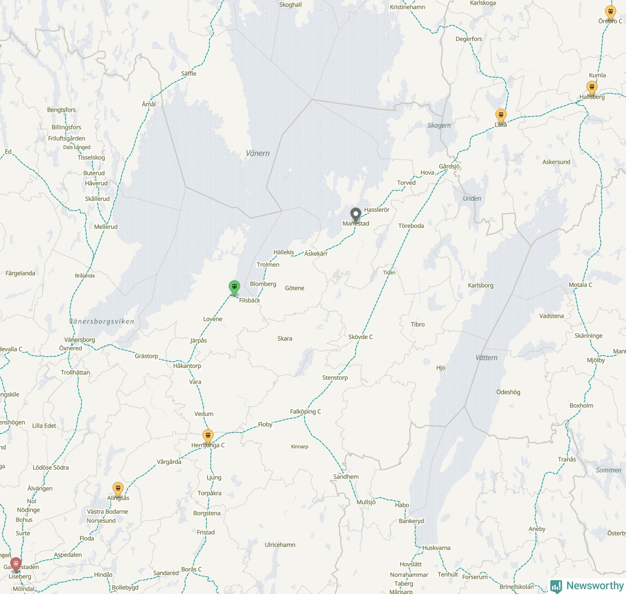 Kartdata från Mapbox, Newsworthy, OpenStreetMap och Trafikverket. Uppgifter om sträckor med passagerartrafik från jarnvag.net.