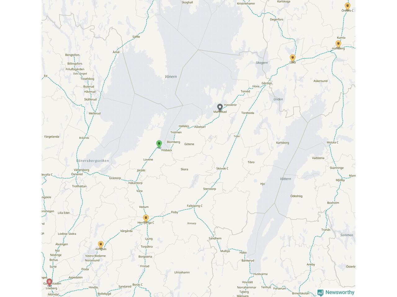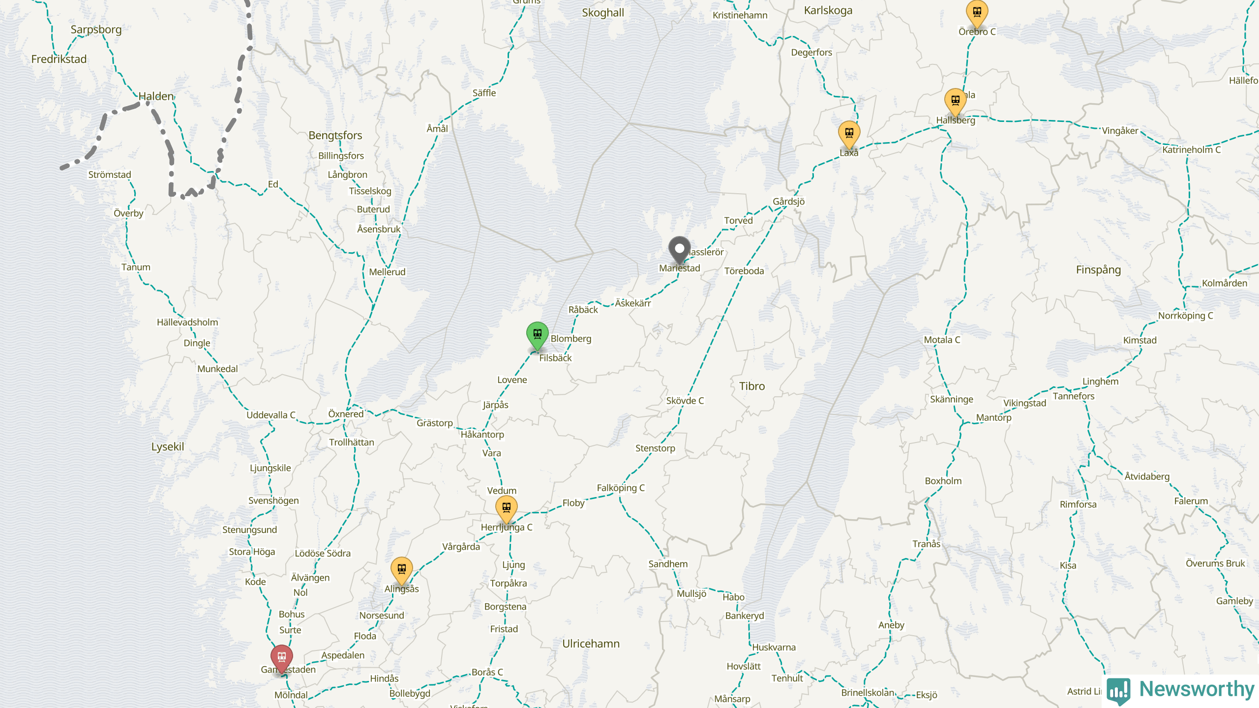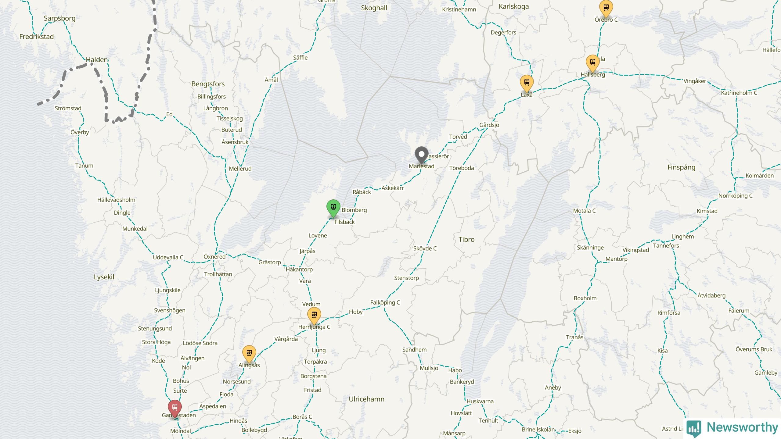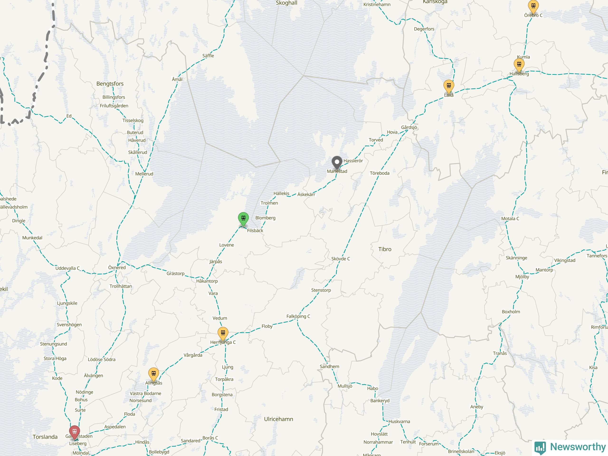 Kartdata från Mapbox, Newsworthy, OpenStreetMap och Trafikverket. Uppgifter om sträckor med passagerartrafik från jarnvag.net.