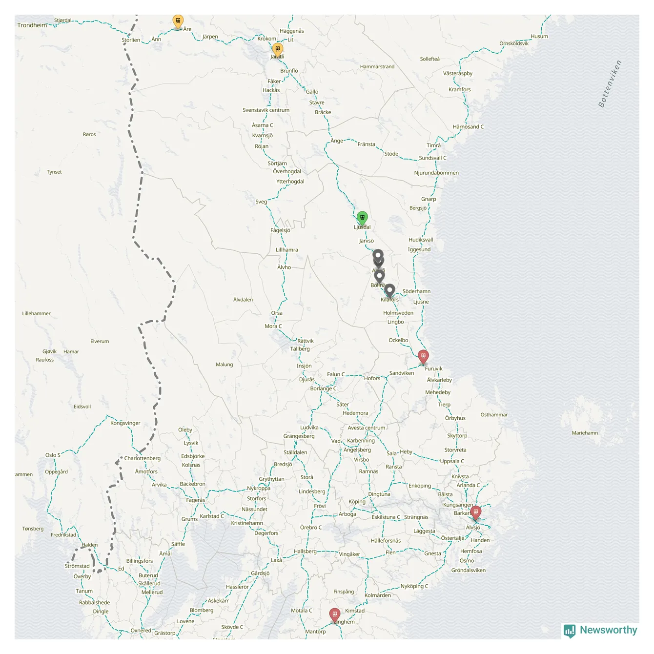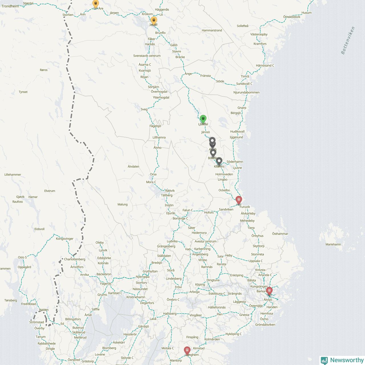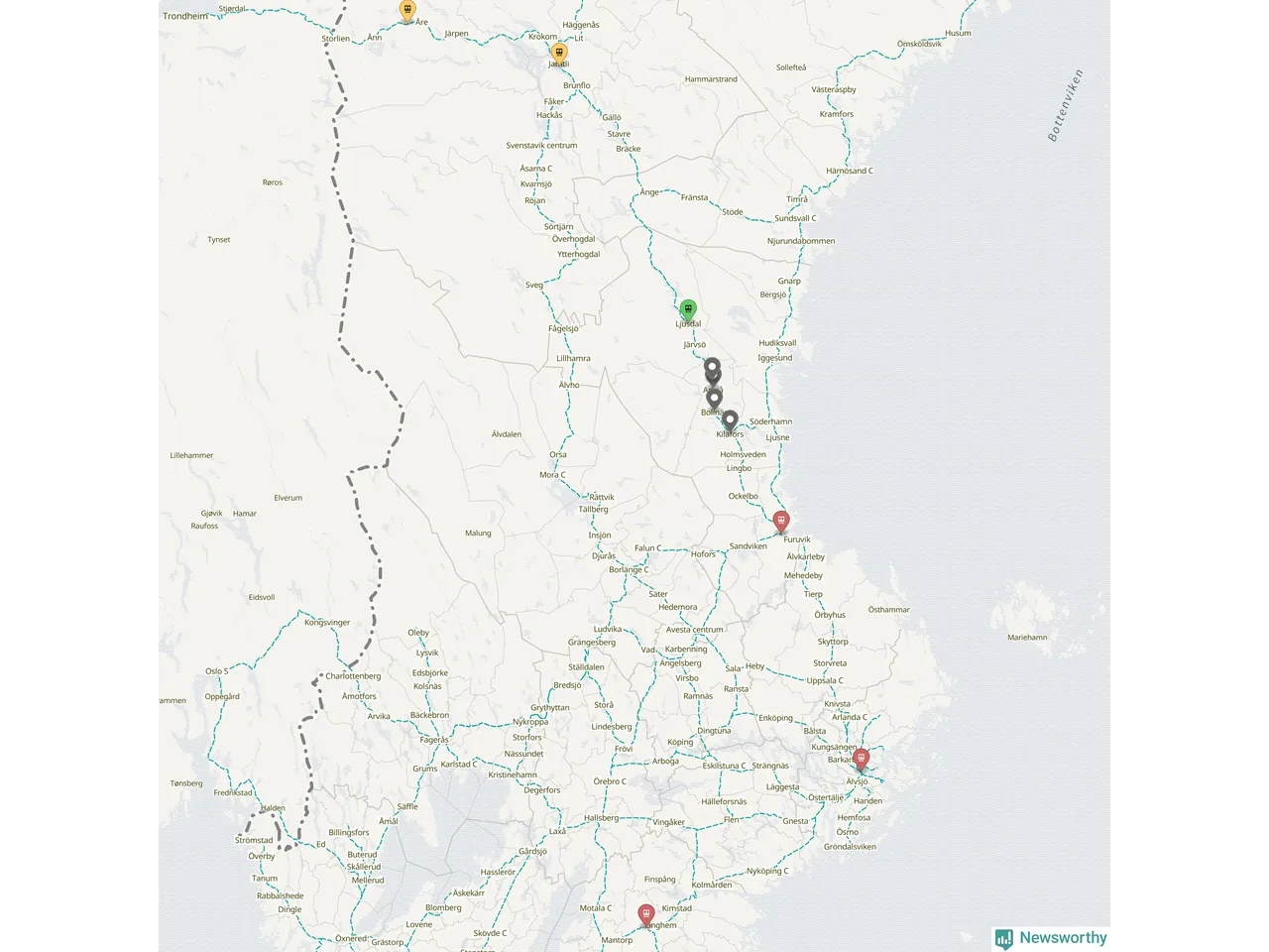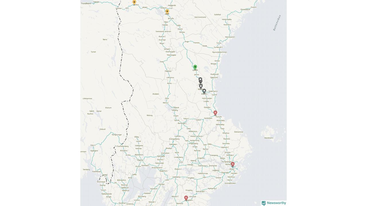 Kartdata från Mapbox, Newsworthy, OpenStreetMap och Trafikverket. Uppgifter om sträckor med passagerartrafik från jarnvag.net.
