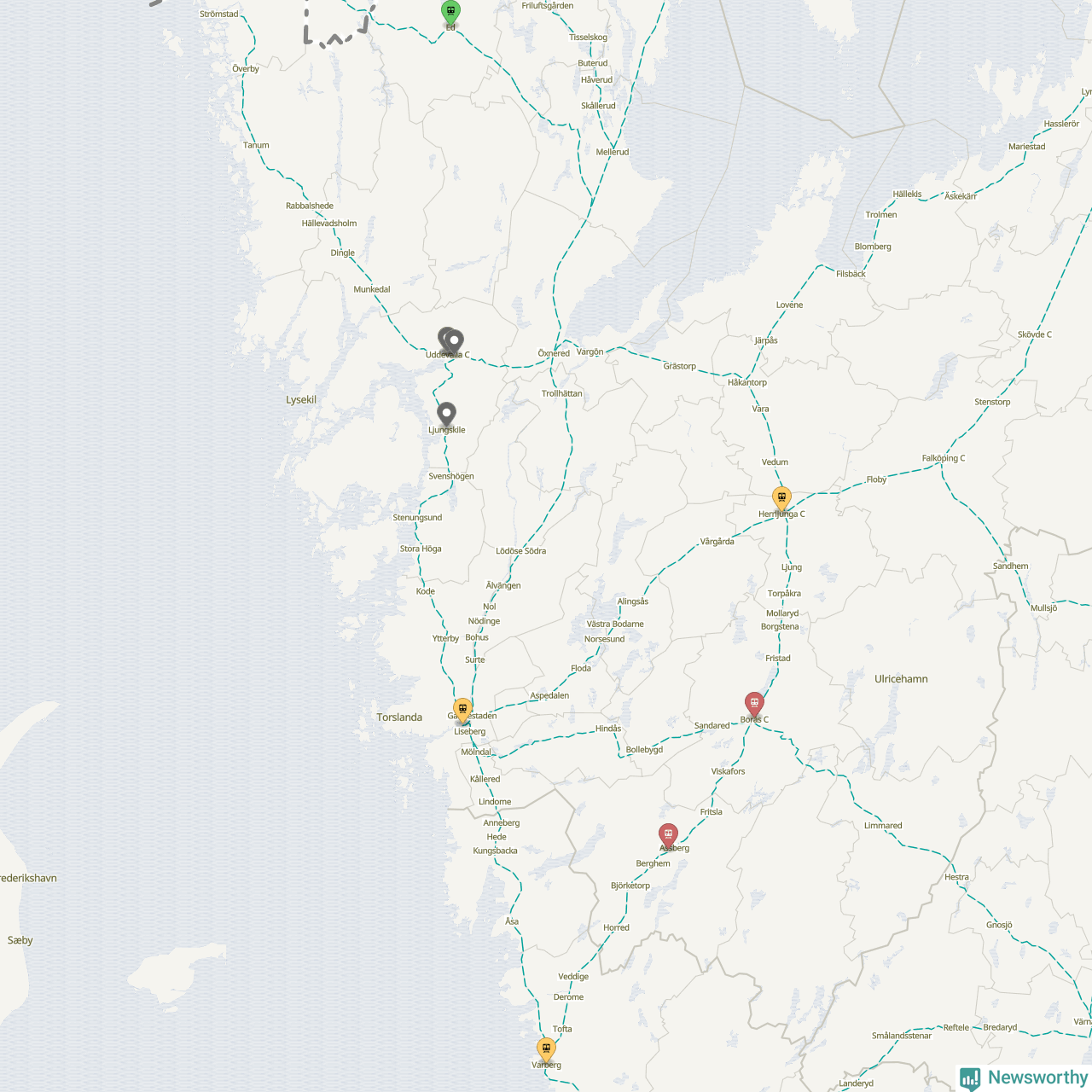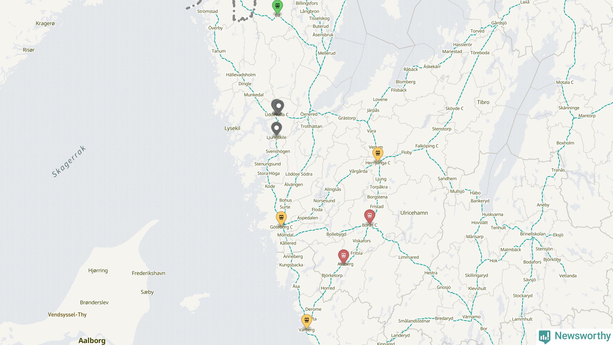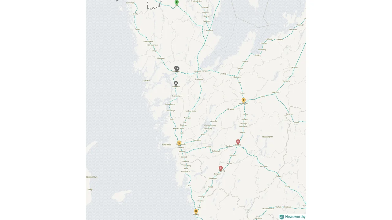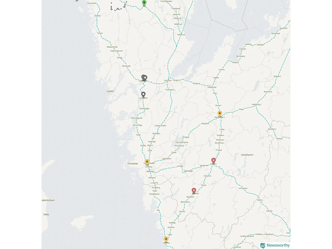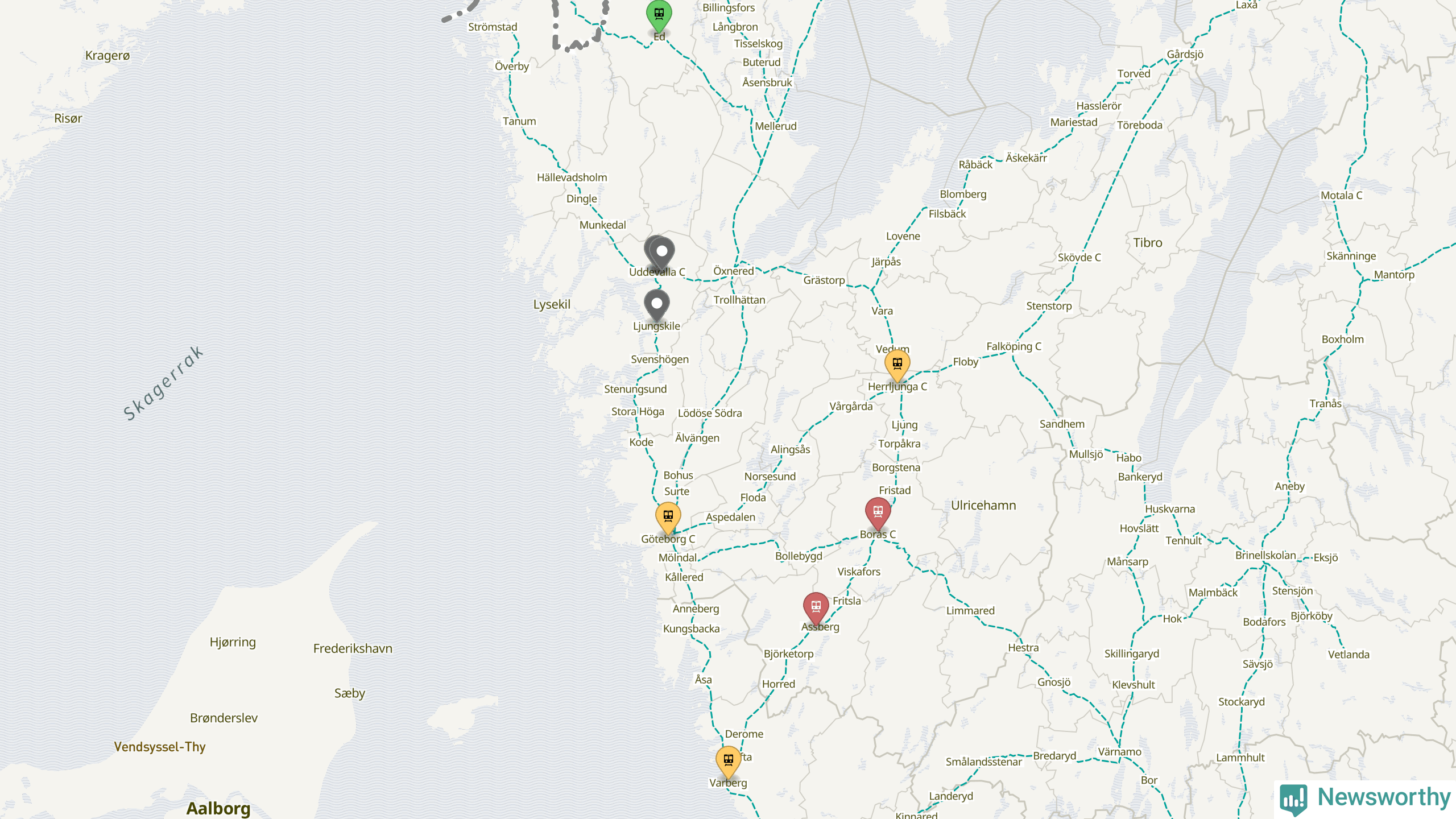 Kartdata från Mapbox, Newsworthy, OpenStreetMap och Trafikverket. Uppgifter om sträckor med passagerartrafik från jarnvag.net.
