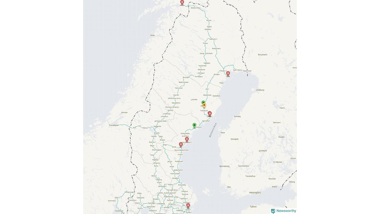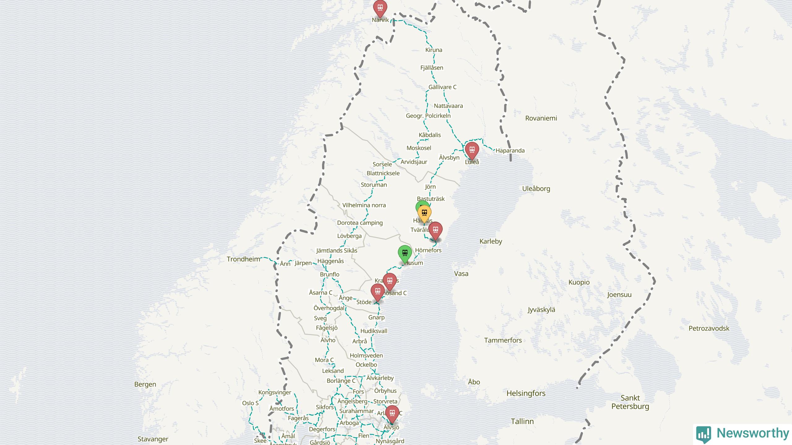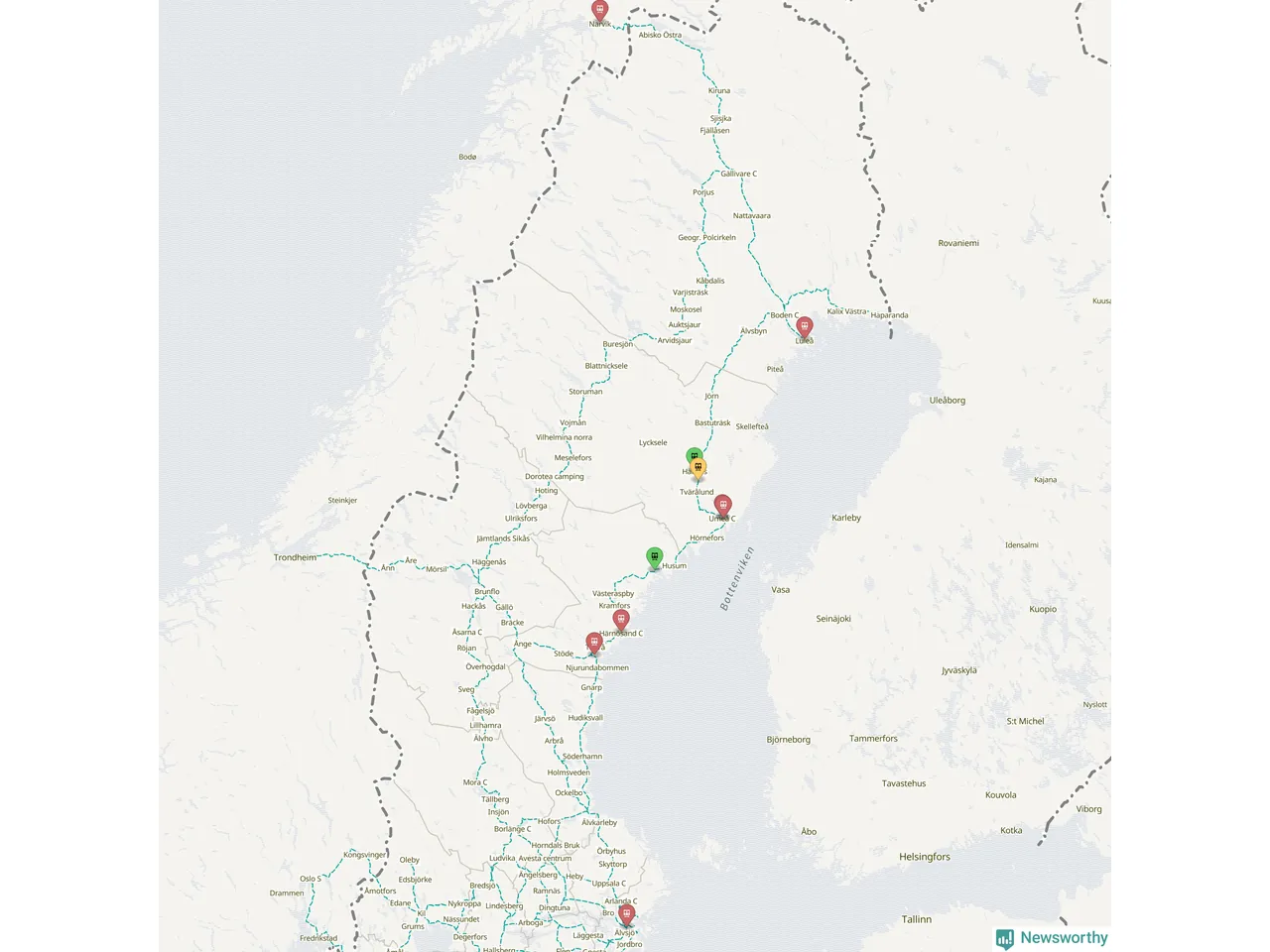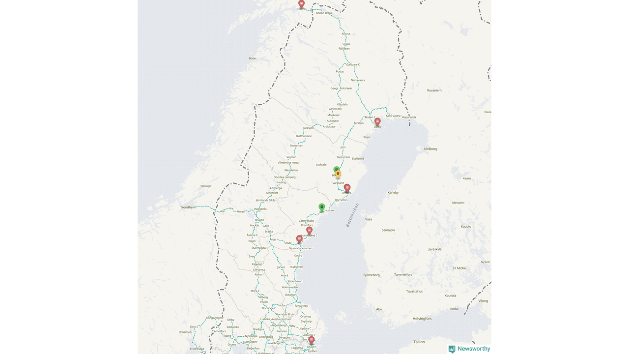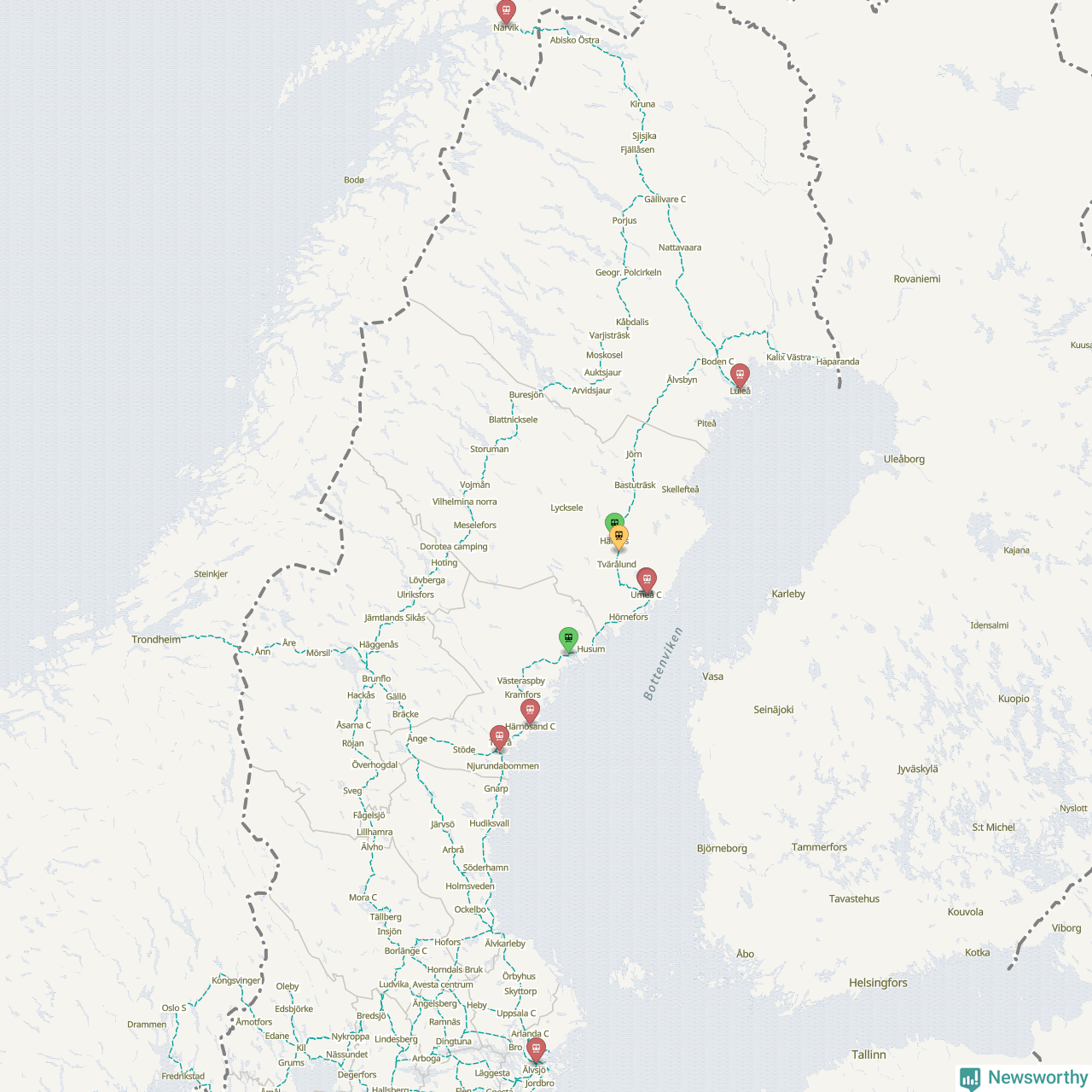 Kartdata från Mapbox, Newsworthy, OpenStreetMap och Trafikverket. Uppgifter om sträckor med passagerartrafik från jarnvag.net.