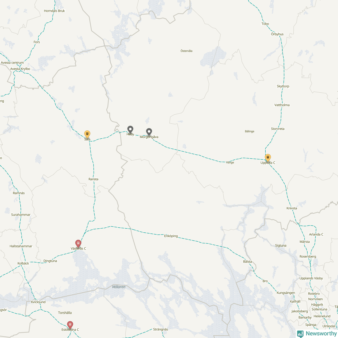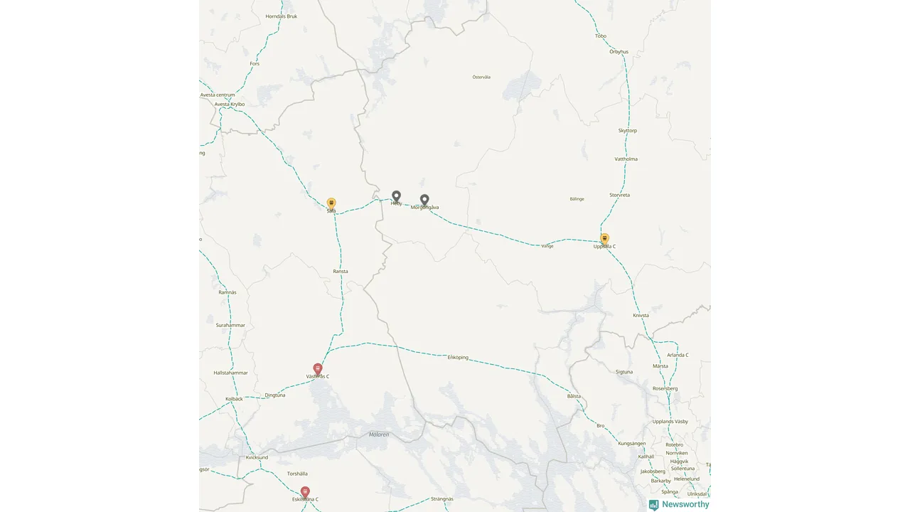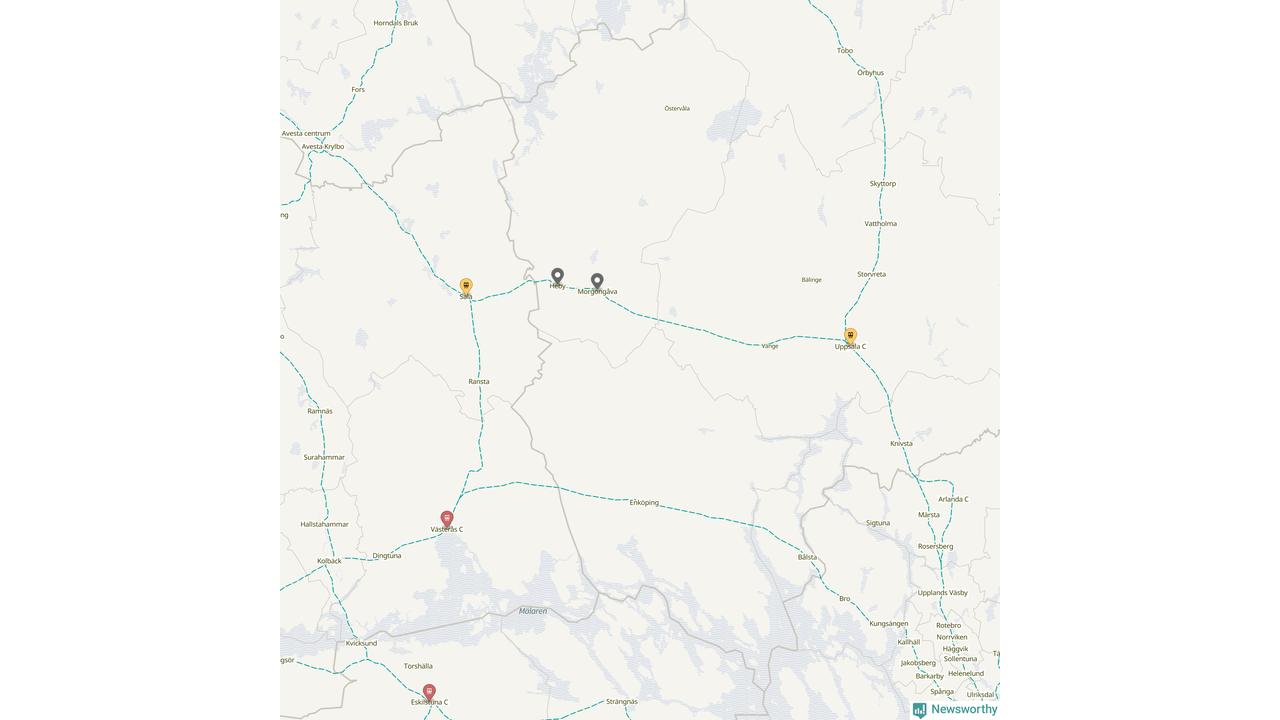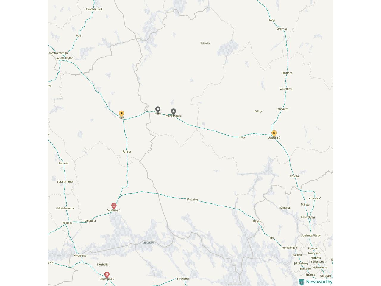 Kartdata från Mapbox, Newsworthy, OpenStreetMap och Trafikverket. Uppgifter om sträckor med passagerartrafik från jarnvag.net.