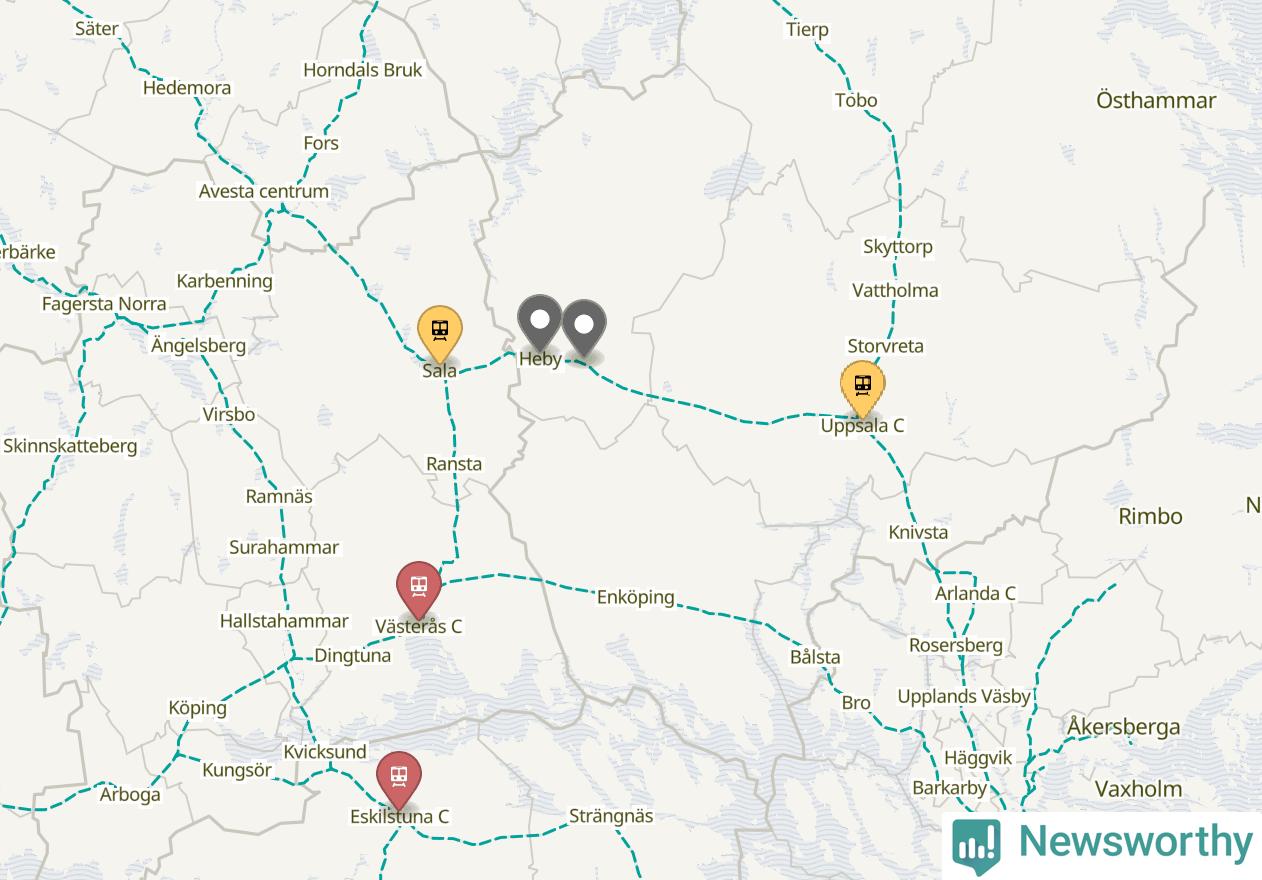 Som försenat räknas ett tåg när det varit minst fem minuter sent vid ankomst till stationerna i Heby kommun.
