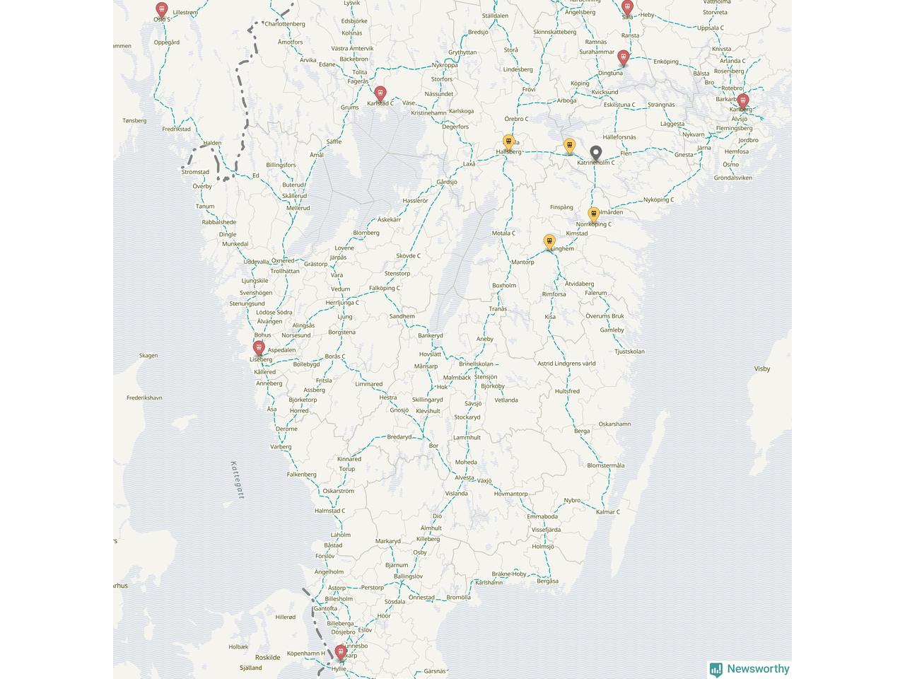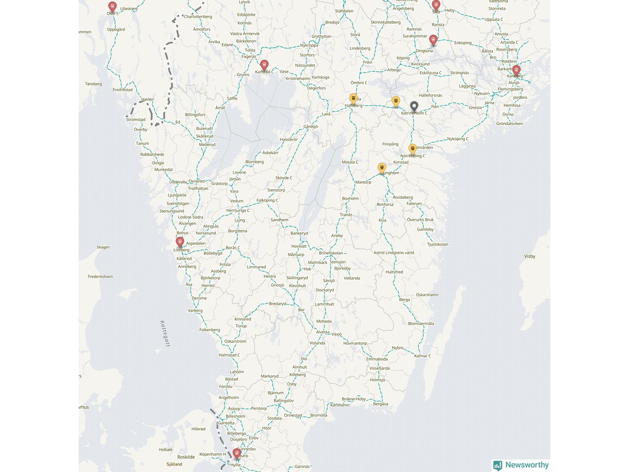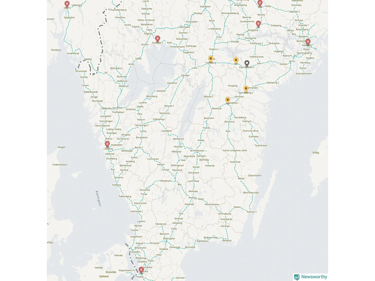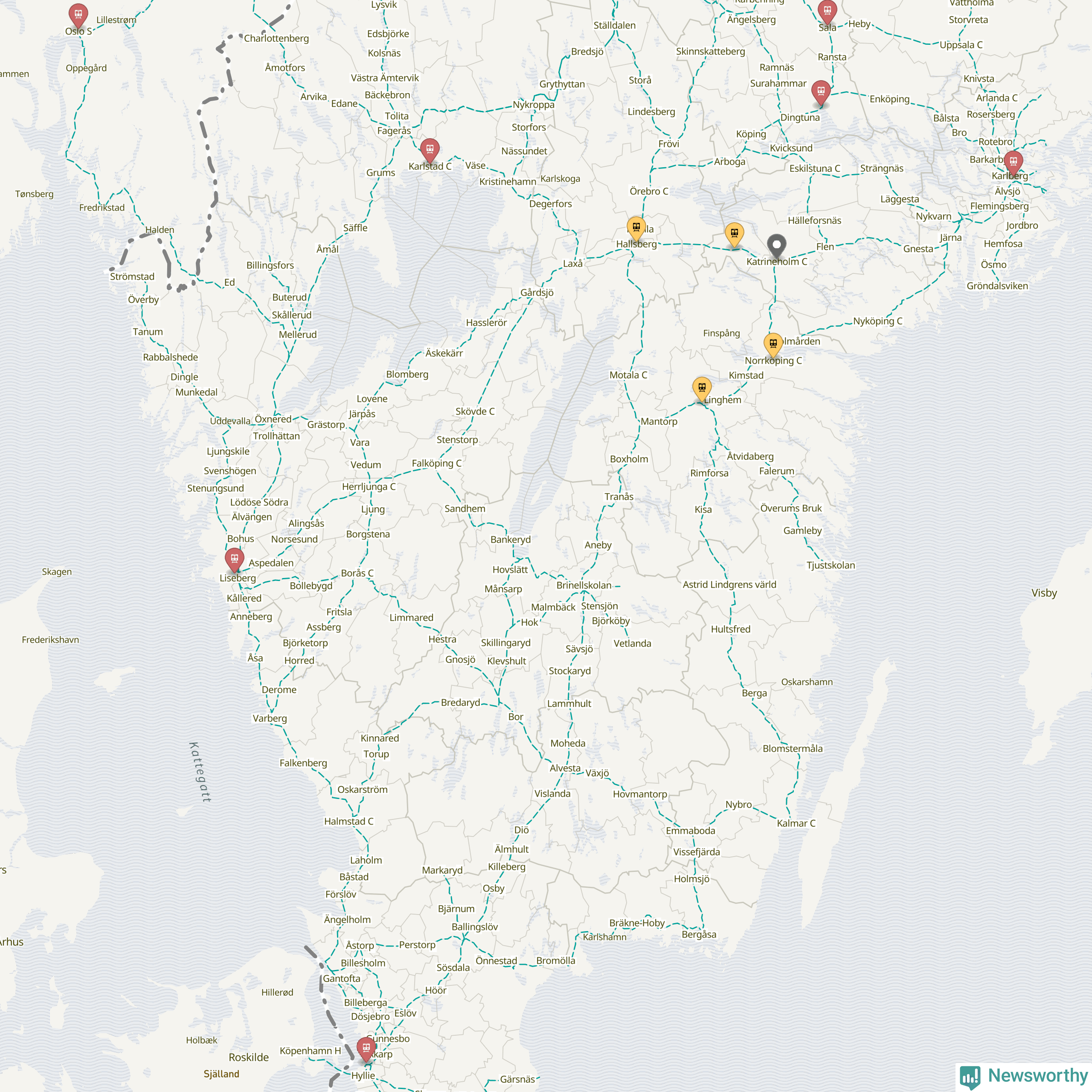 Kartdata från Mapbox, Newsworthy, OpenStreetMap och Trafikverket. Uppgifter om sträckor med passagerartrafik från jarnvag.net.