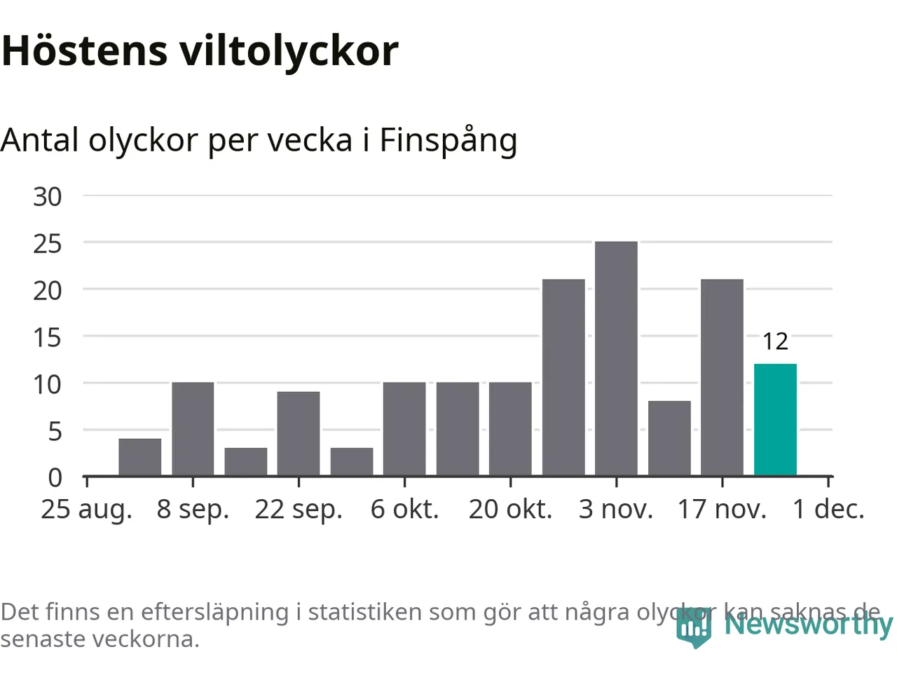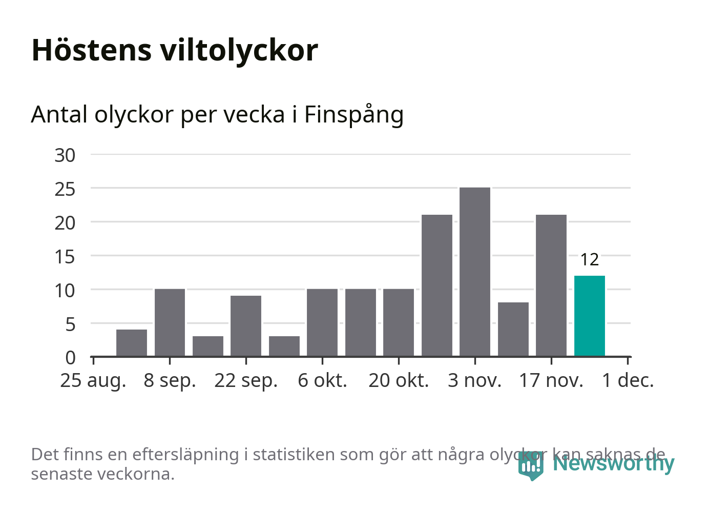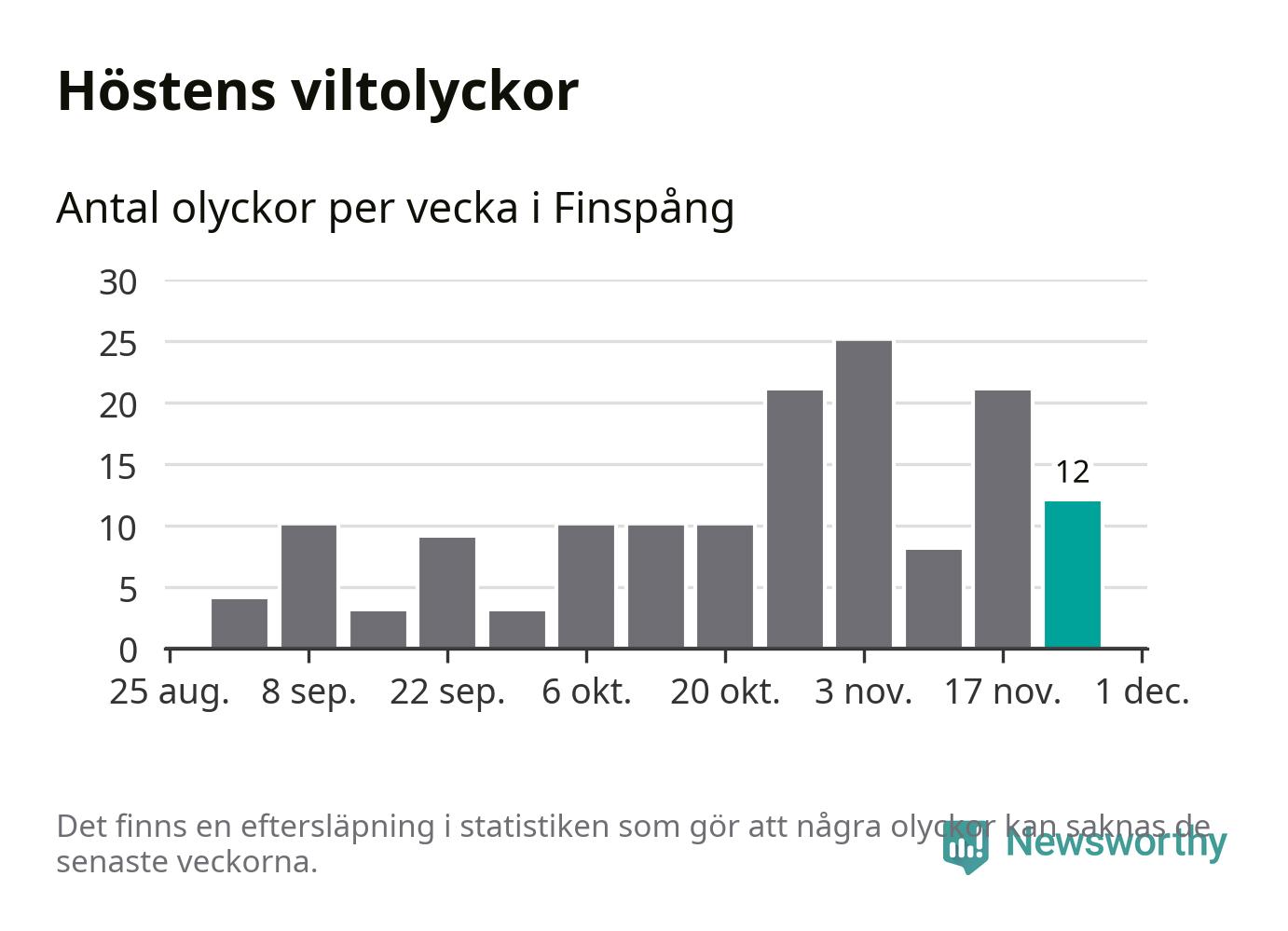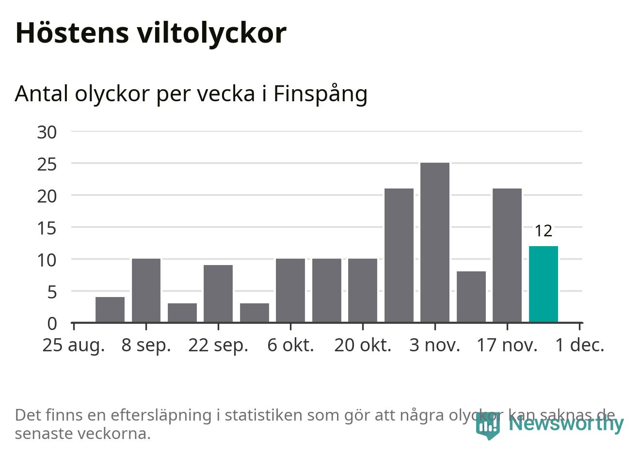 Hittills har tolv viltolyckor rapporterats in i Finspångs kommun från vecka 48. Se listan här.