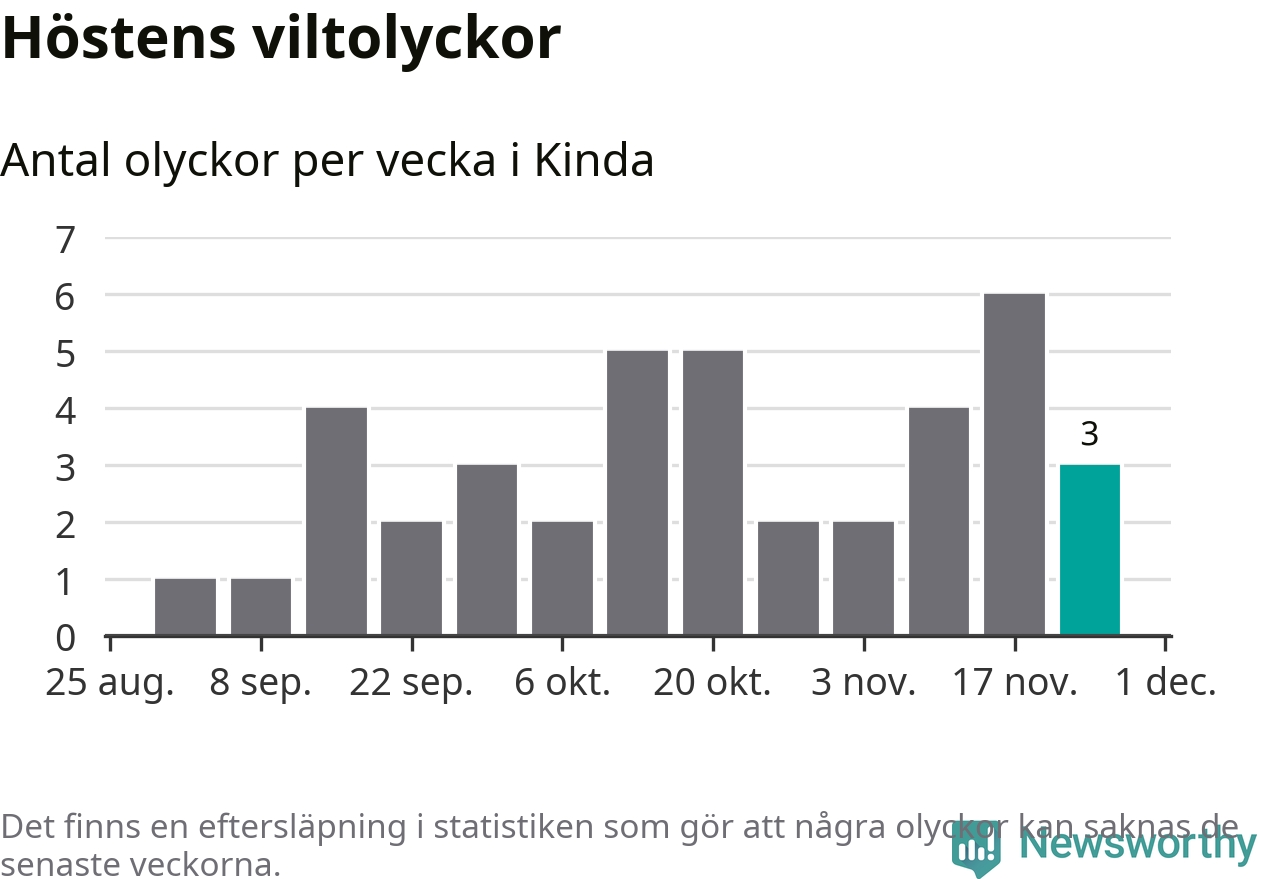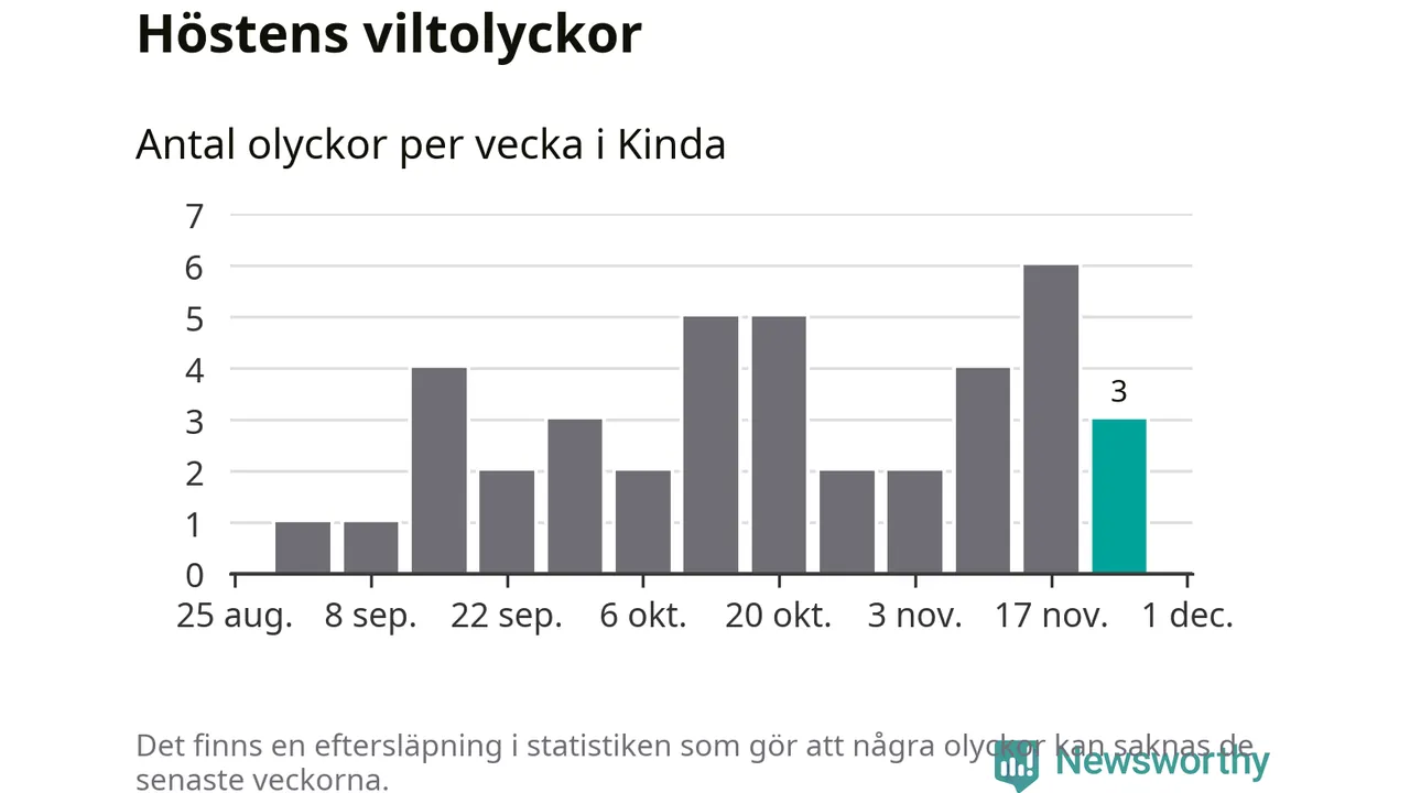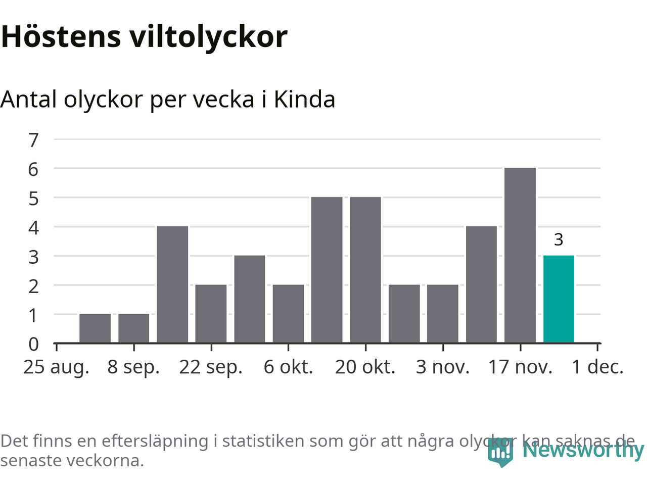 Hittills har tre viltolyckor rapporterats in i Kinda kommun från vecka 48. Se listan här.