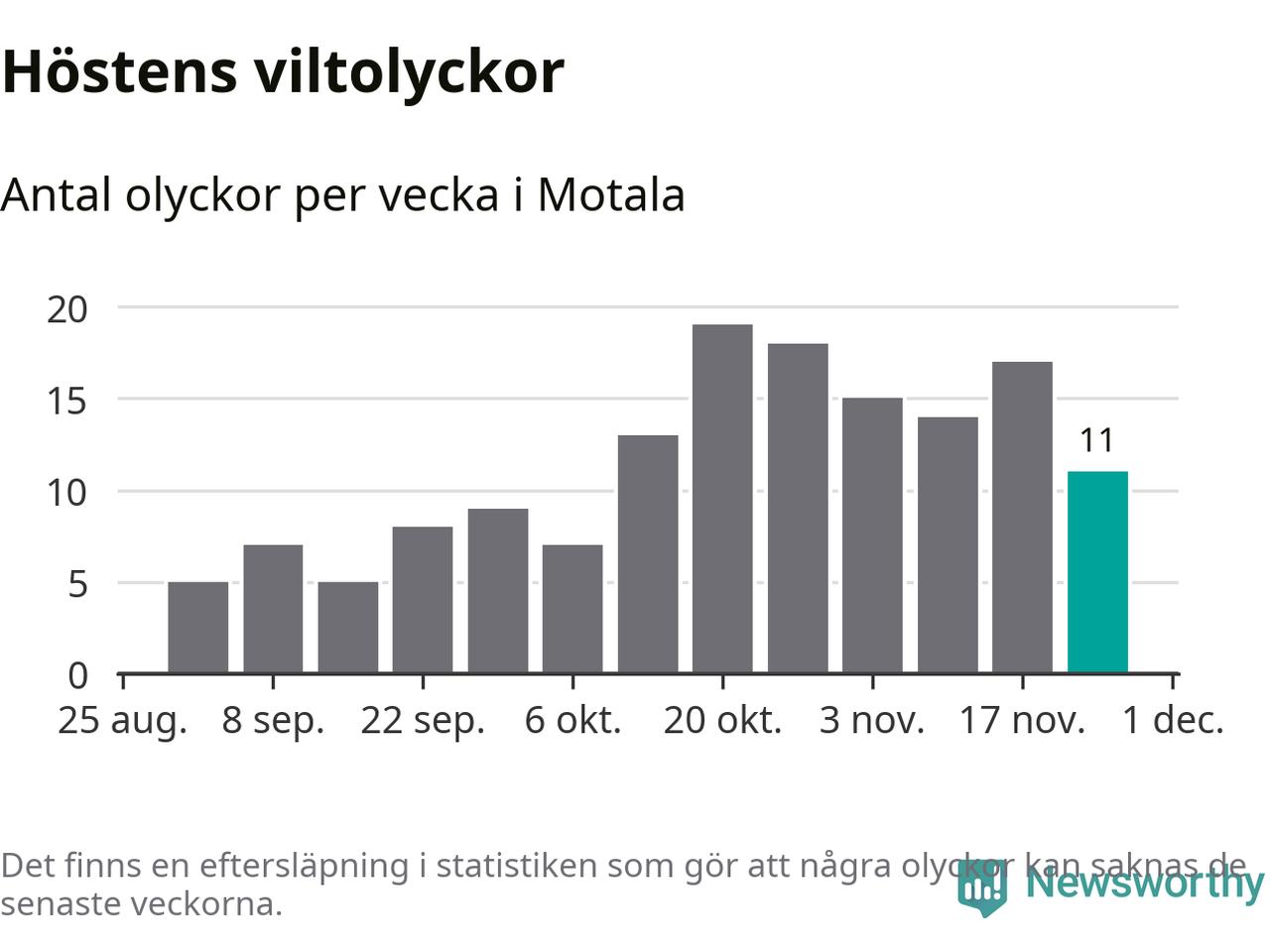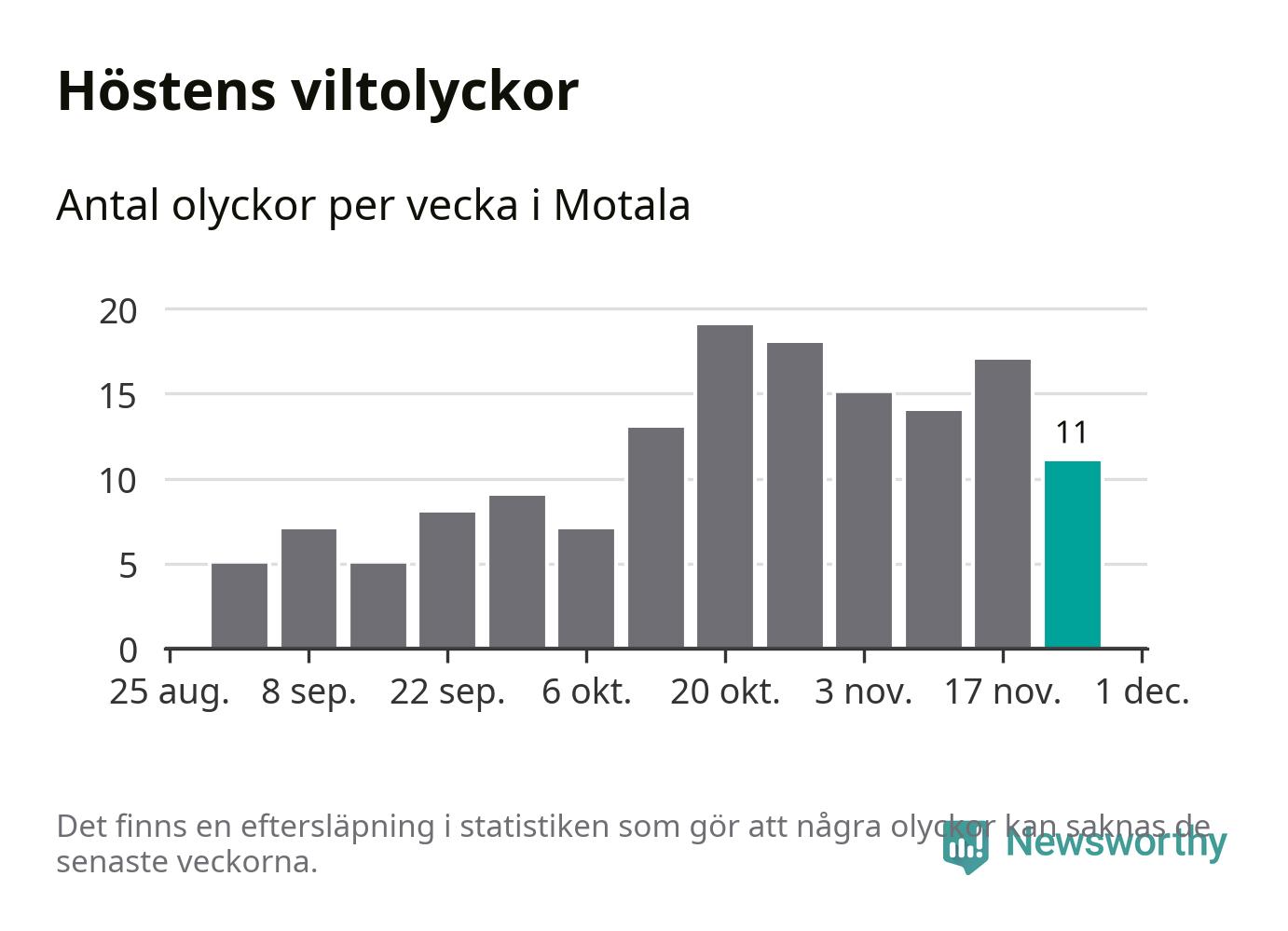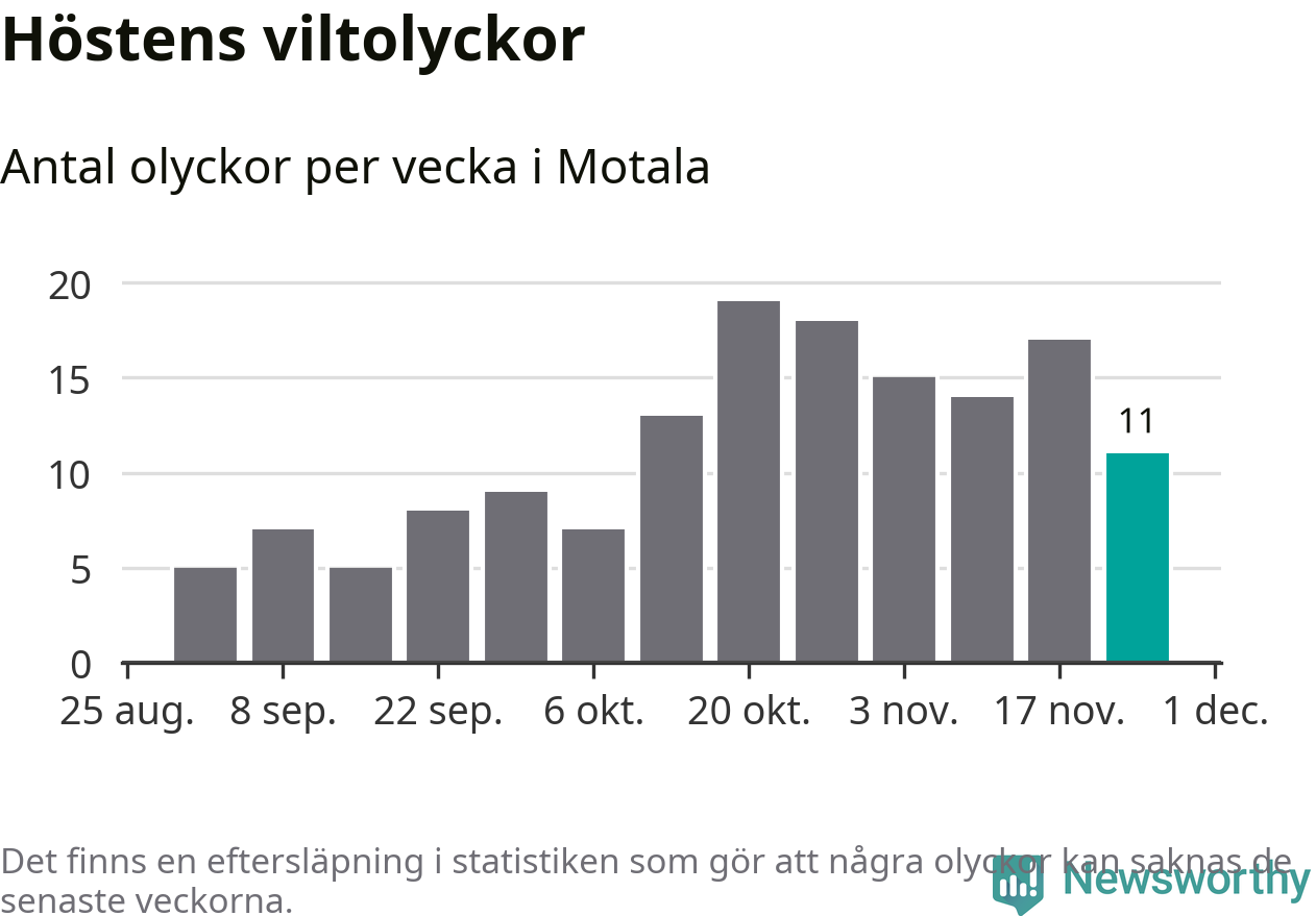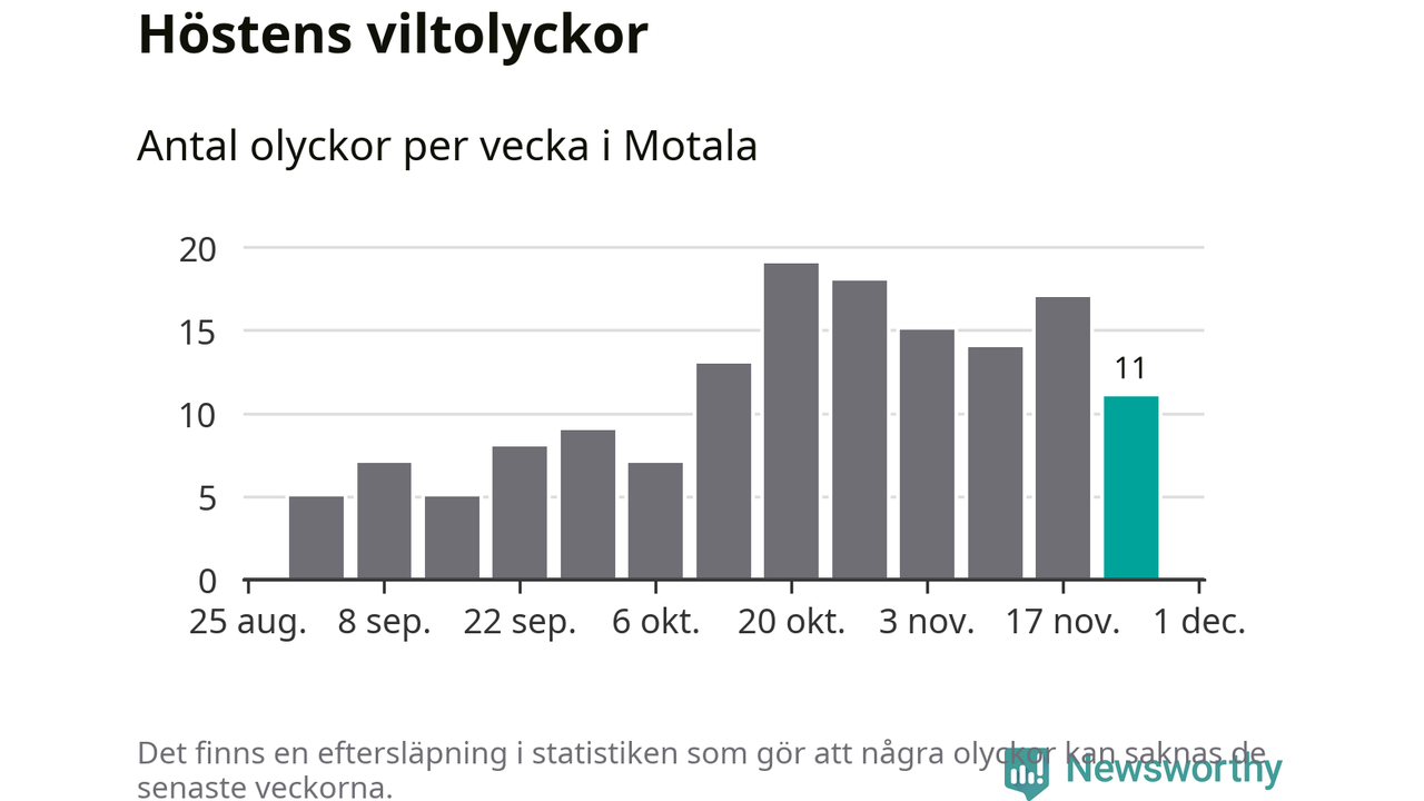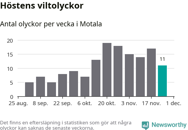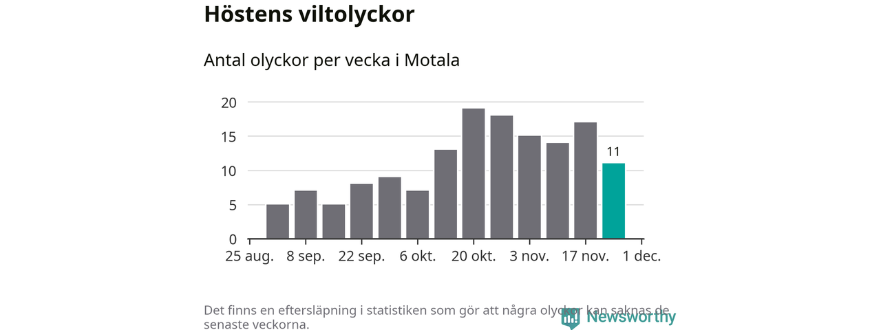 Hittills har elva viltolyckor rapporterats in i Motala kommun från vecka 48. Se listan här.
