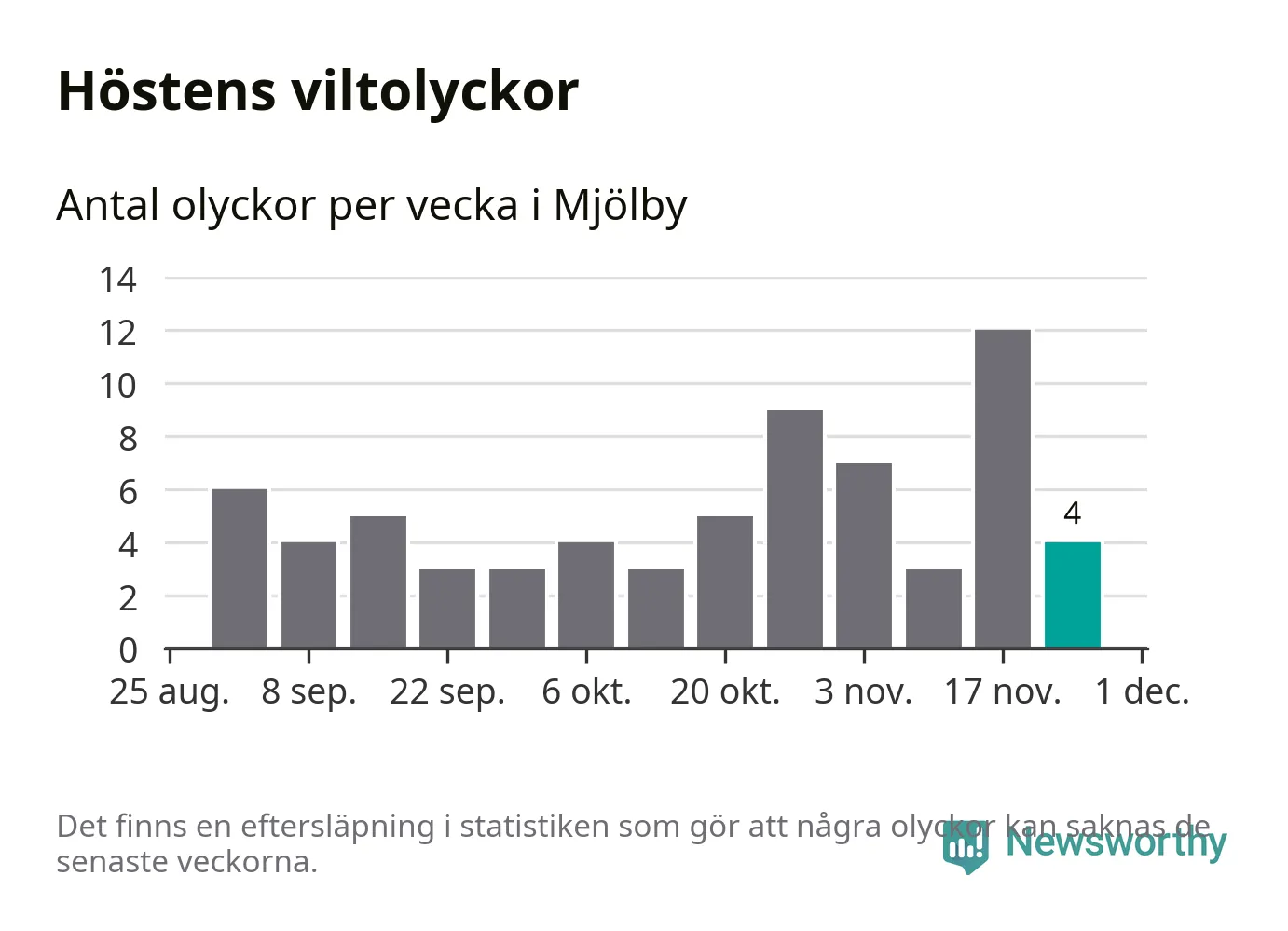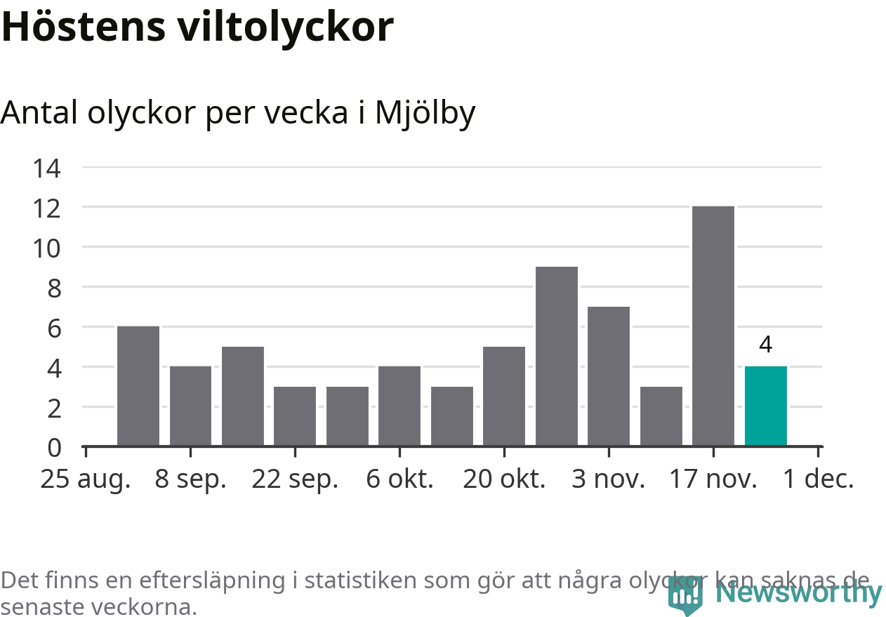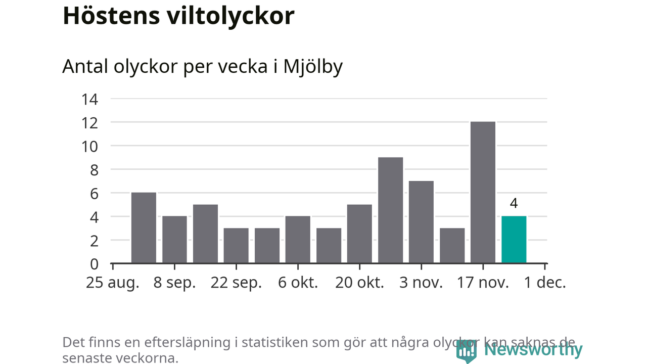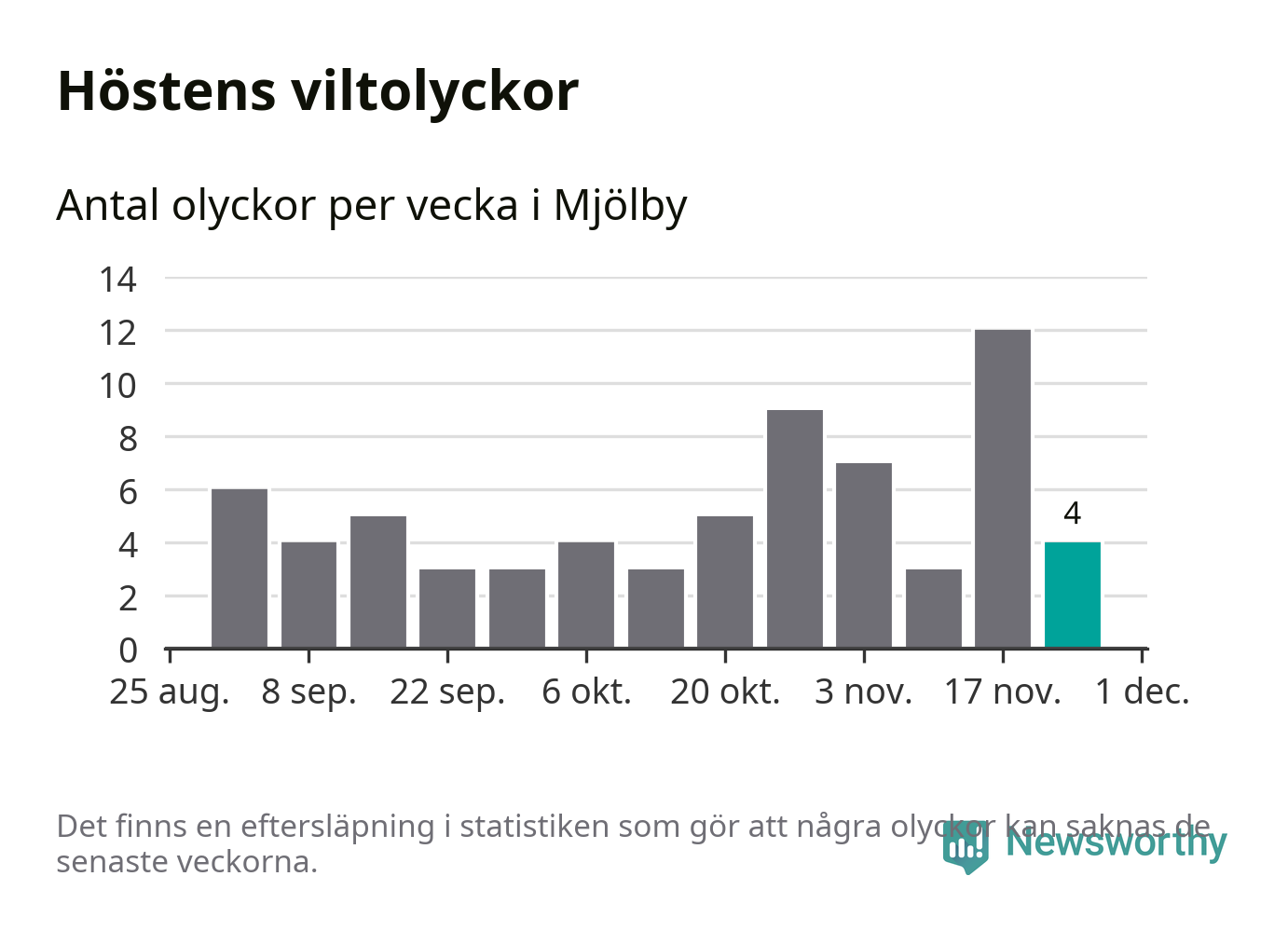 Hittills har fyra viltolyckor rapporterats in i Mjölby kommun från vecka 48. Se listan här.