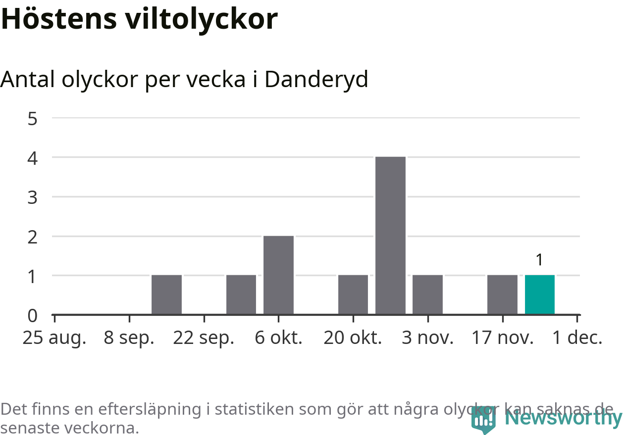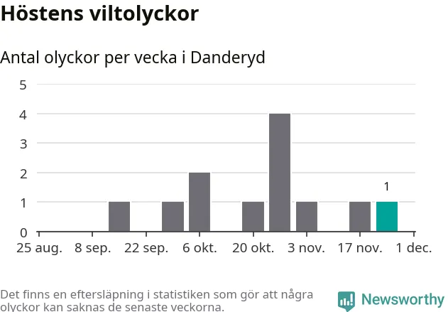 Från förra veckan (vecka 48) har hittills en viltolycka rapporterats in i Danderyds kommun.