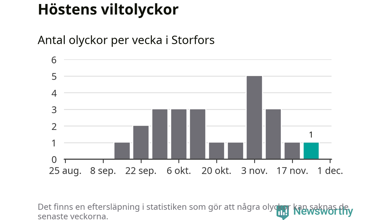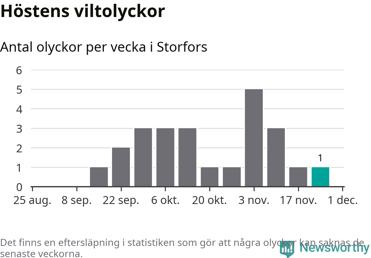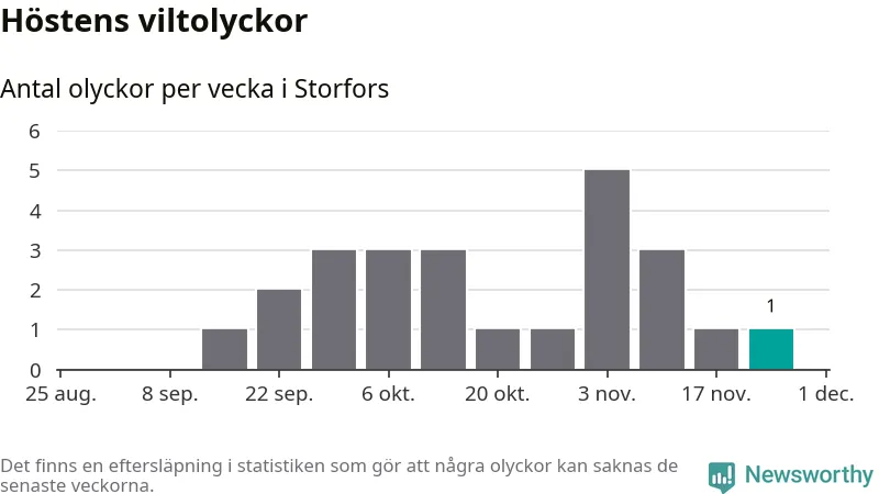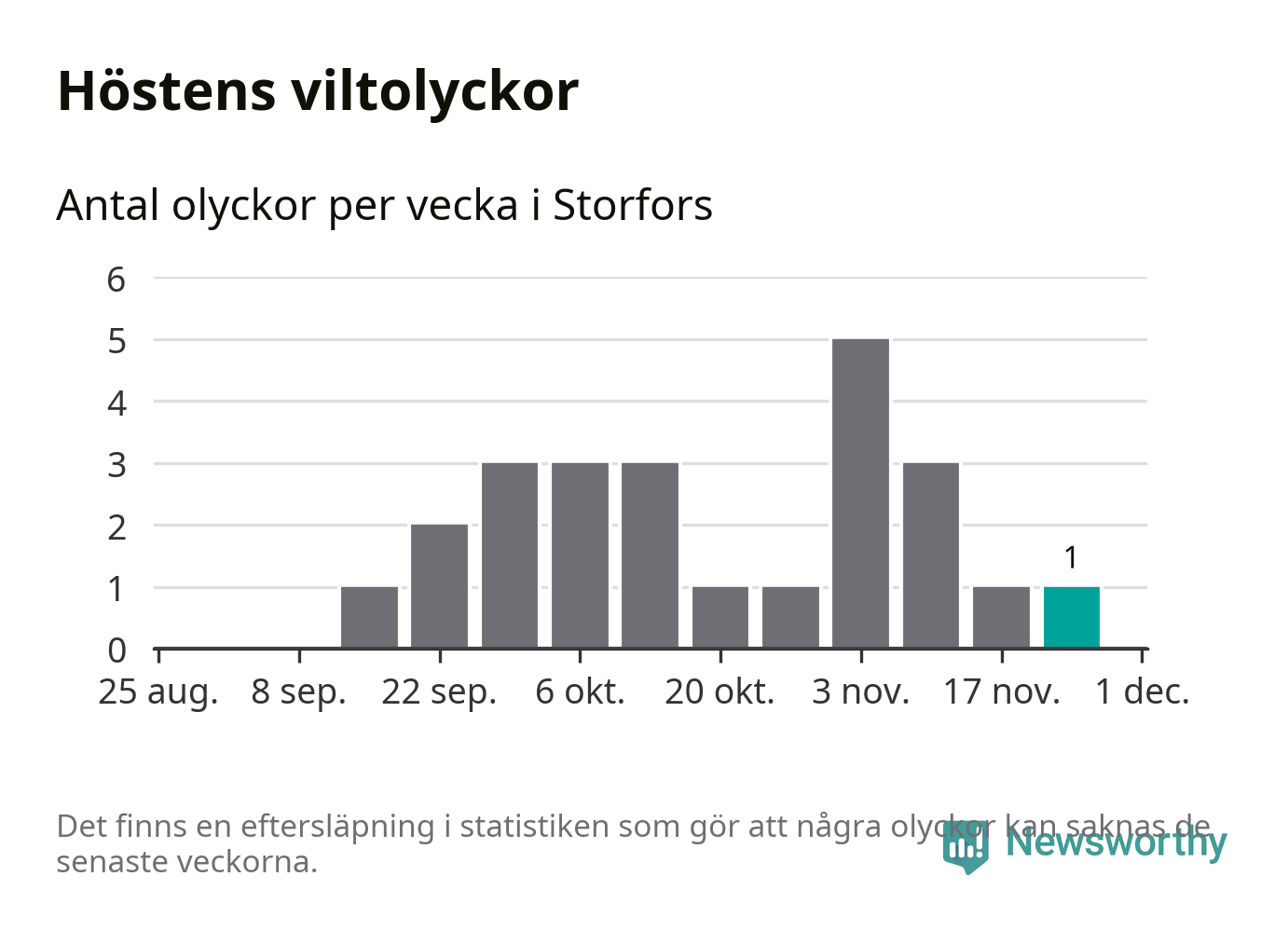 Från förra veckan (vecka 48) har hittills en viltolycka rapporterats in i Storfors kommun.