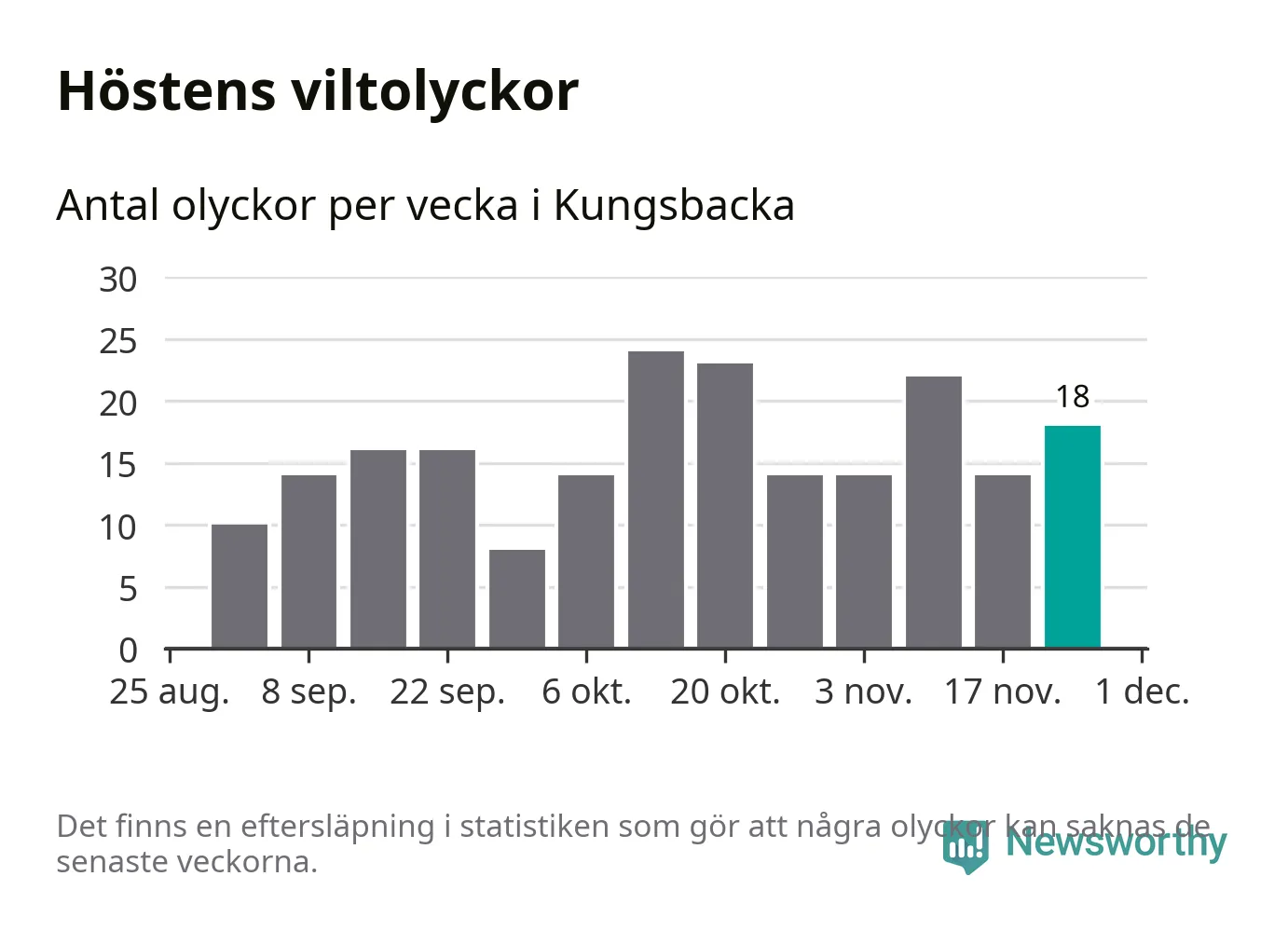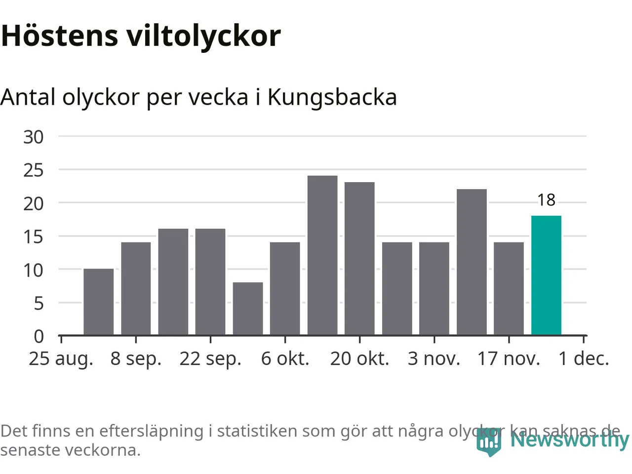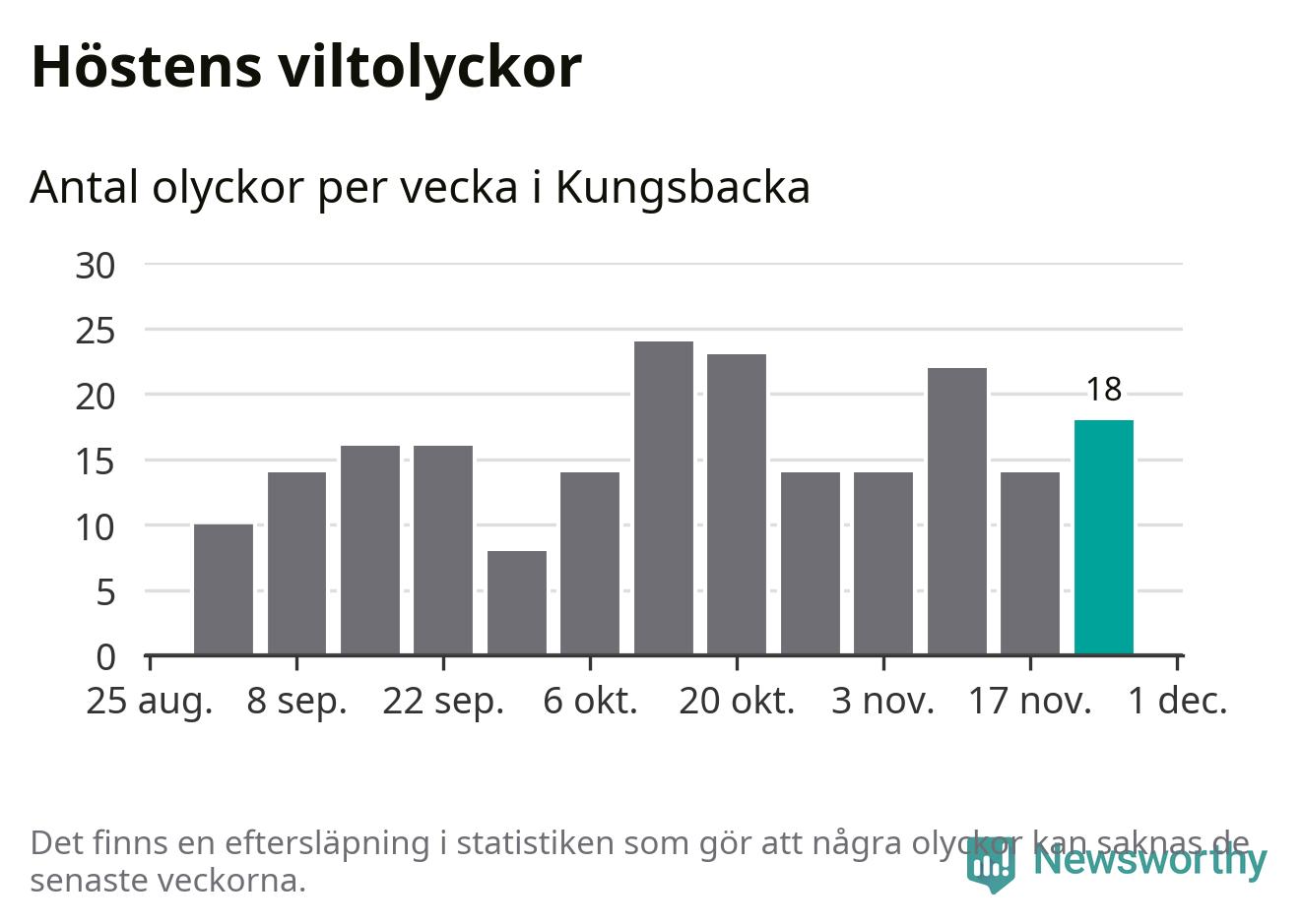 Hittills har 18 viltolyckor rapporterats in i Kungsbacka kommun från vecka 48. Se listan här.