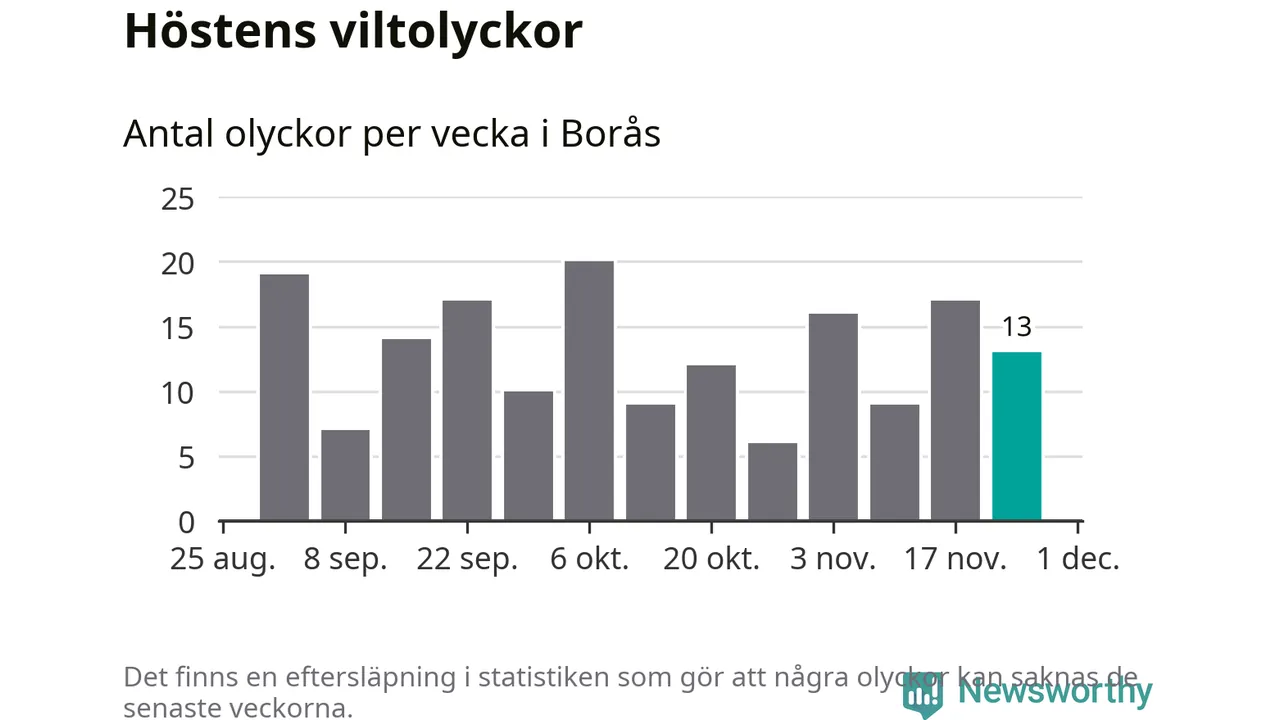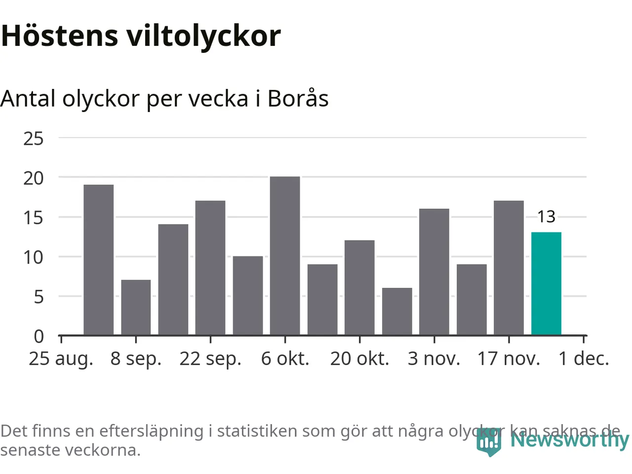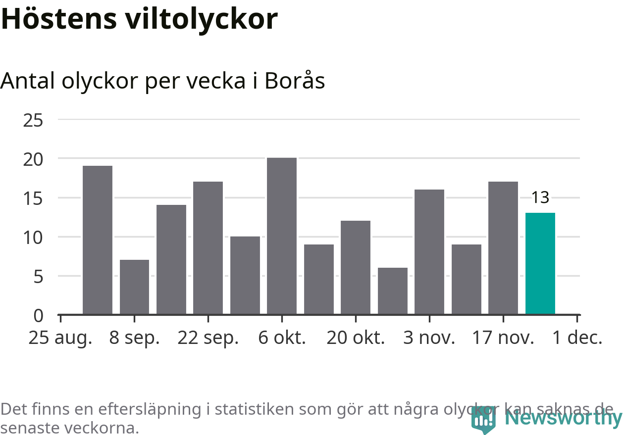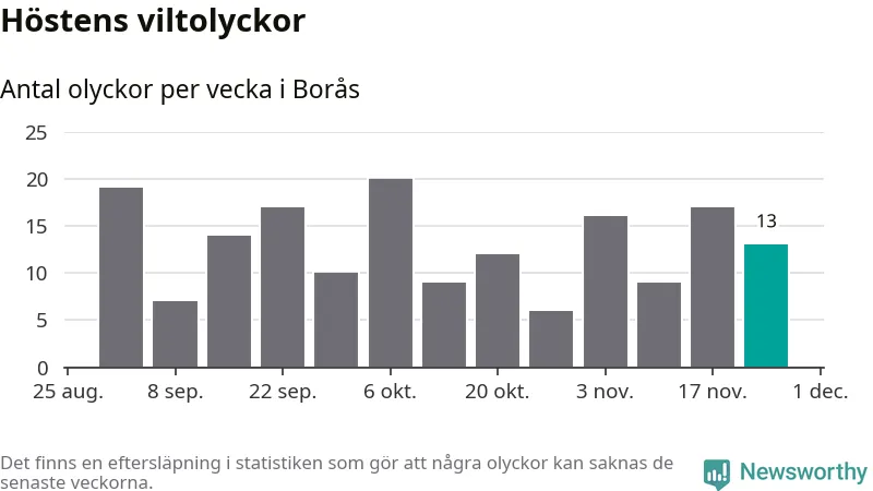 Hittills har 13 viltolyckor rapporterats in i Borås kommun från vecka 48. Se listan här.