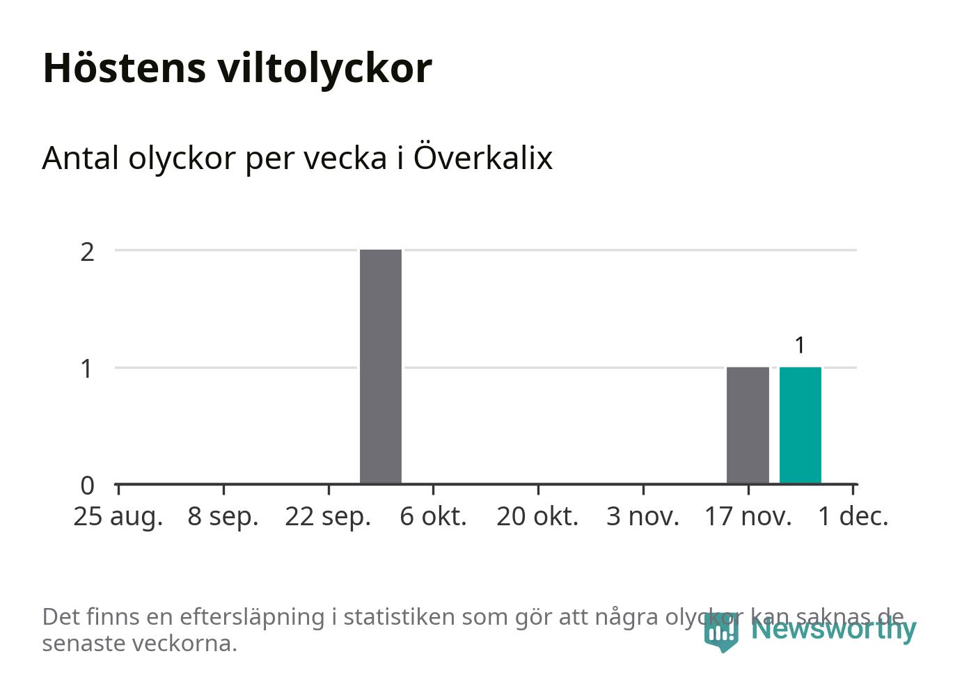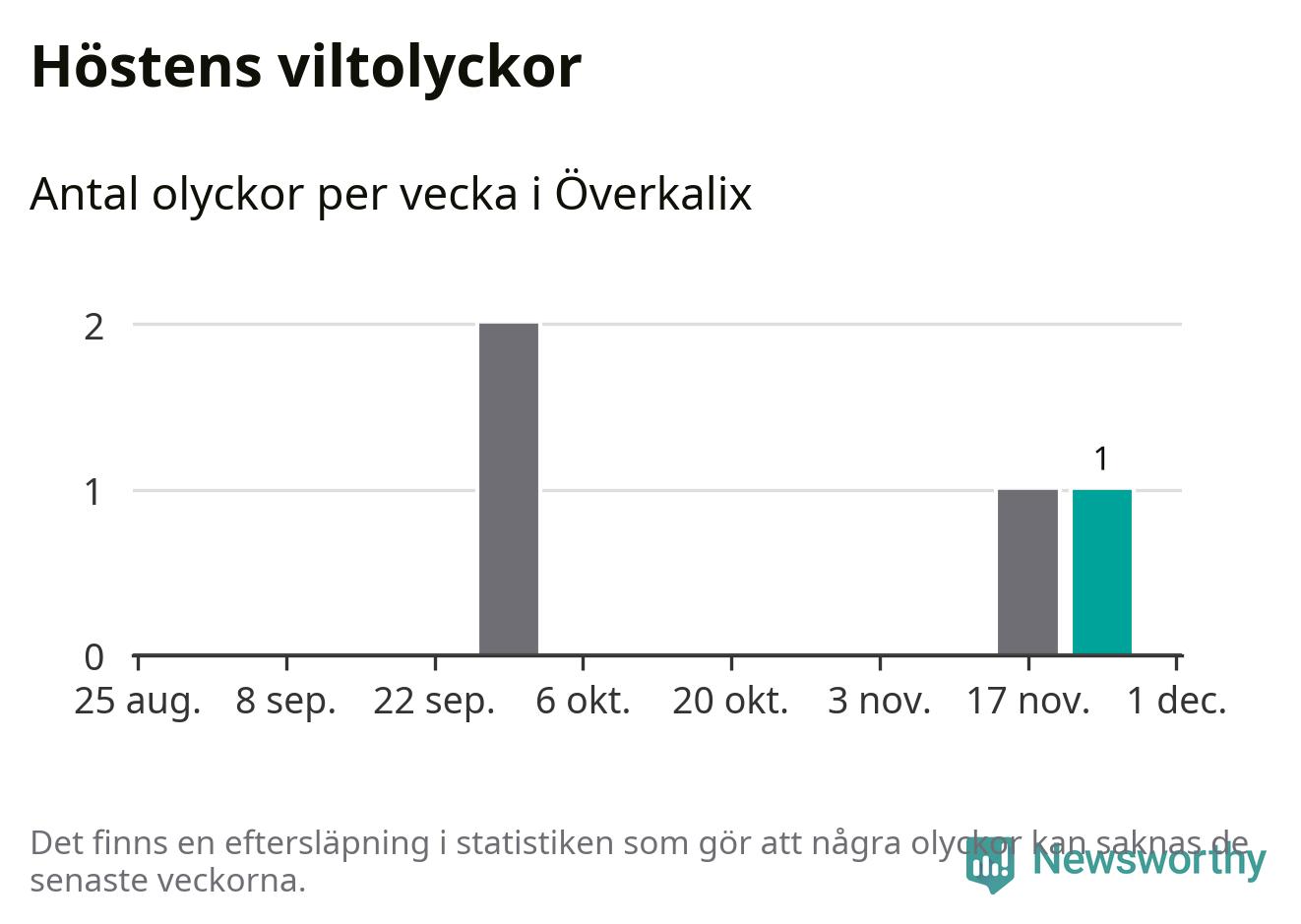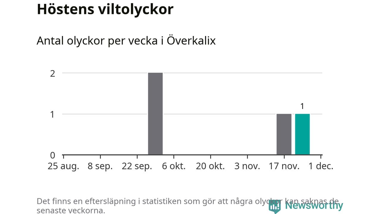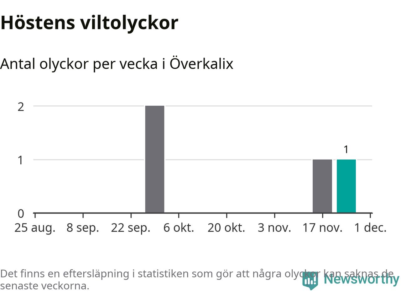 Från förra veckan (vecka 48) har hittills en viltolycka rapporterats in i Överkalix kommun.