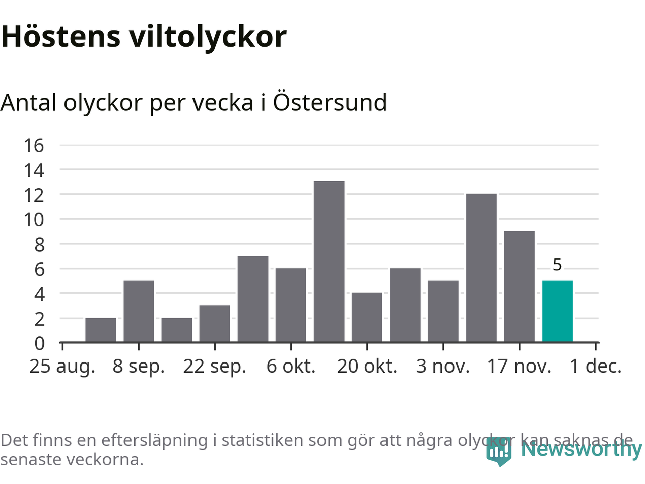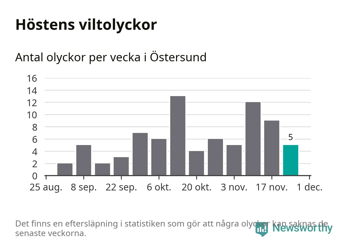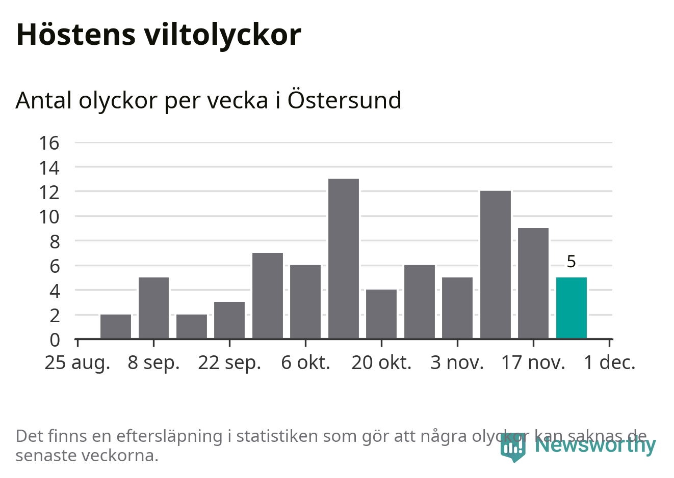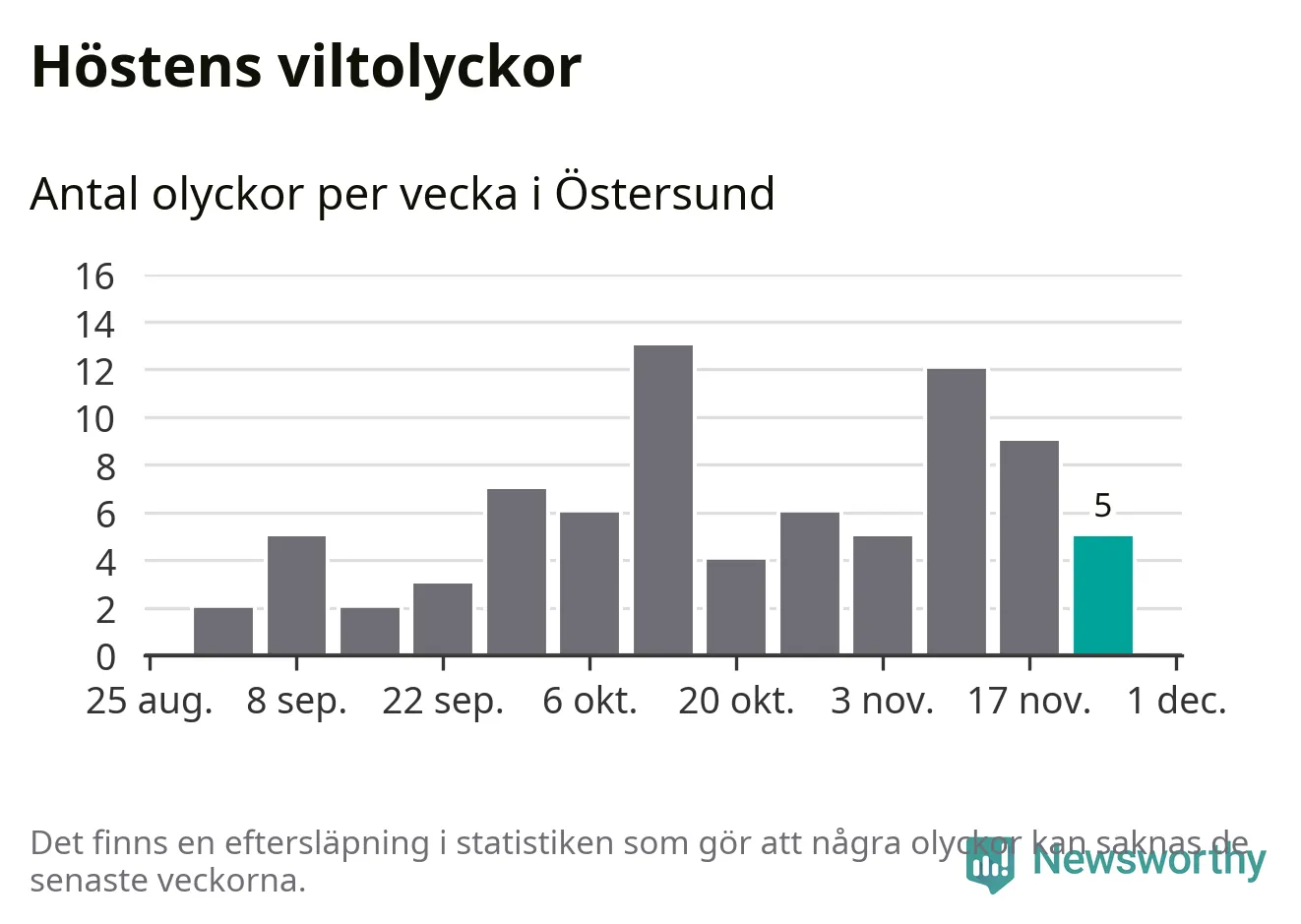 Hittills har fem viltolyckor rapporterats in i Östersunds kommun från vecka 48. Se listan här.