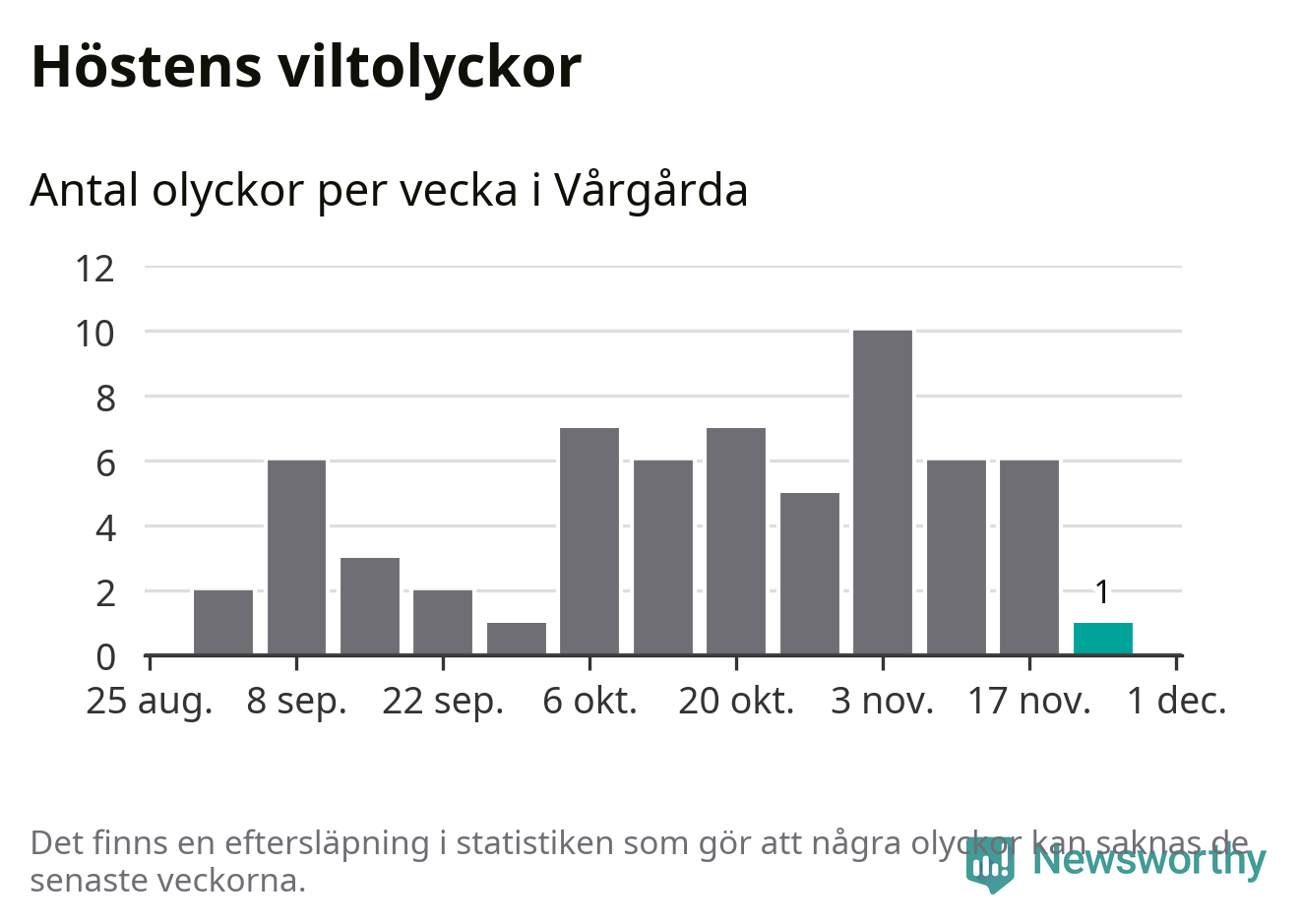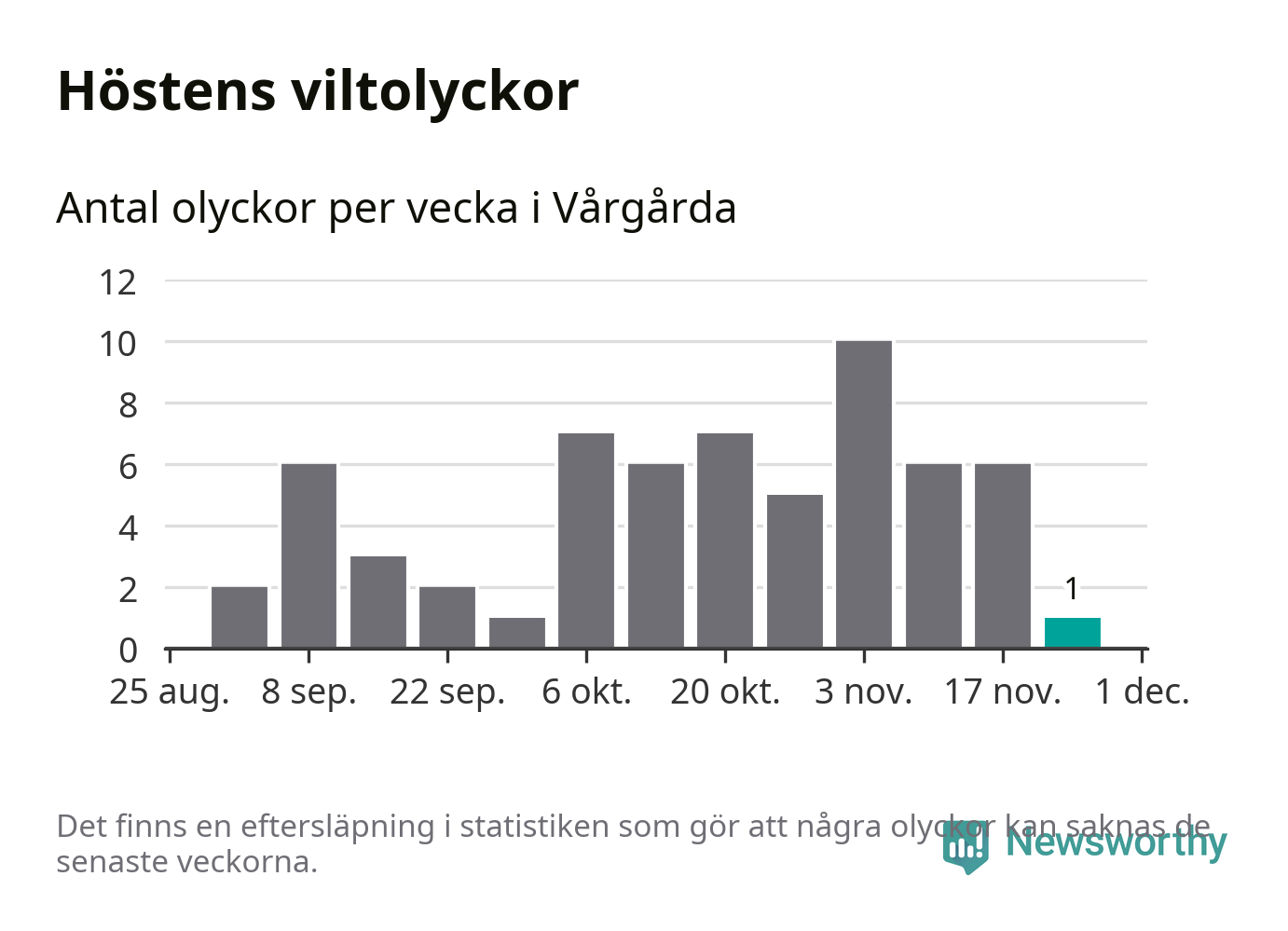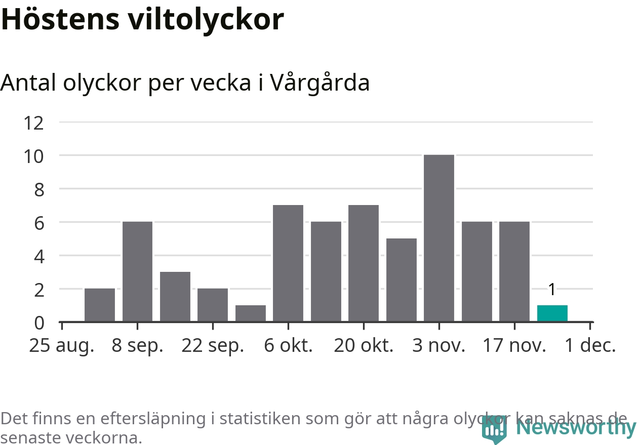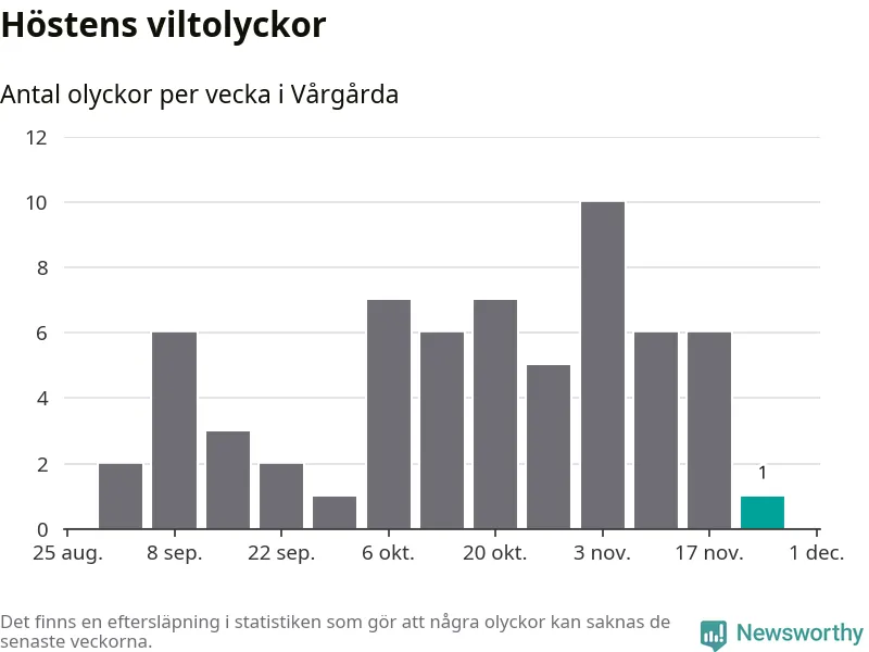 Från förra veckan (vecka 48) har hittills en viltolycka rapporterats in i Vårgårda kommun.
