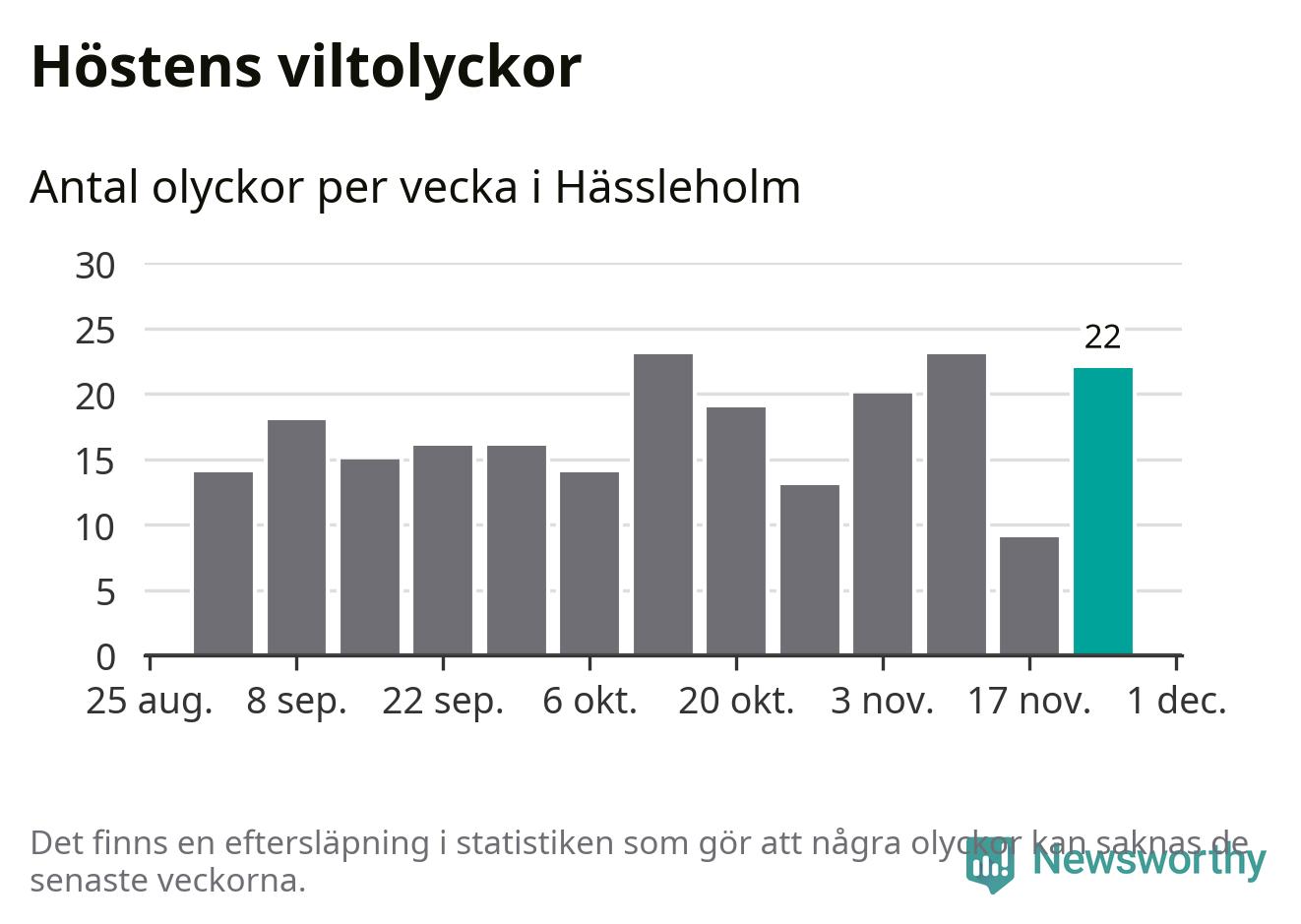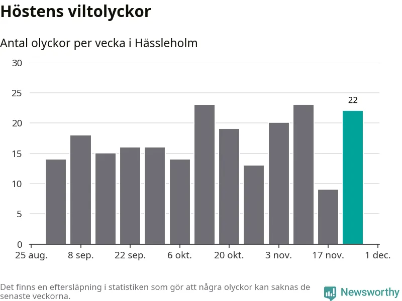 Hittills har 22 viltolyckor rapporterats in i Hässleholms kommun från vecka 48. Det är en av de högsta siffrorna för en enskild vecka på över tio år.