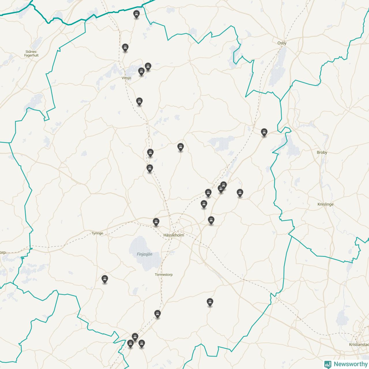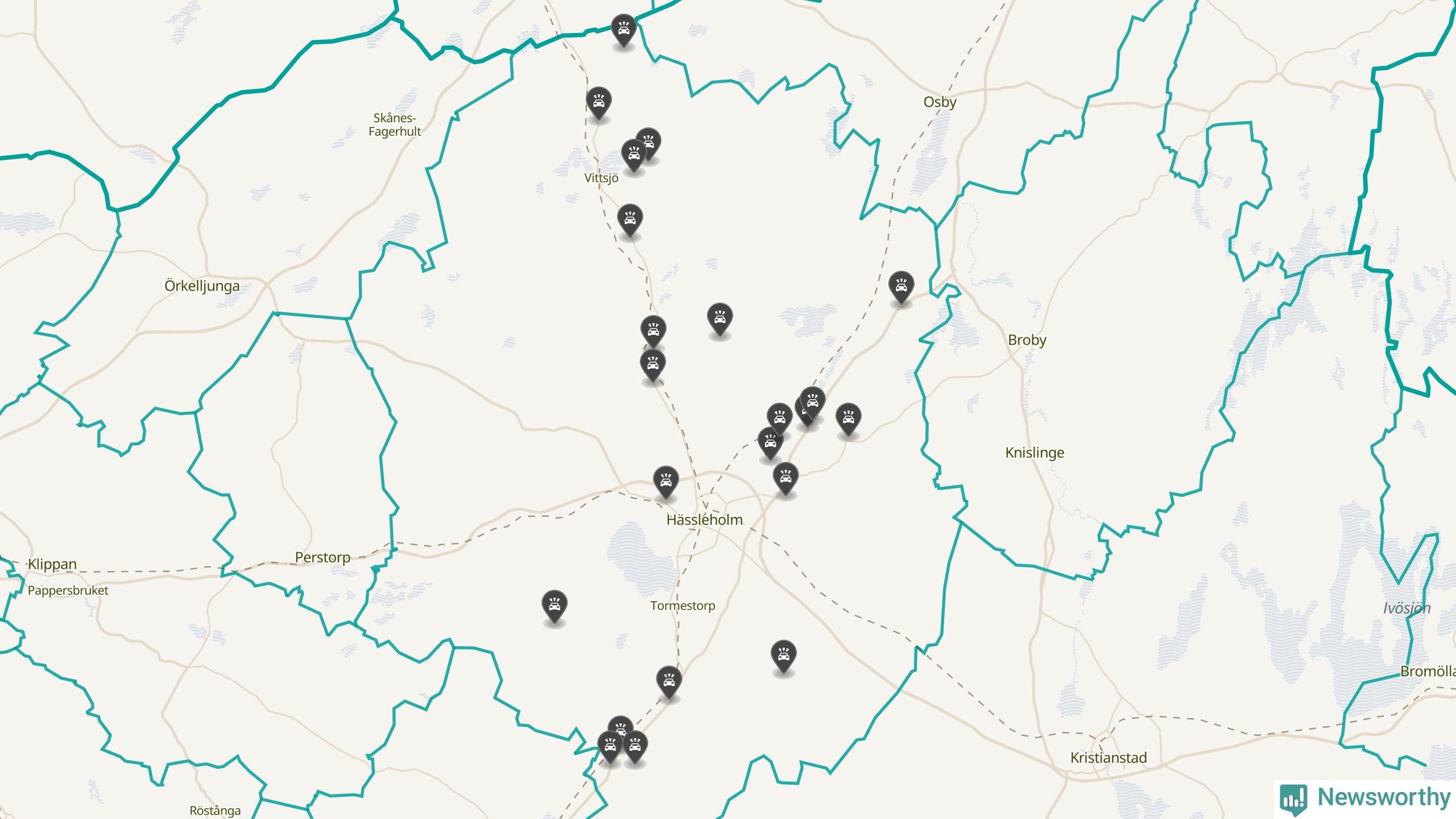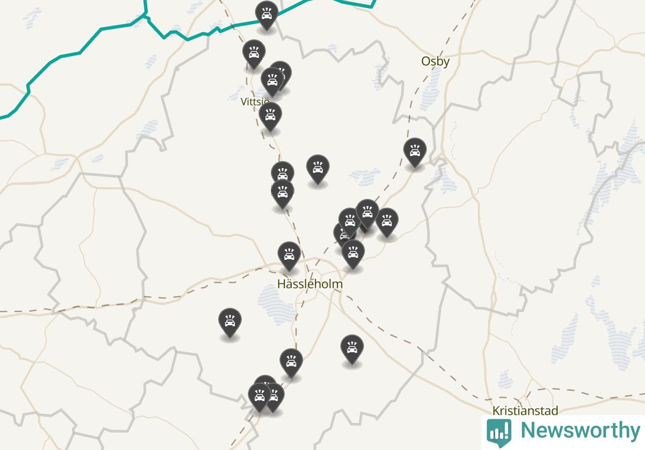Karta över viltolyckor i Hässleholms kommun