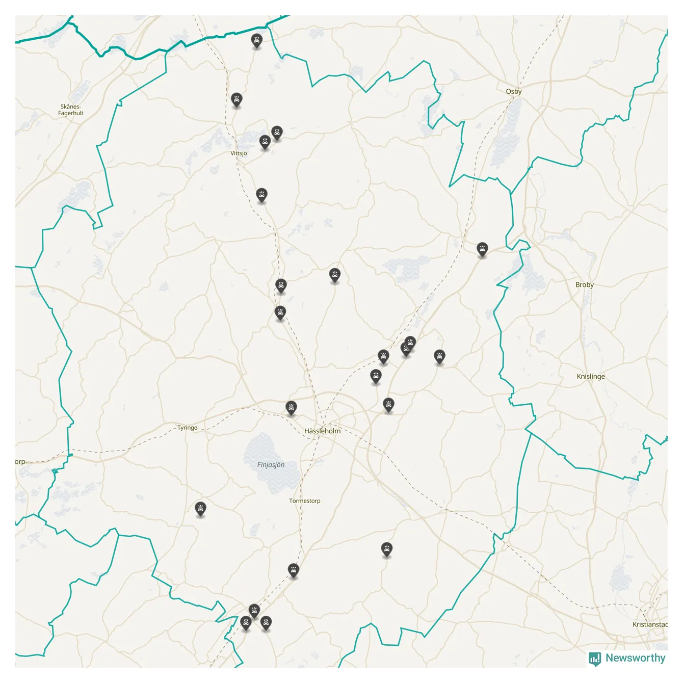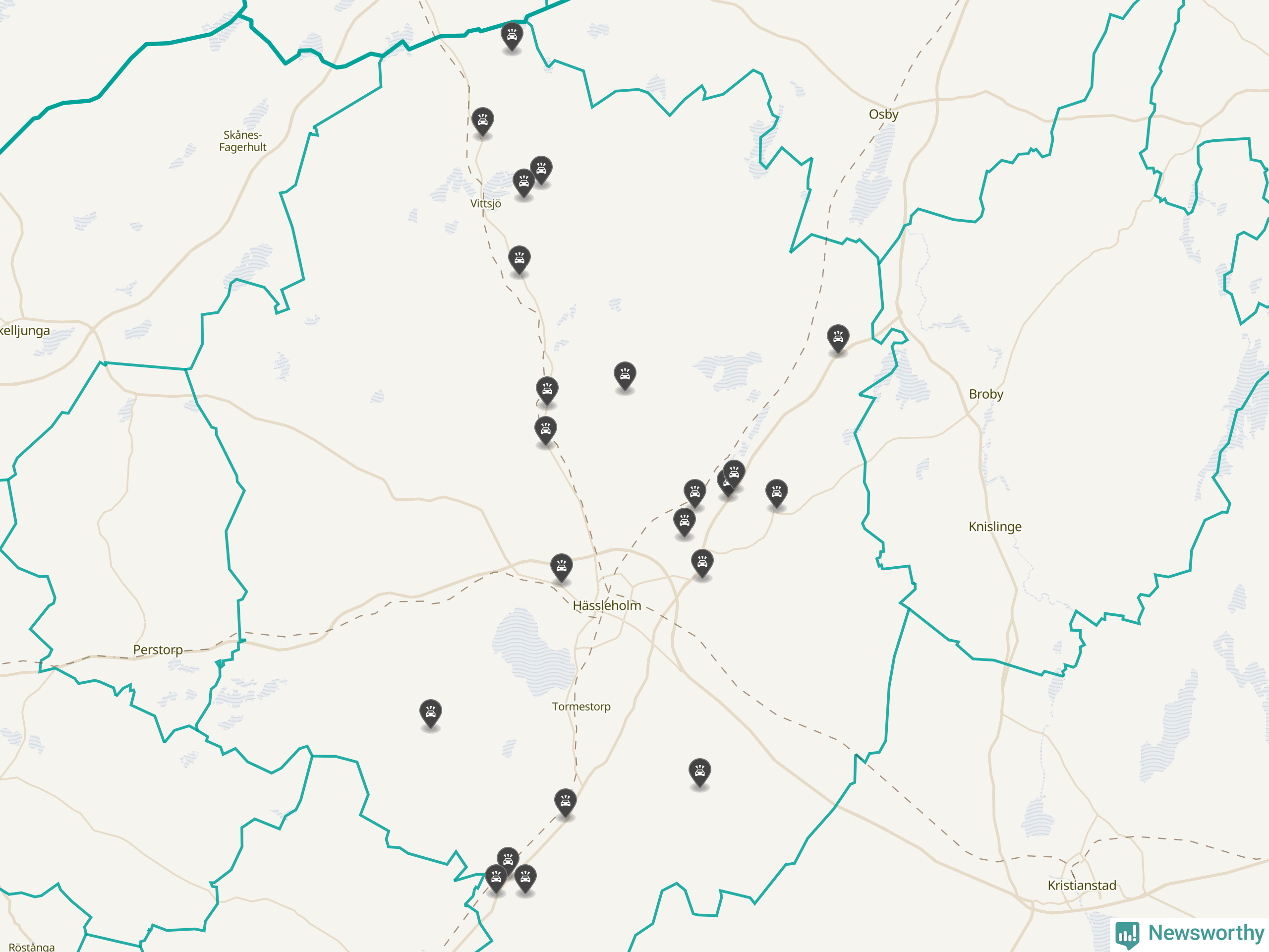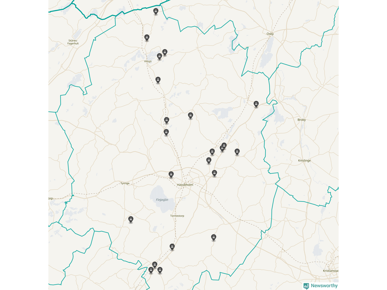 Karta över viltolyckor i Hässleholms kommun