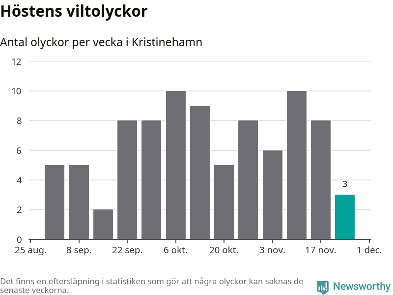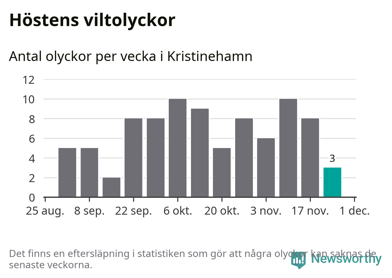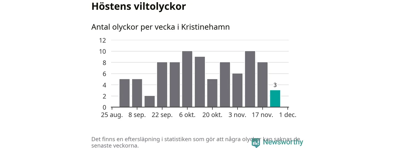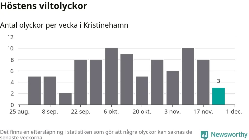 Hittills har tre viltolyckor rapporterats in i Kristinehamns kommun från vecka 48. Se listan här.