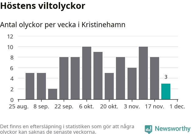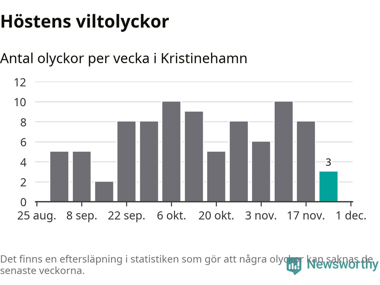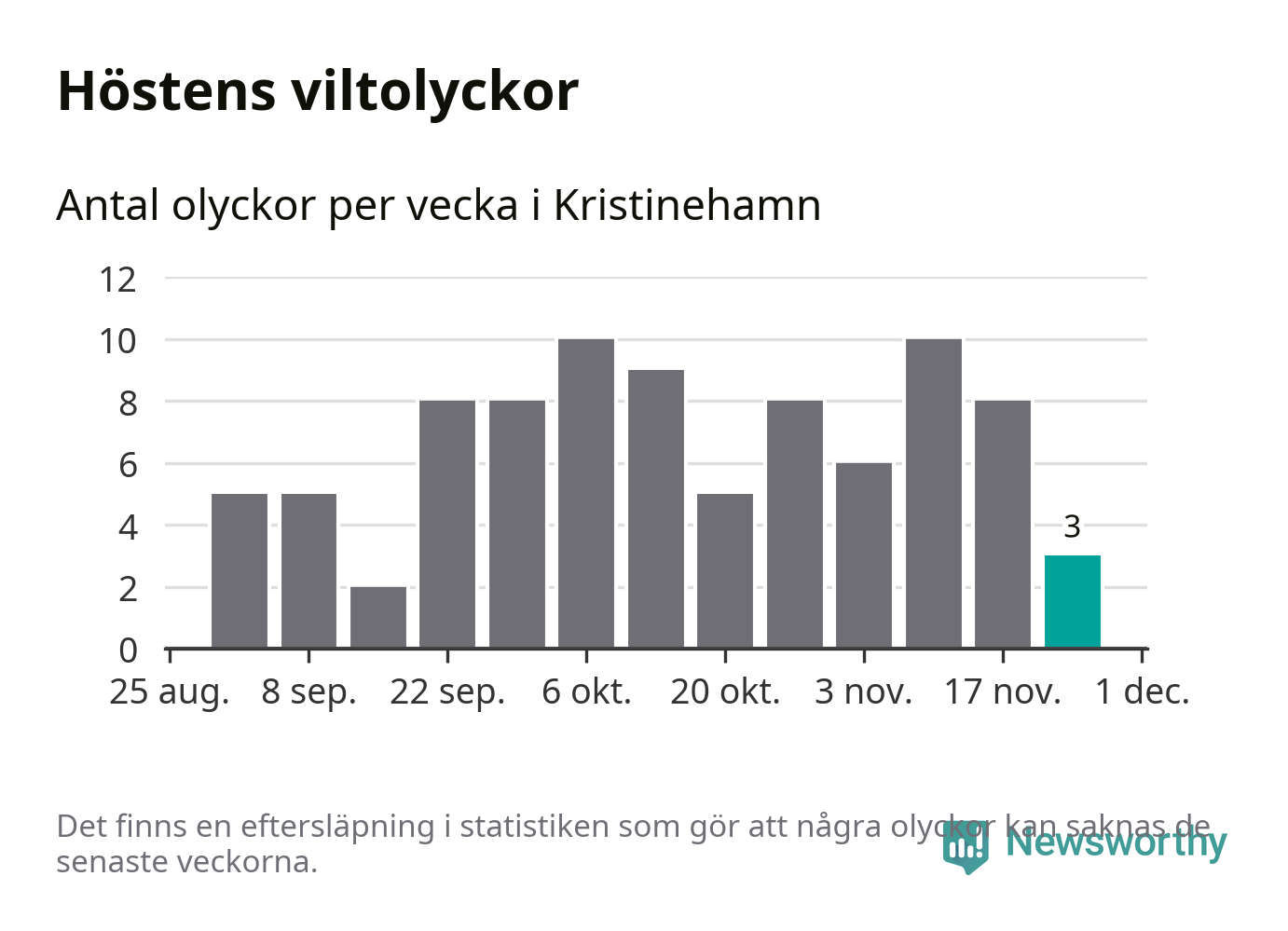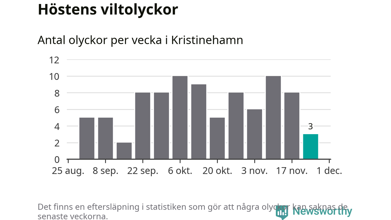 Hittills har tre viltolyckor rapporterats in i Kristinehamns kommun från vecka 48. Se listan här.