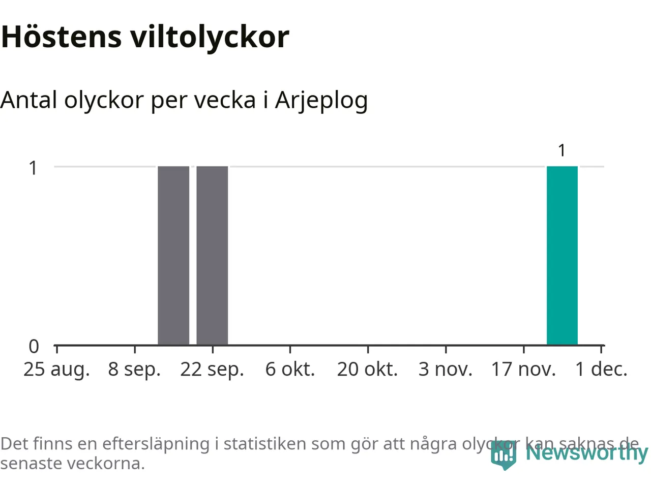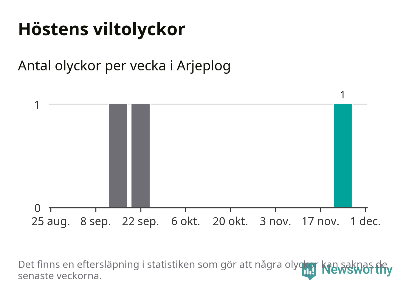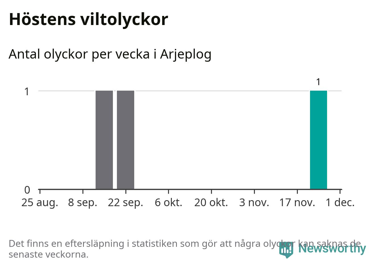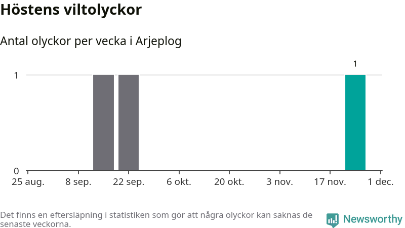 Från förra veckan (vecka 48) har hittills en viltolycka rapporterats in i Arjeplogs kommun.