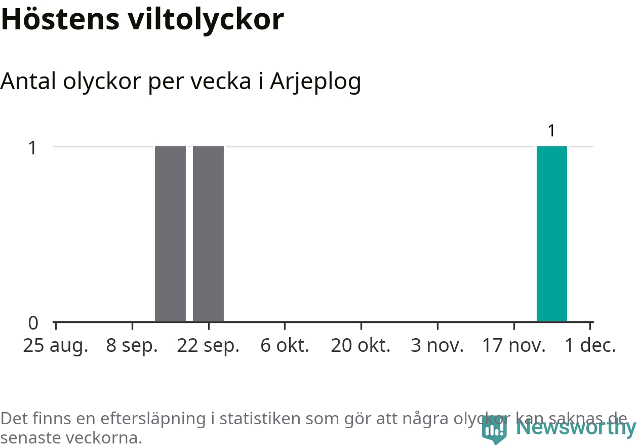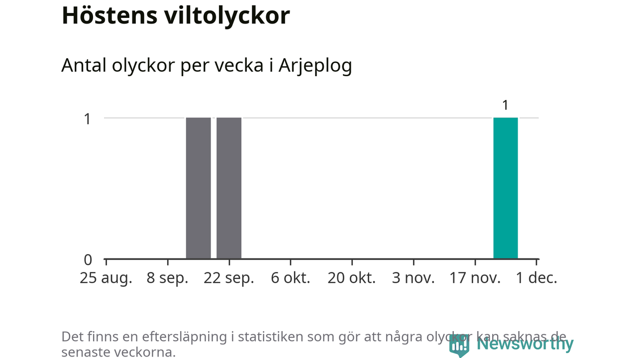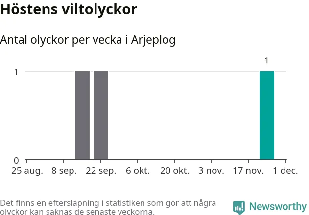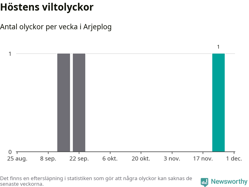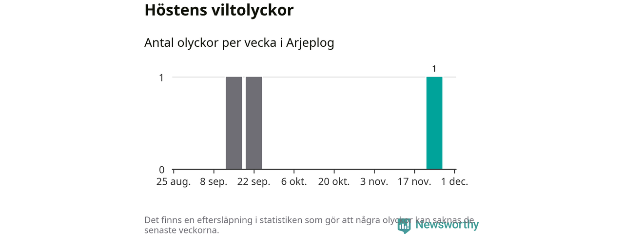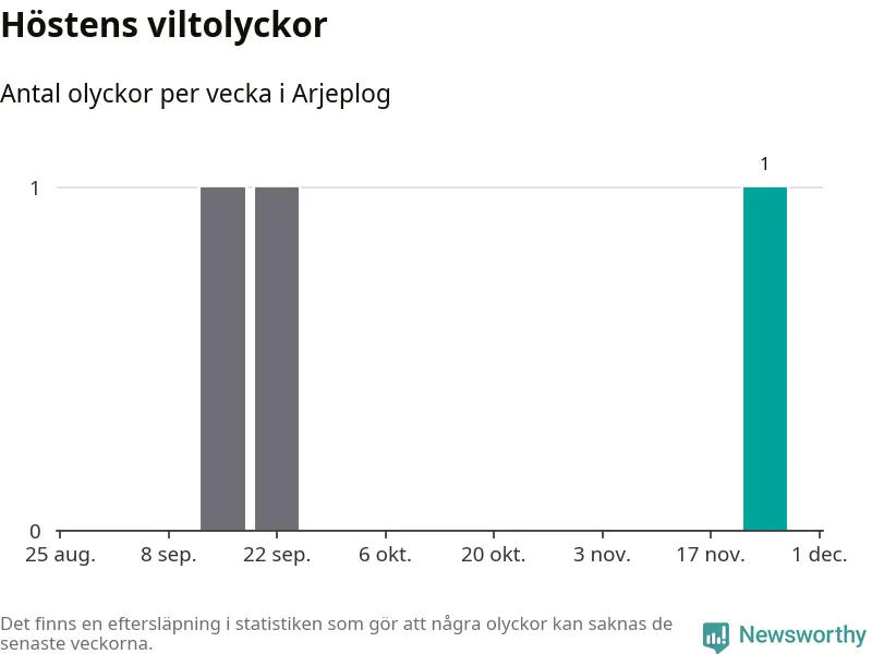 Från förra veckan (vecka 48) har hittills en viltolycka rapporterats in i Arjeplogs kommun.