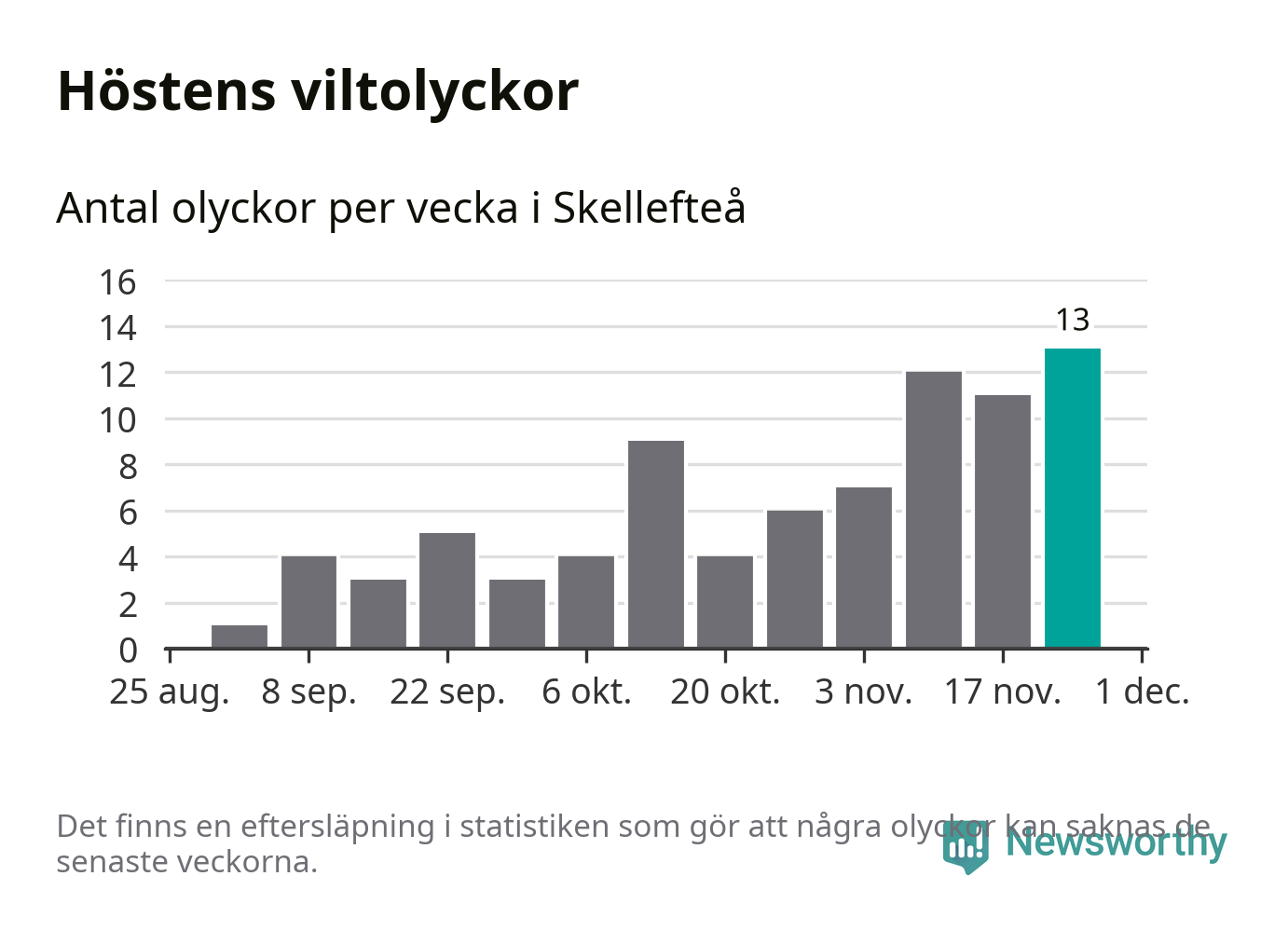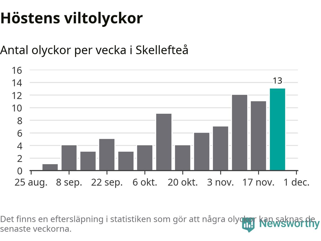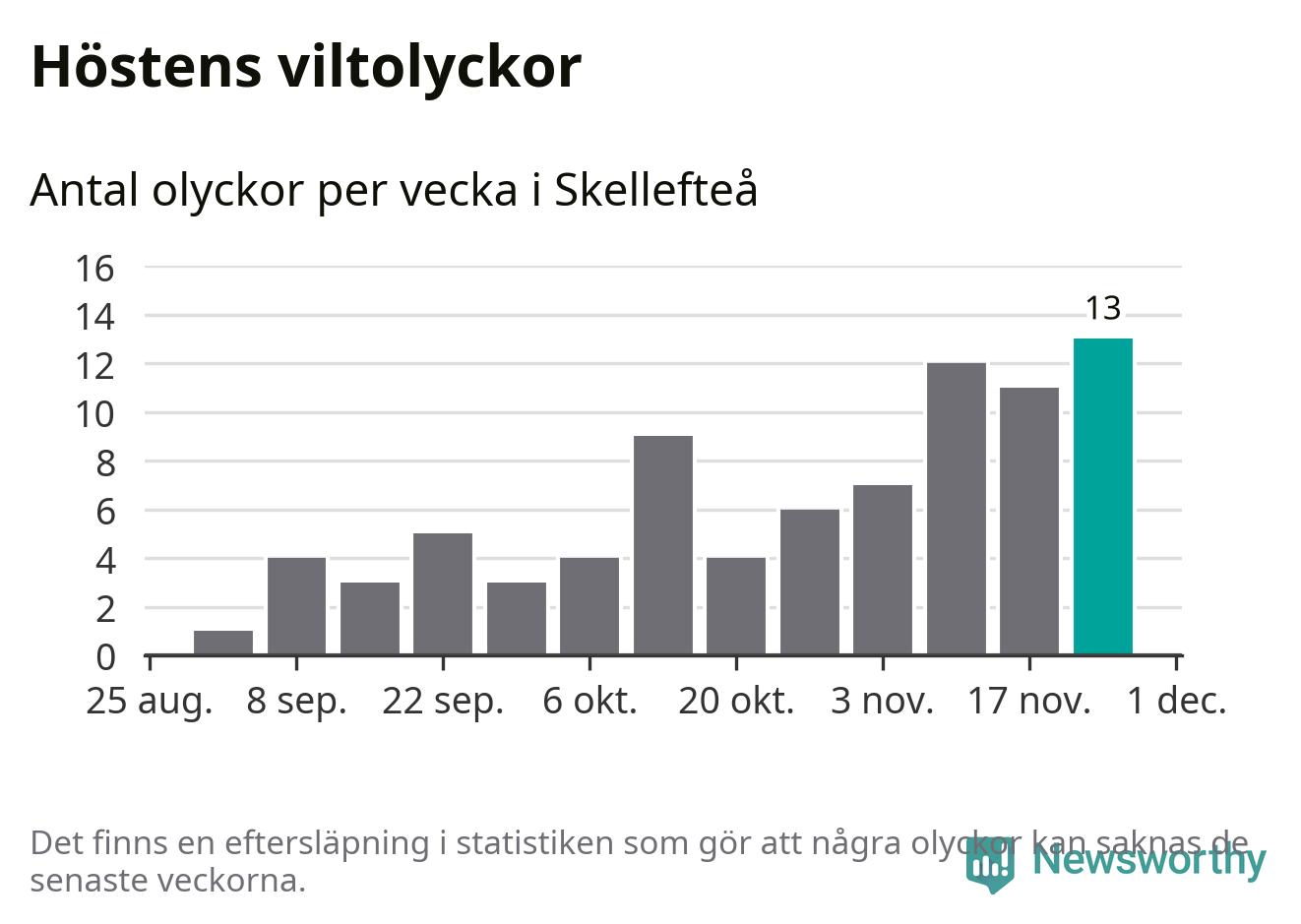 Under vecka 48 rapporterades 13 viltolyckor in i Skellefteå kommun. Det är det största antalet på en vecka den här hösten.