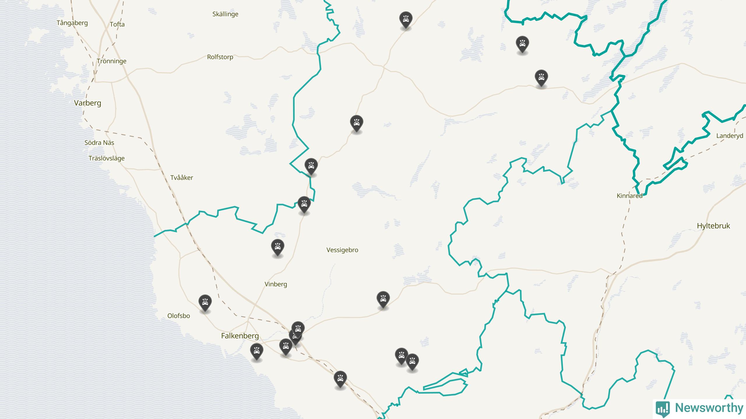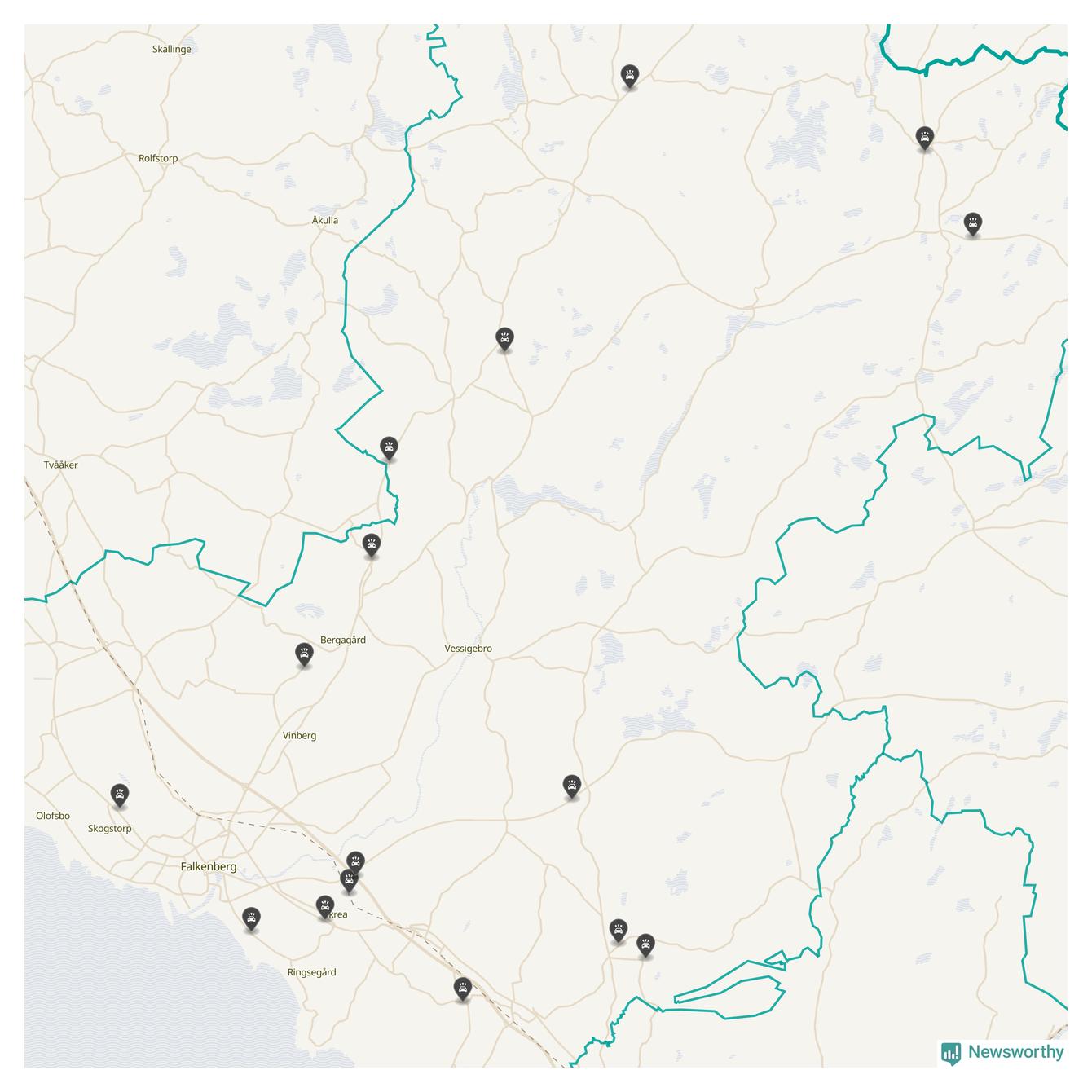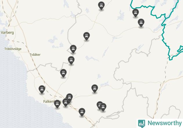 Karta över viltolyckor i Falkenbergs kommun