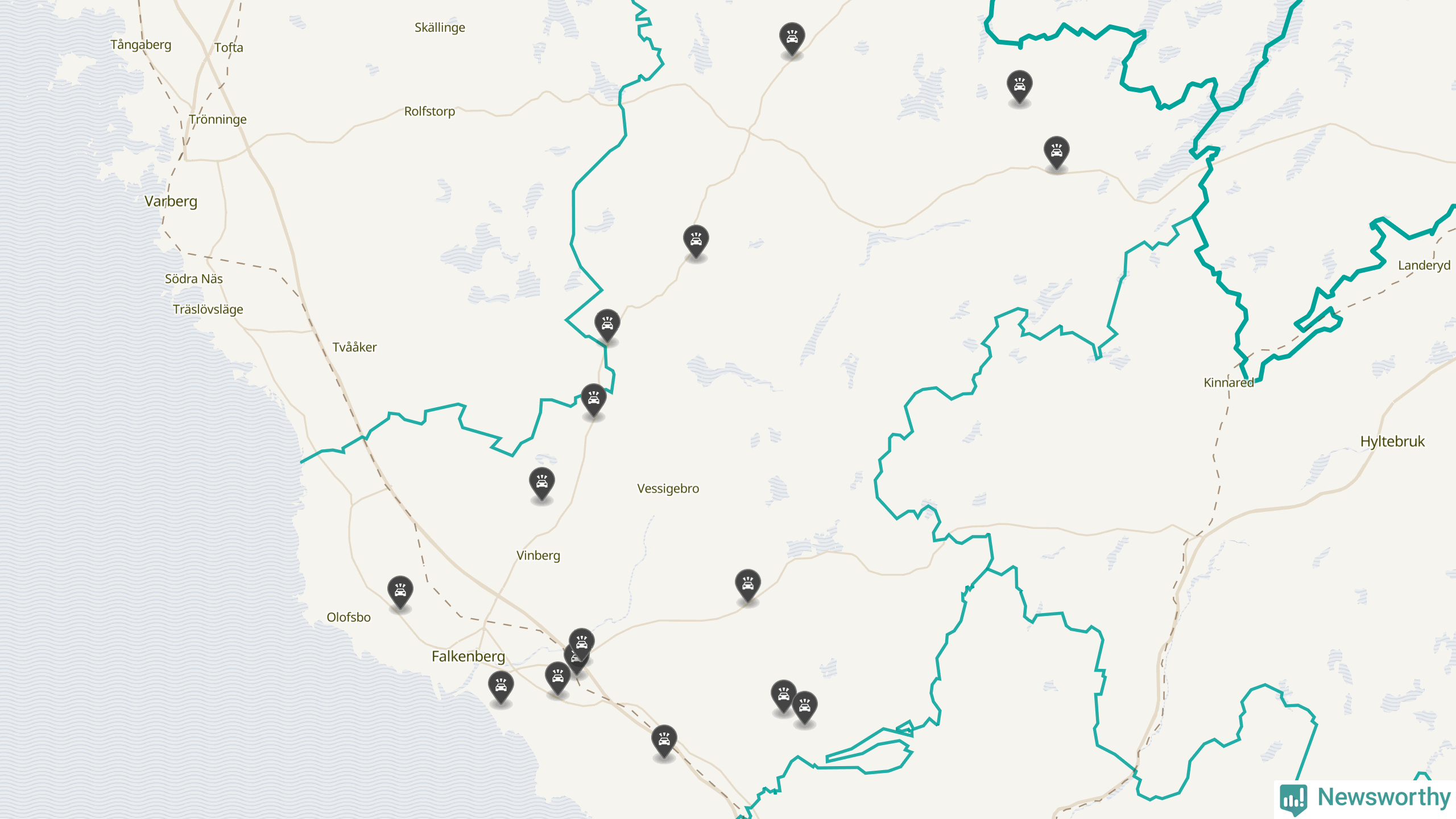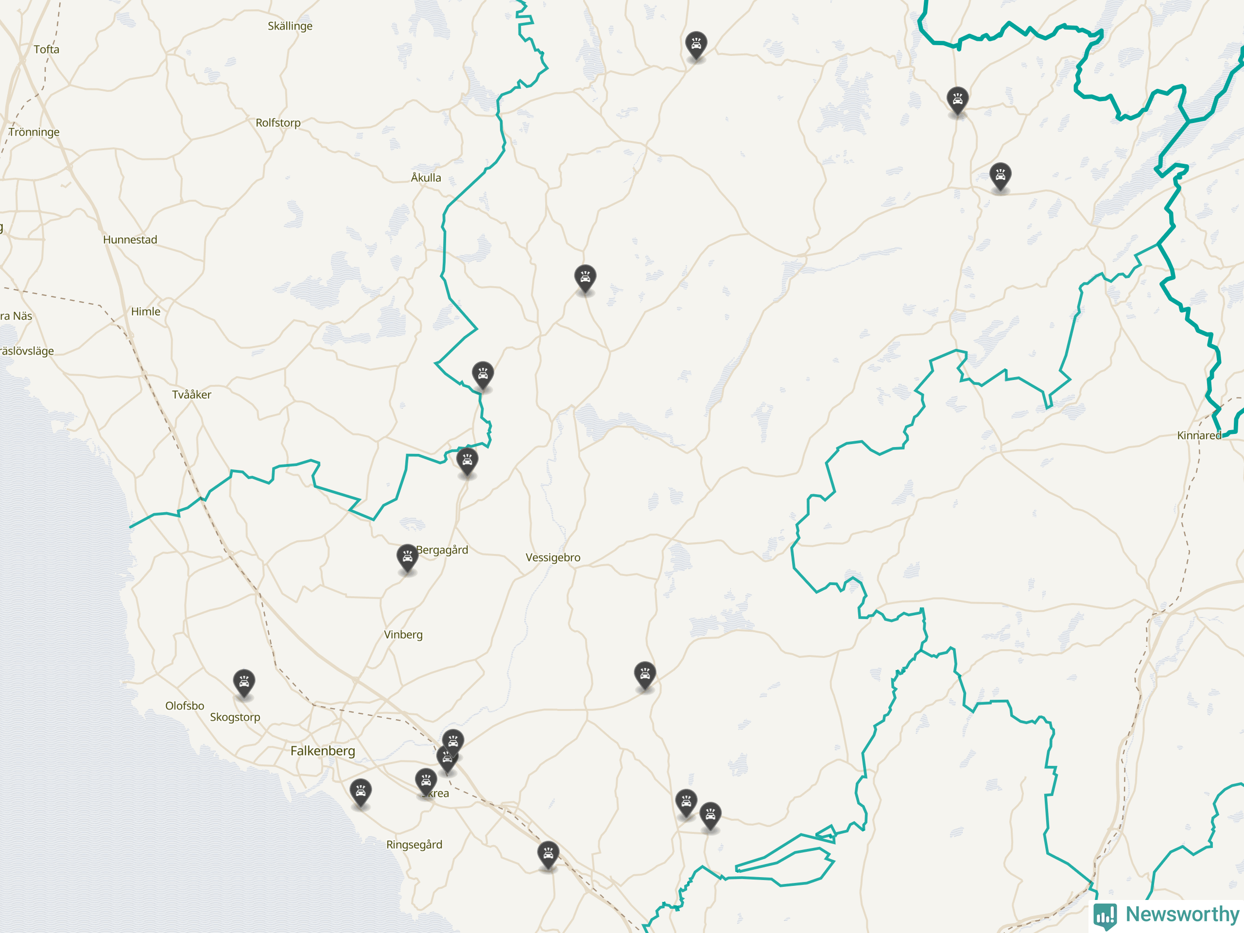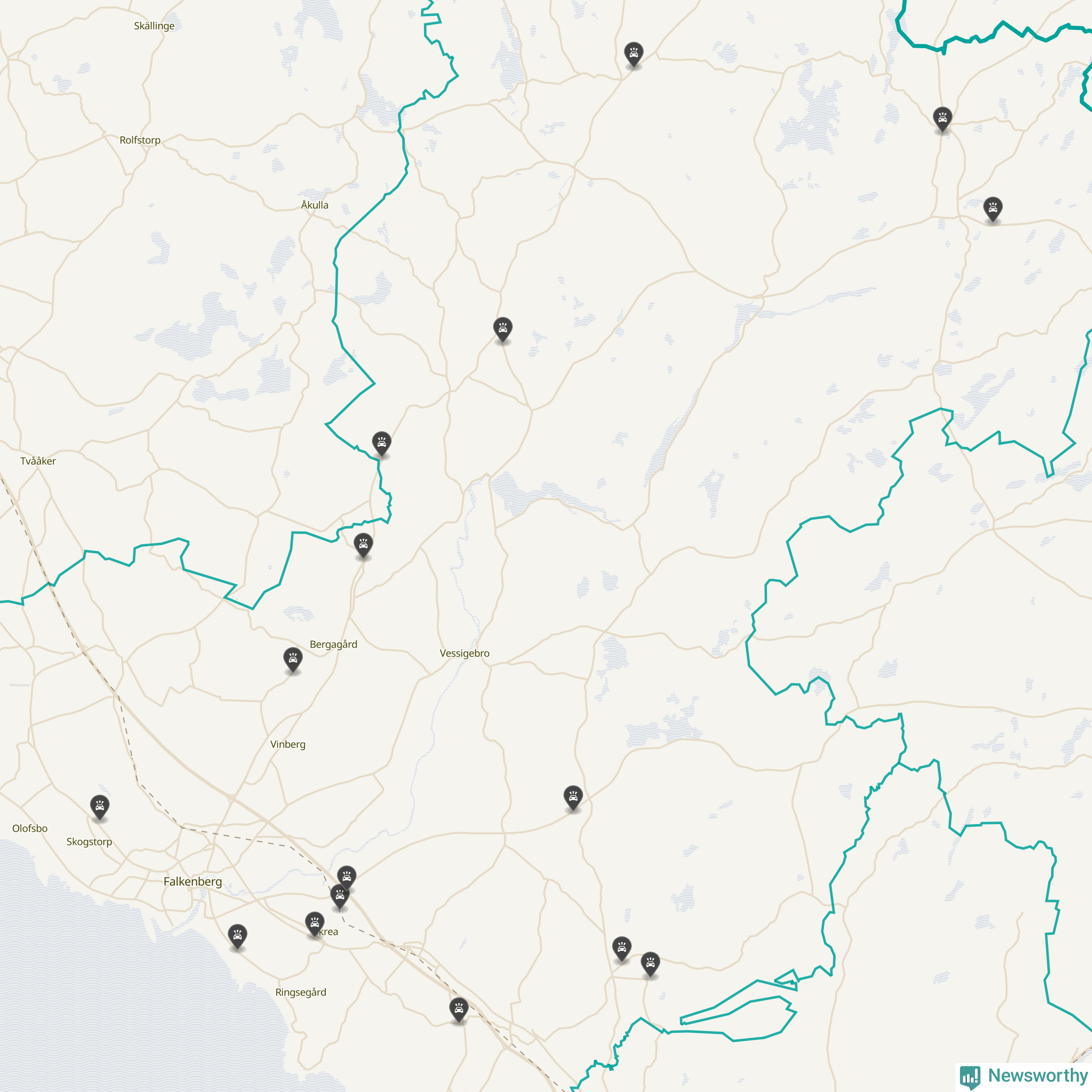Karta över viltolyckor i Falkenbergs kommun