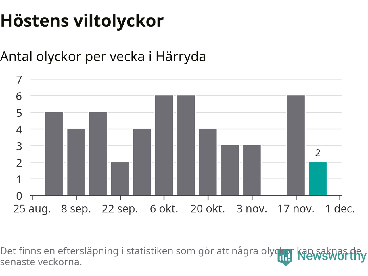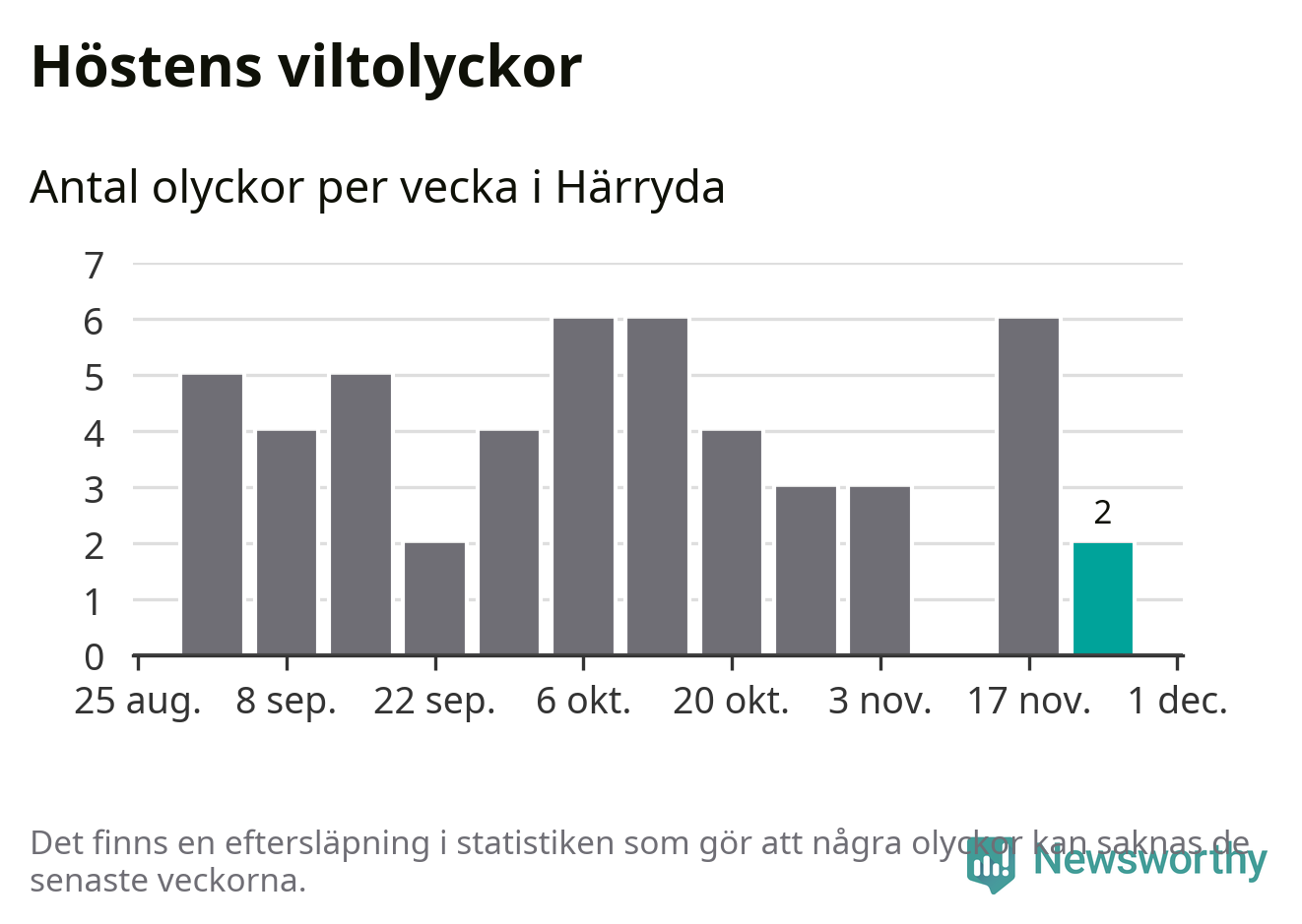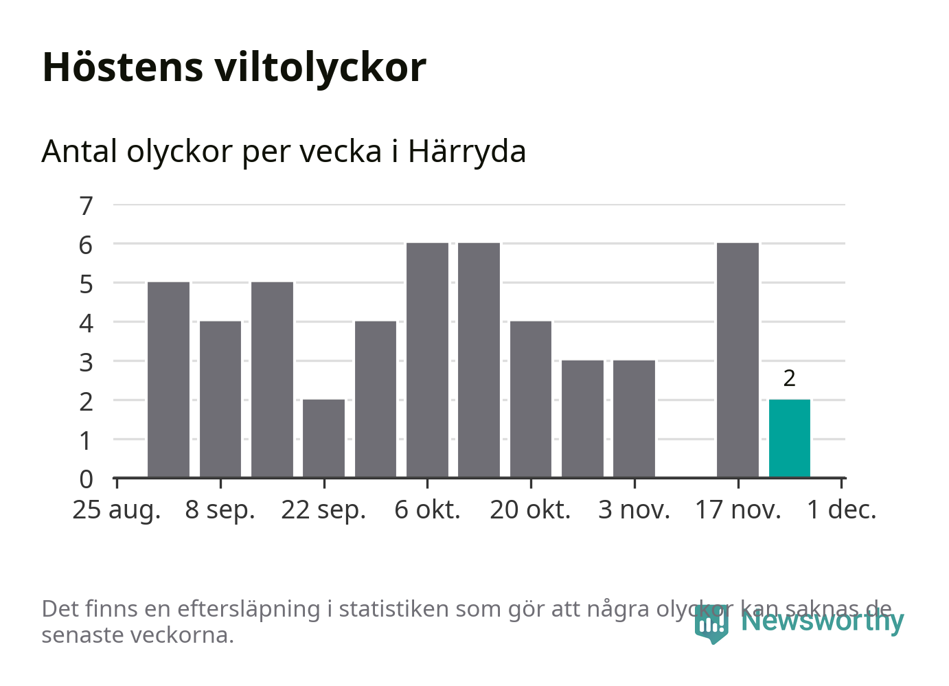 Hittills har två viltolyckor rapporterats in i Härryda kommun från vecka 48. Se listan här.