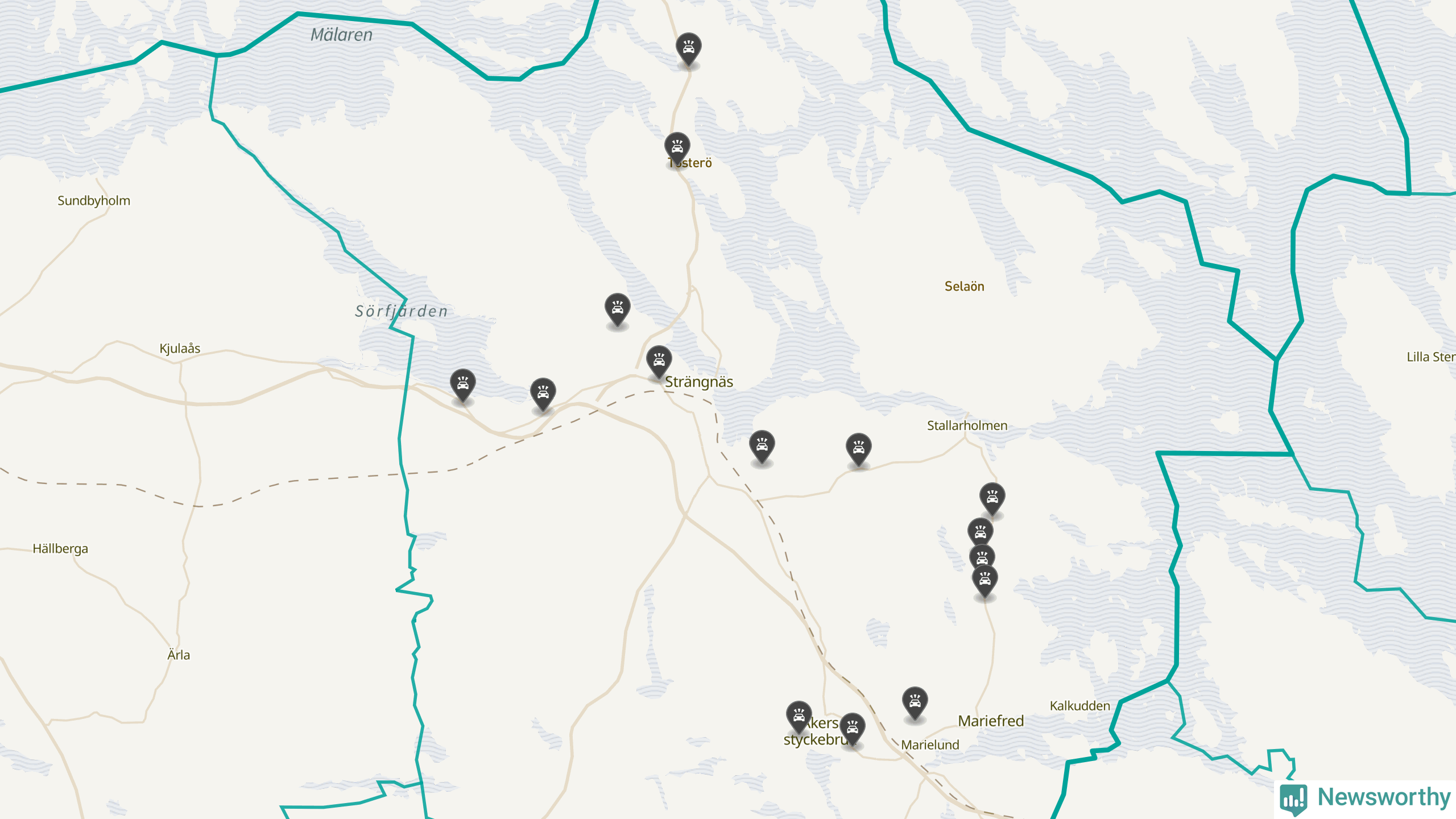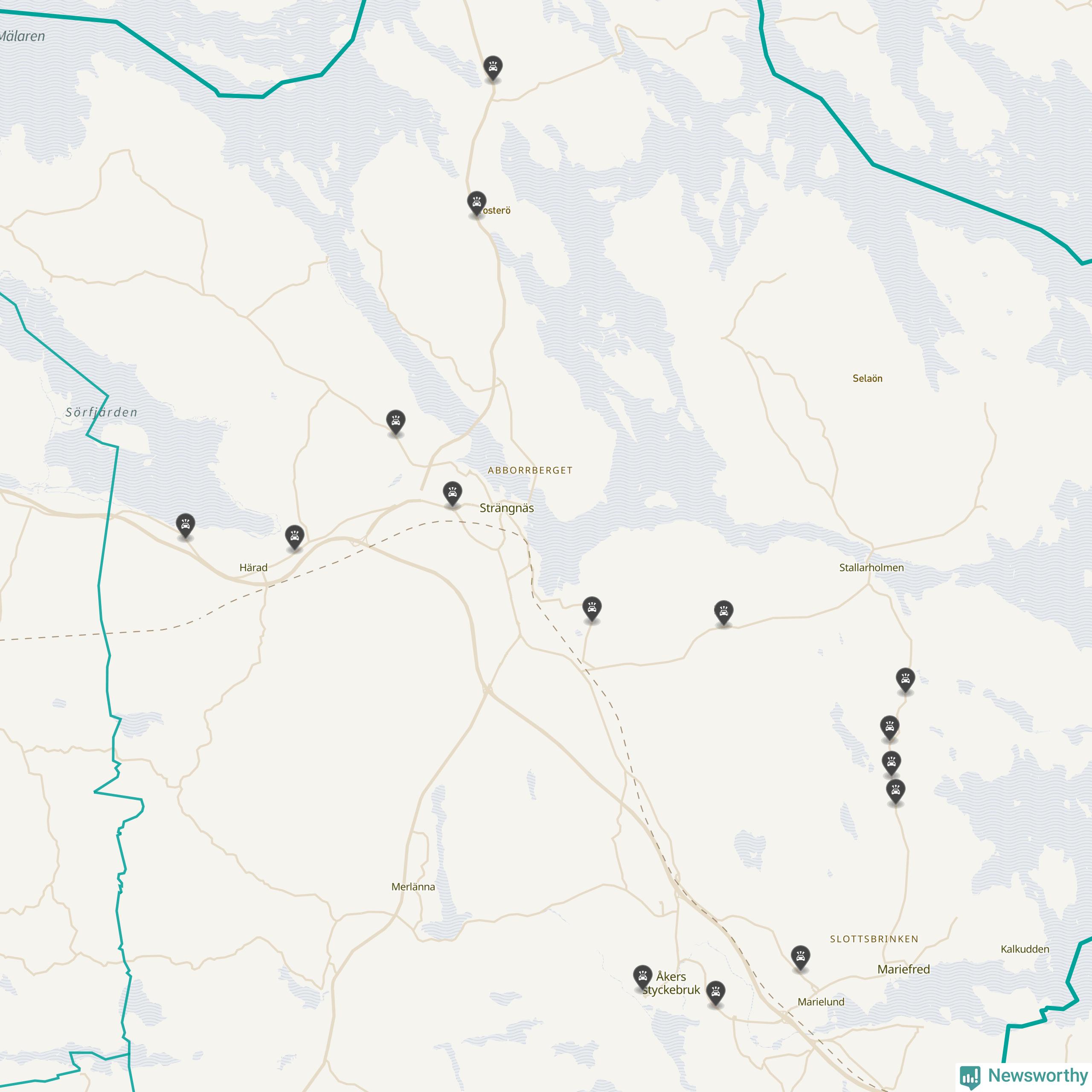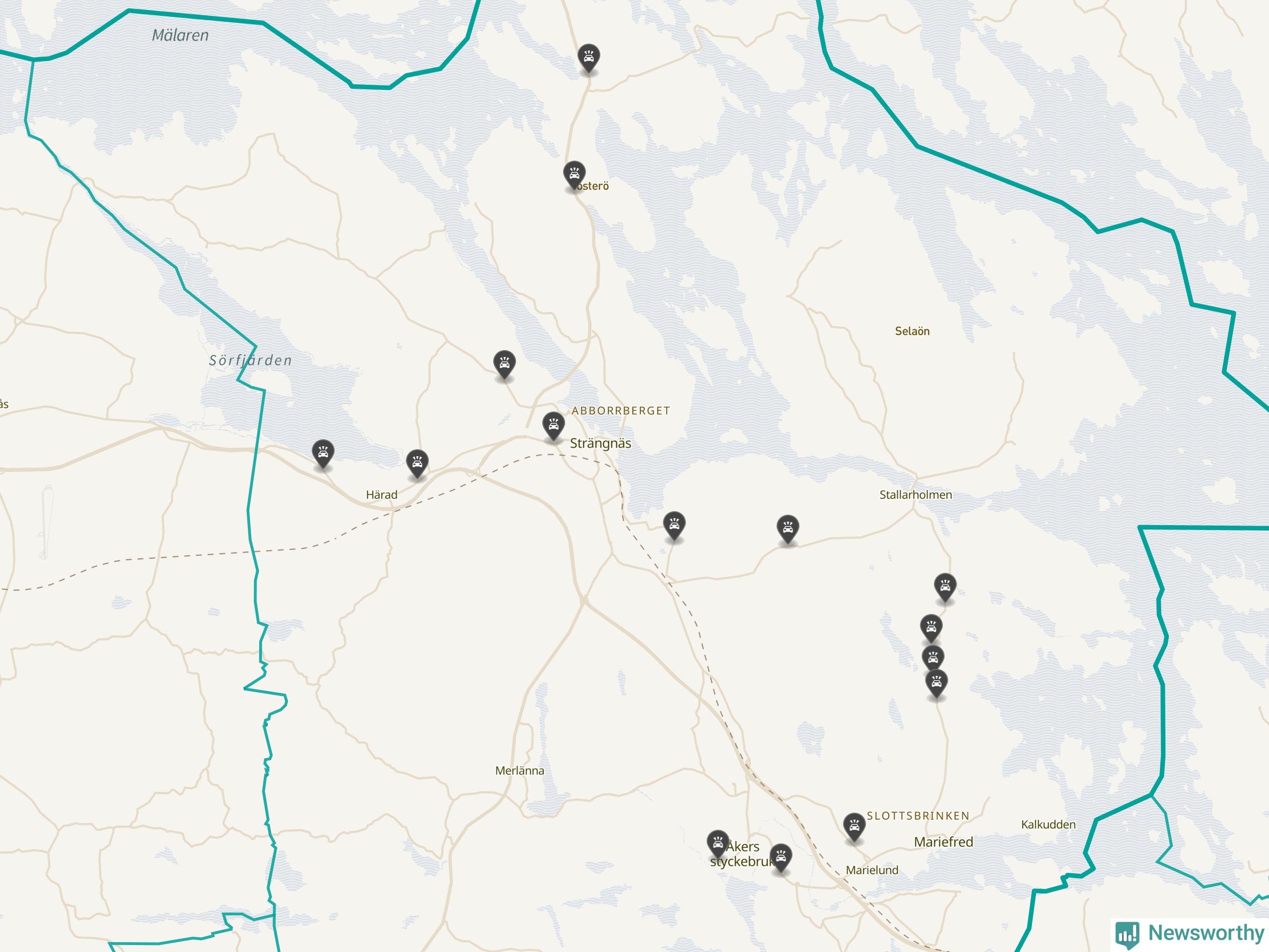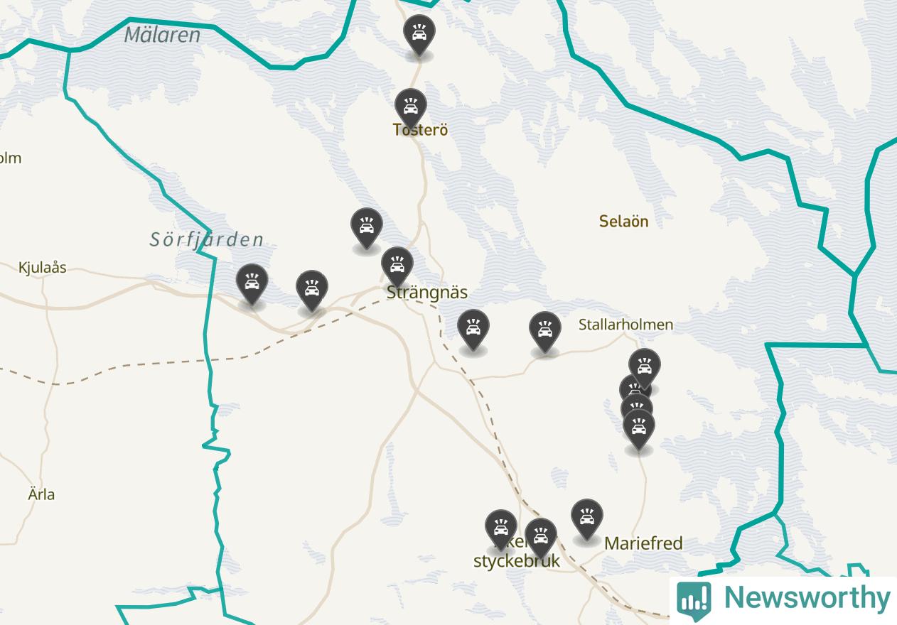Karta: Förra veckans viltolyckor i Strängnäs