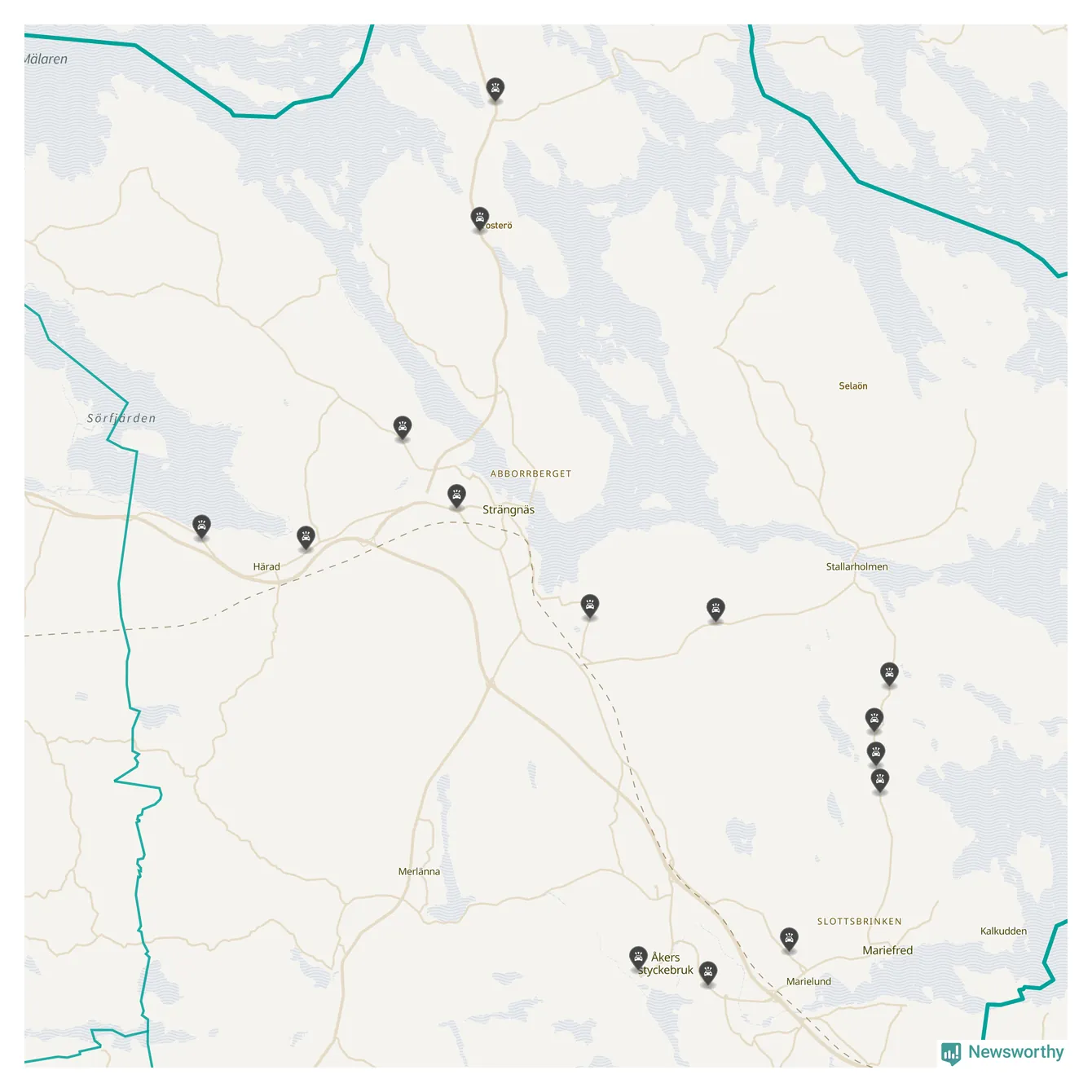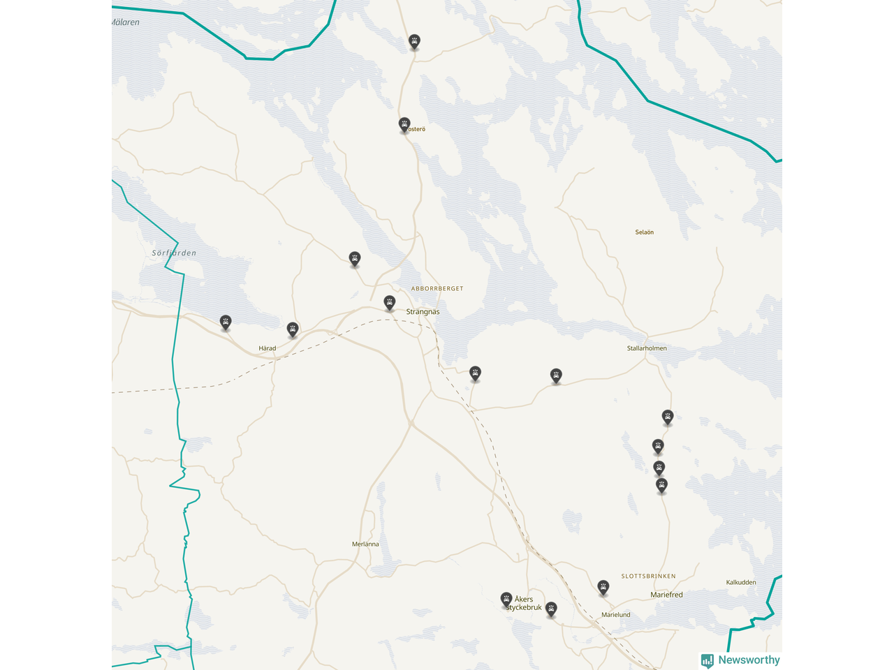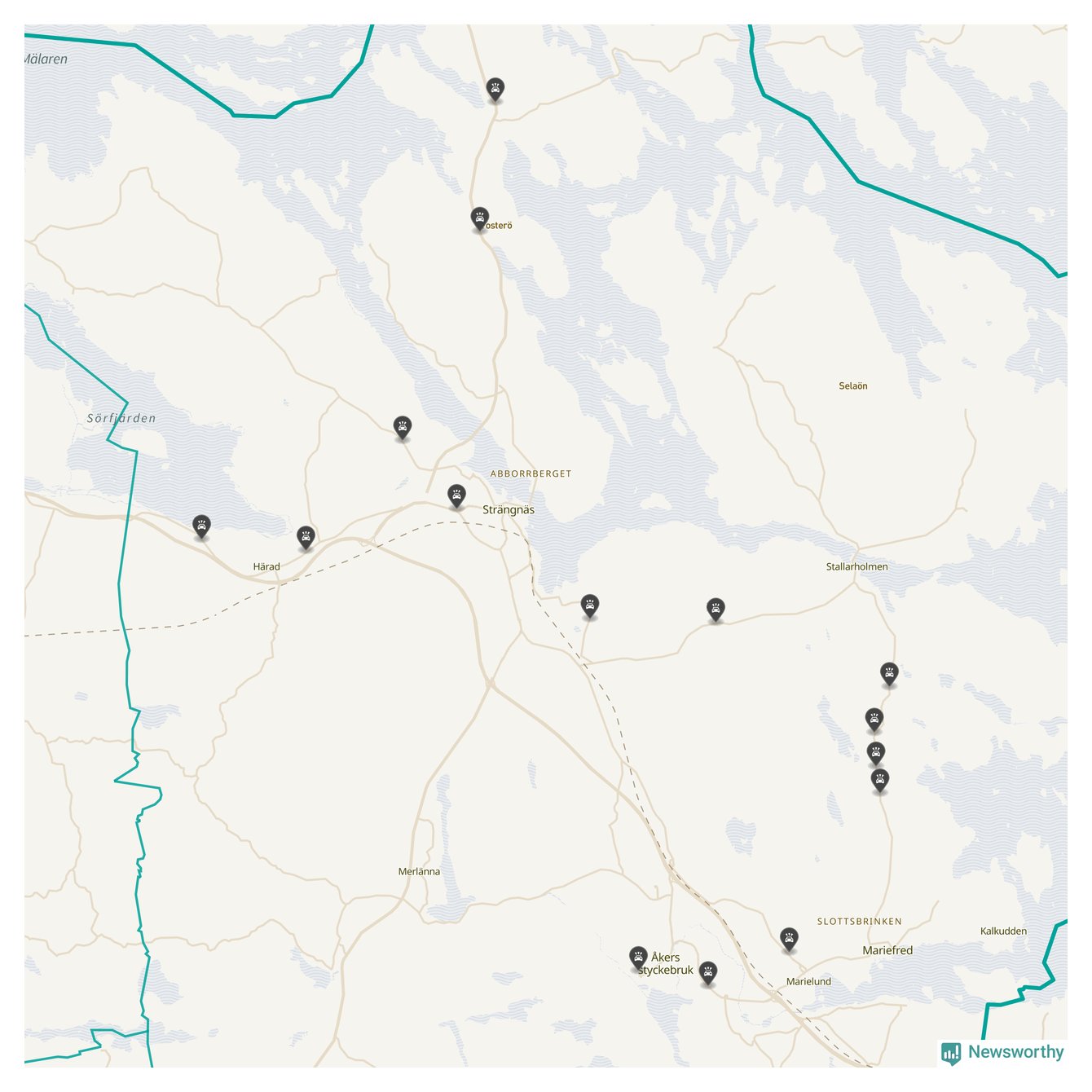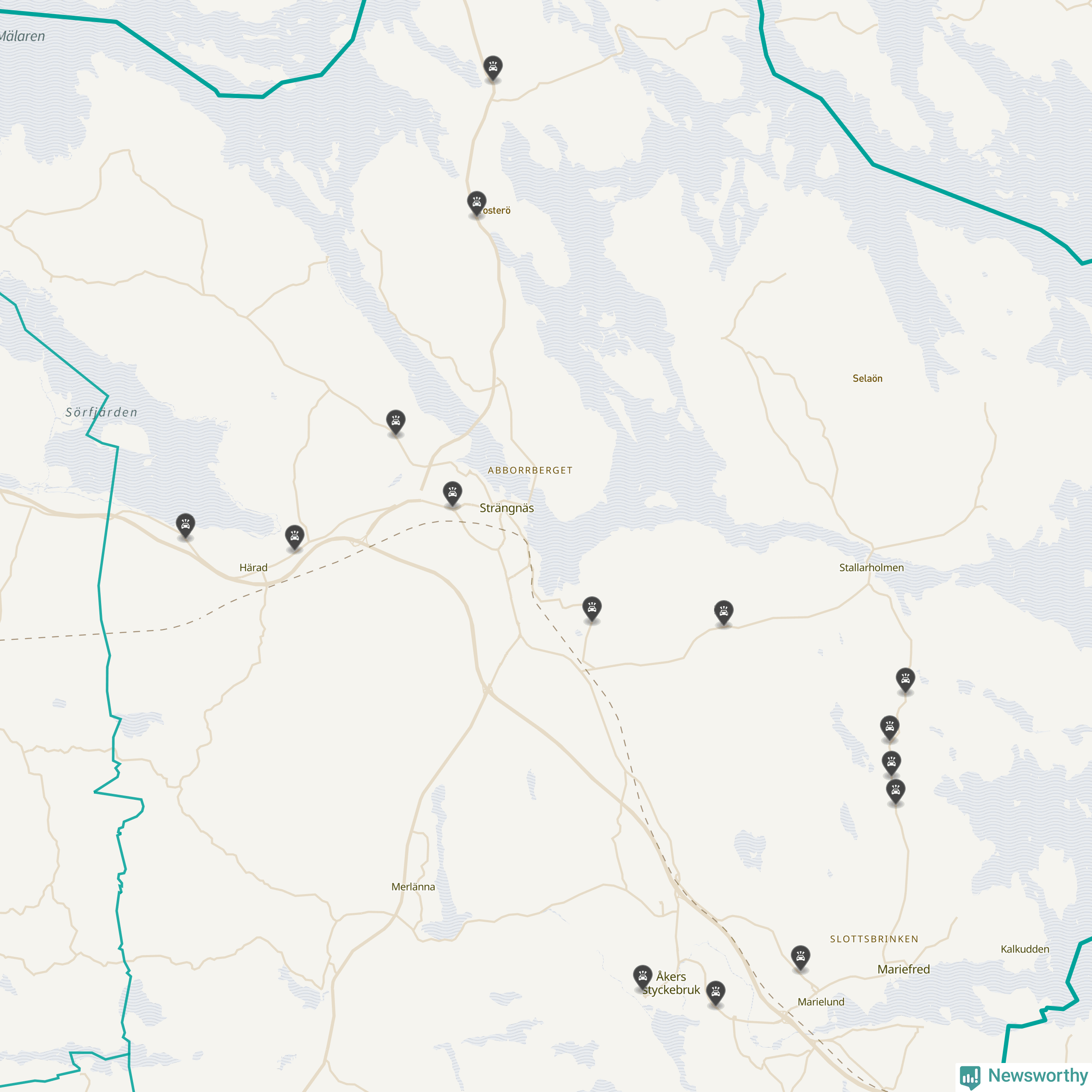 Karta: Förra veckans viltolyckor i Strängnäs