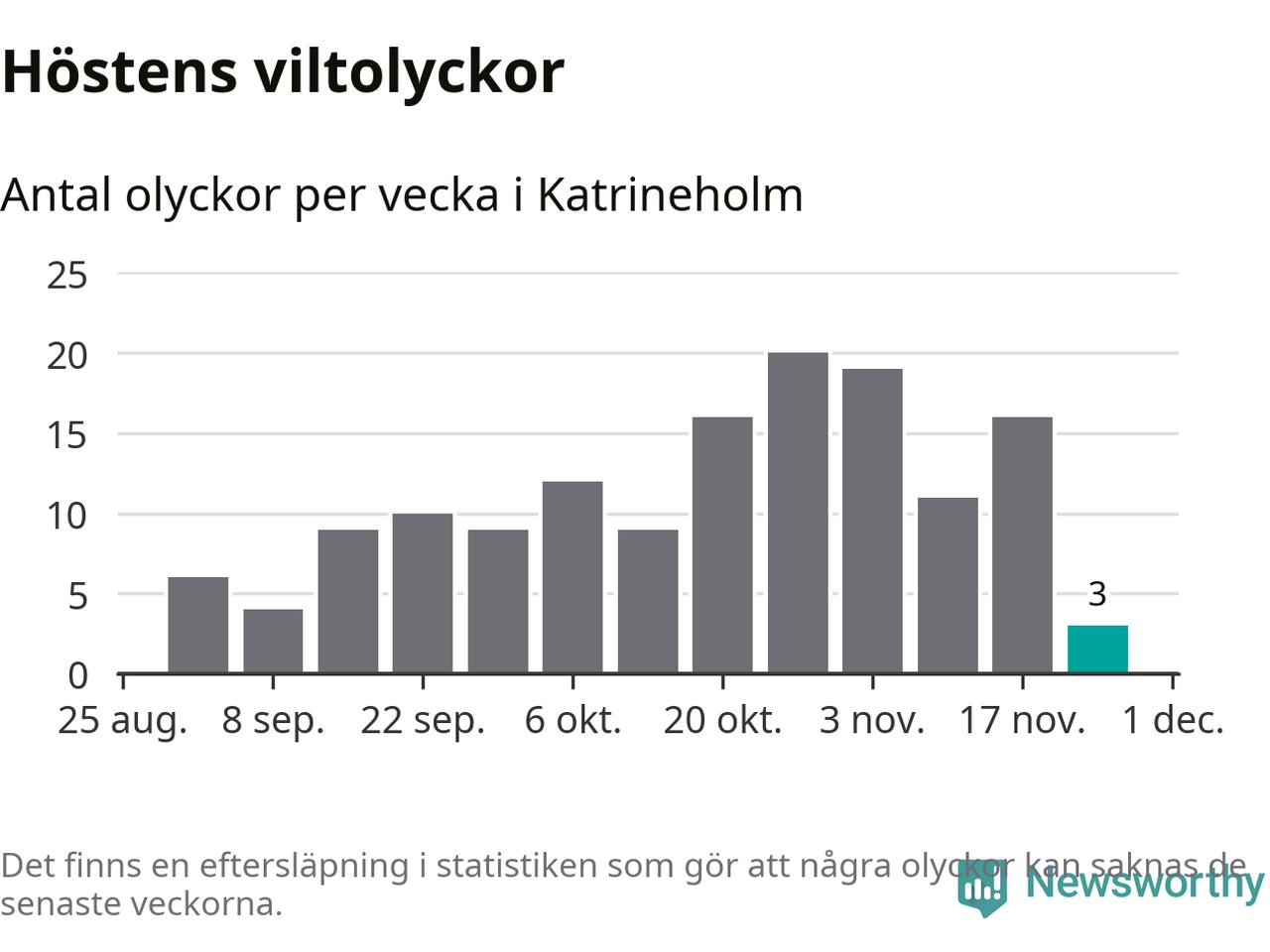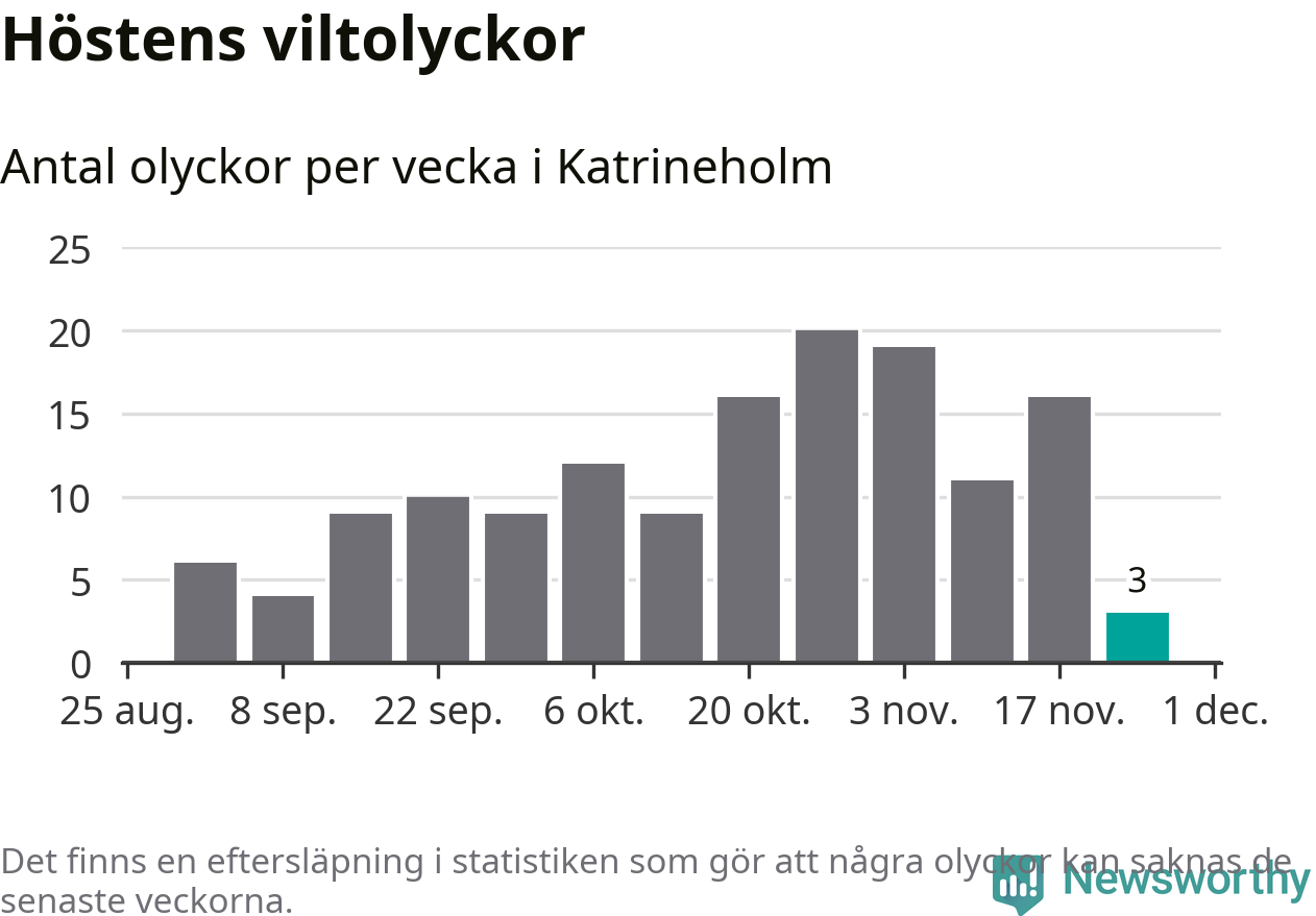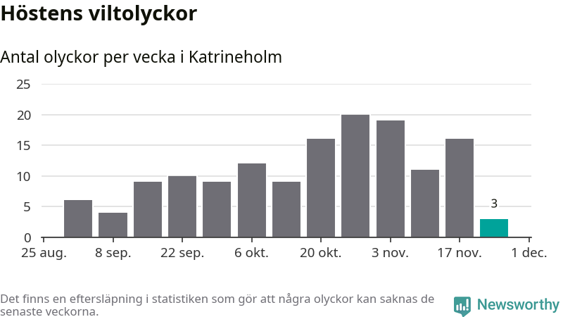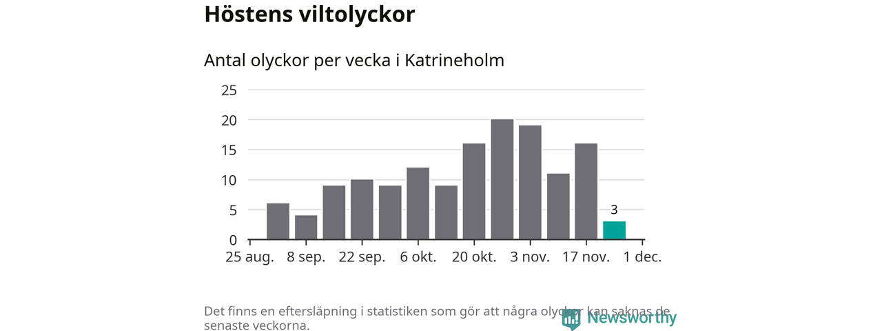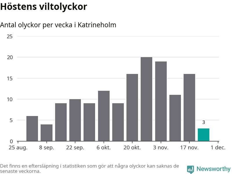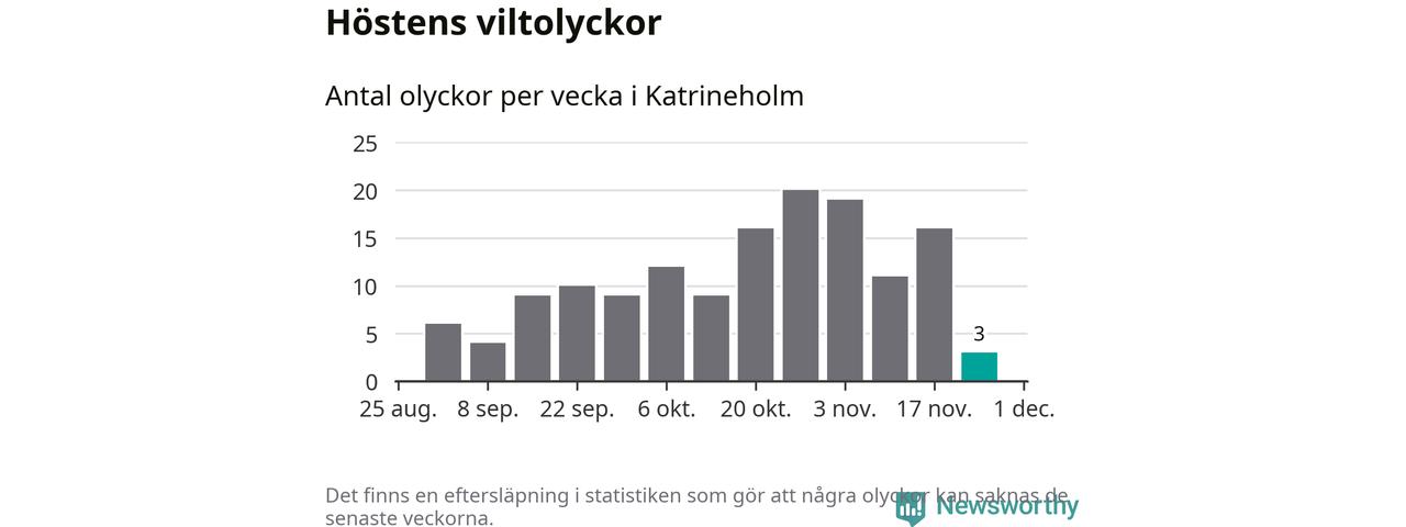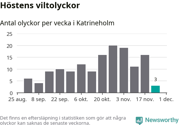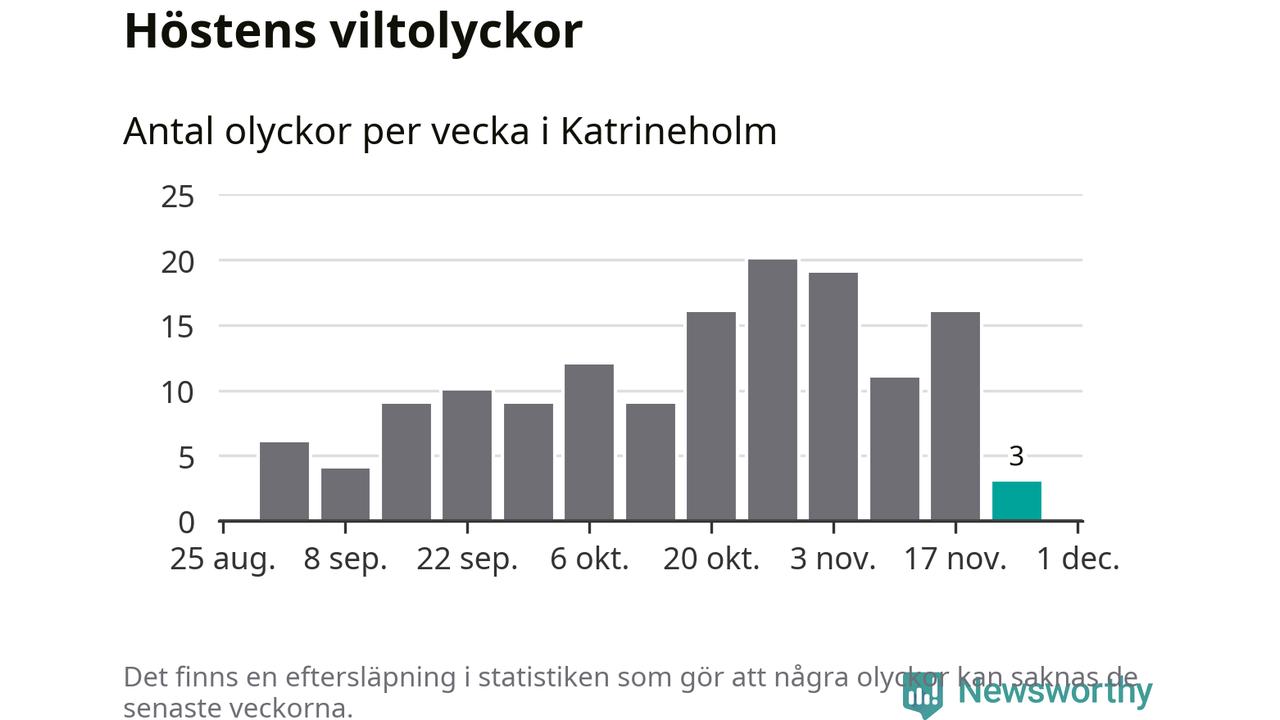 Hittills har tre viltolyckor rapporterats in i Katrineholms kommun från vecka 48. Se listan här.