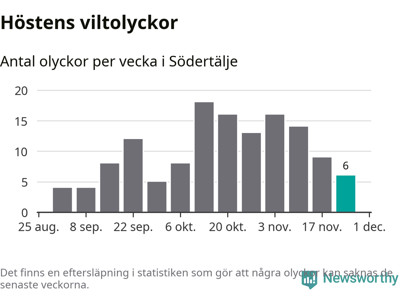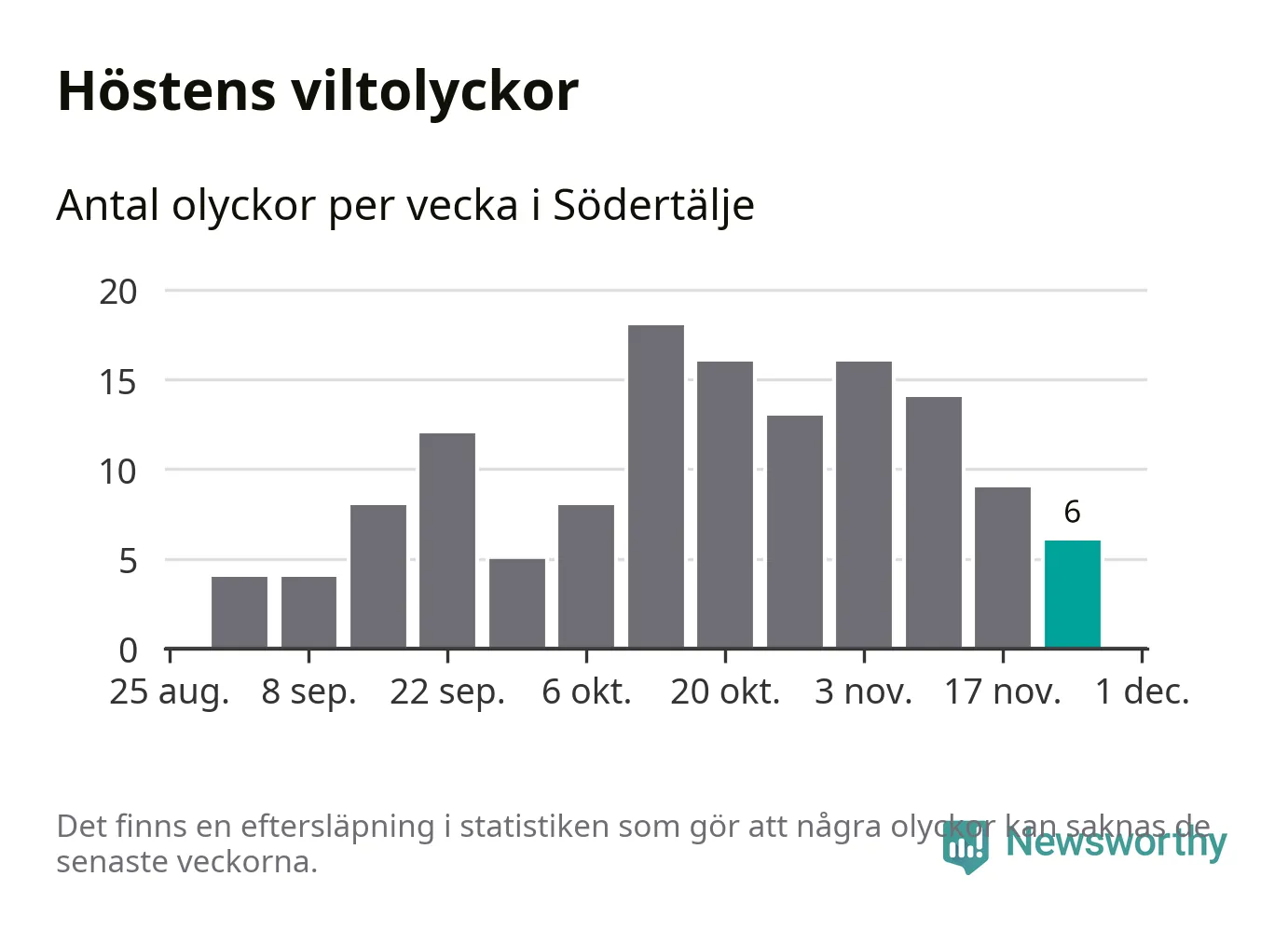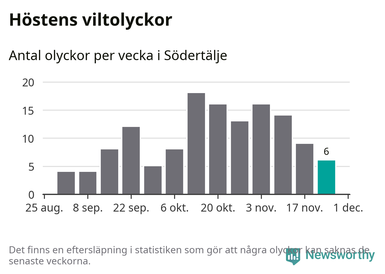 Hittills har sex viltolyckor rapporterats in i Södertälje kommun från vecka 48. Se listan här.