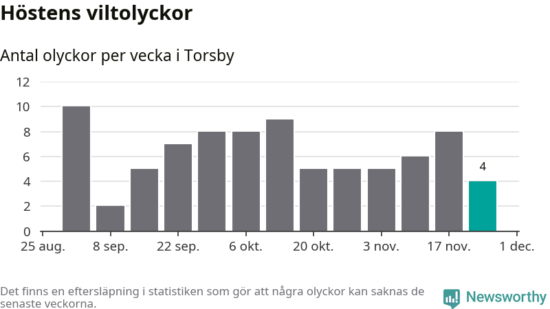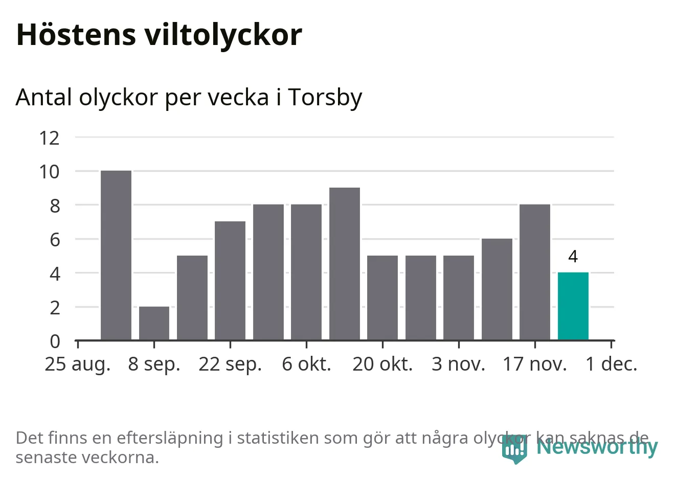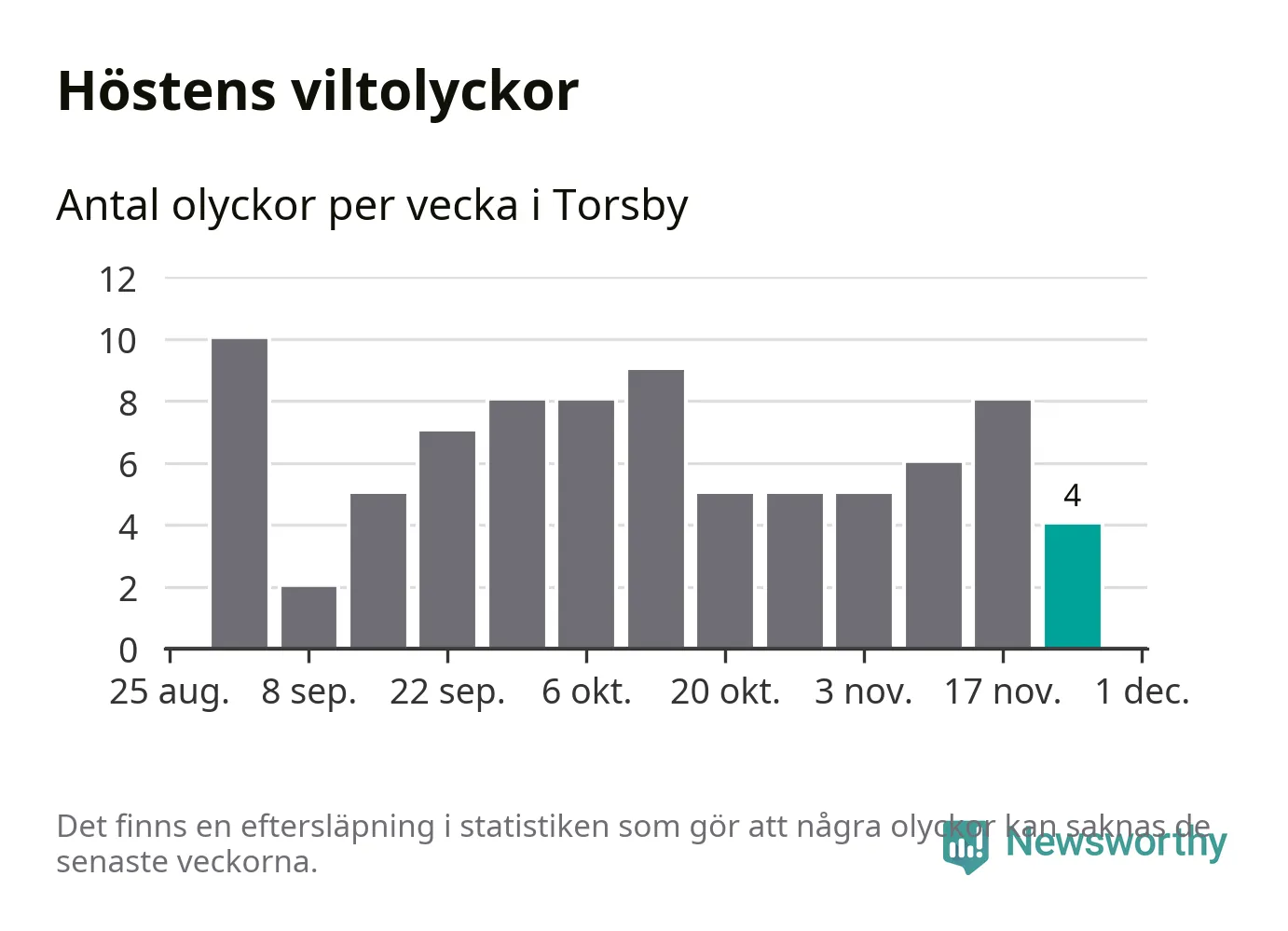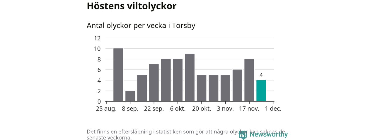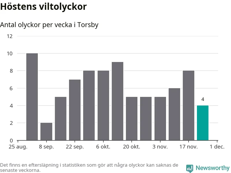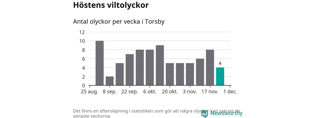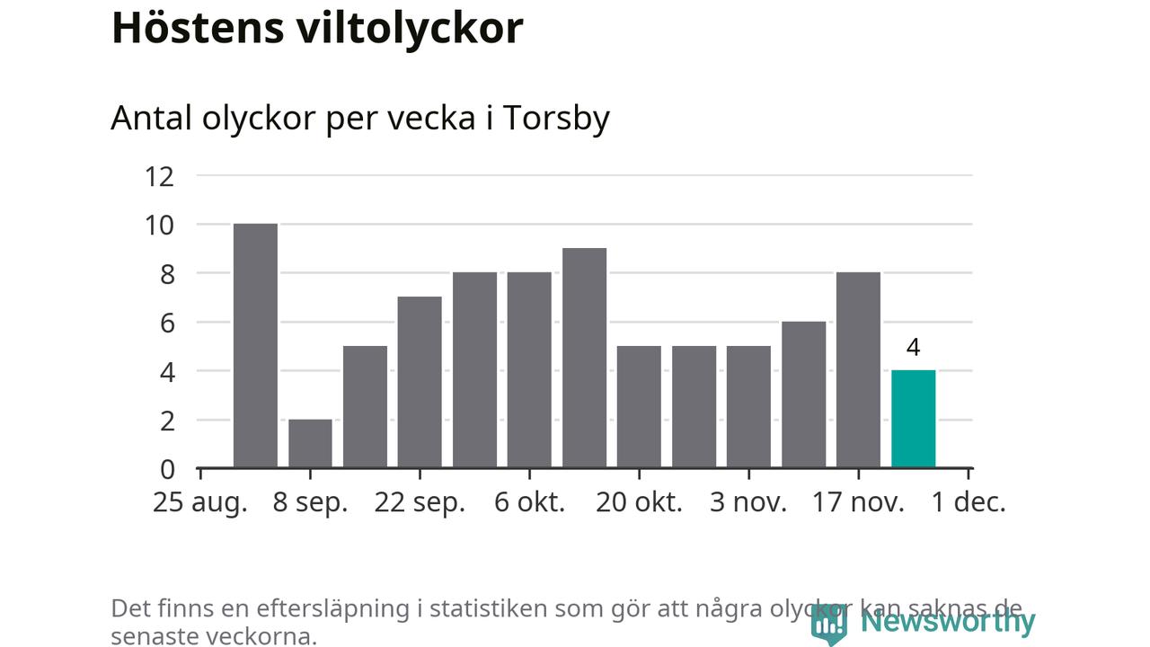 Hittills har fyra viltolyckor rapporterats in i Torsby kommun från vecka 48. Se listan här.