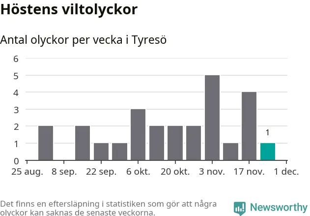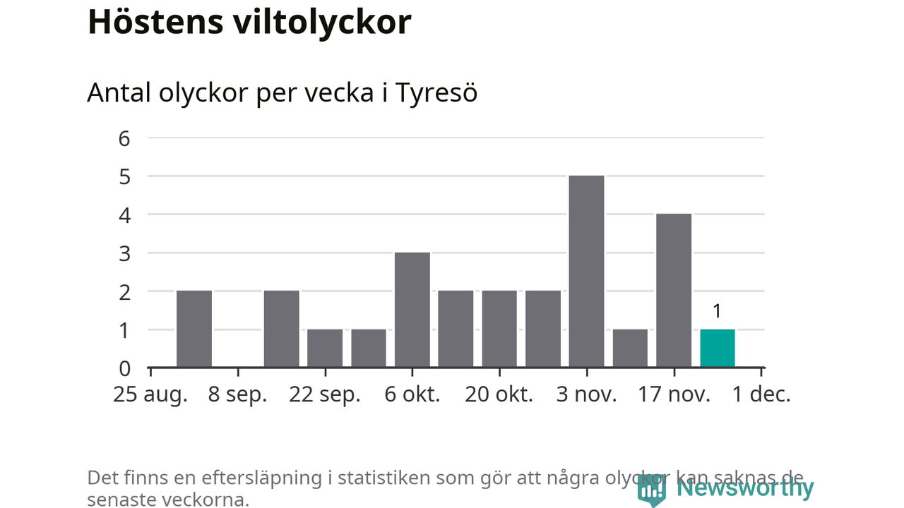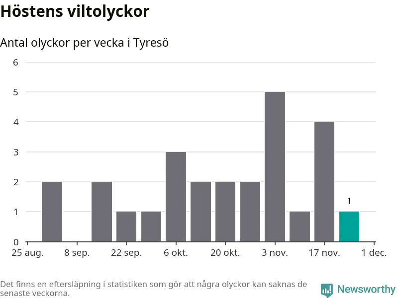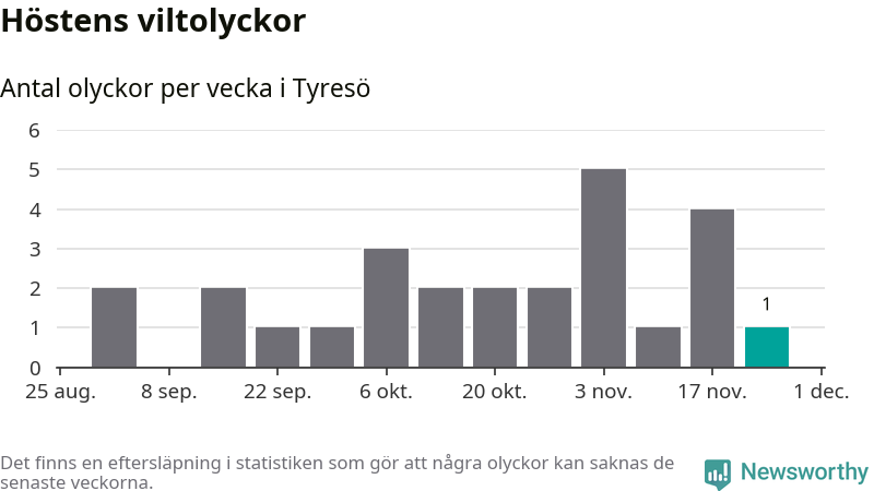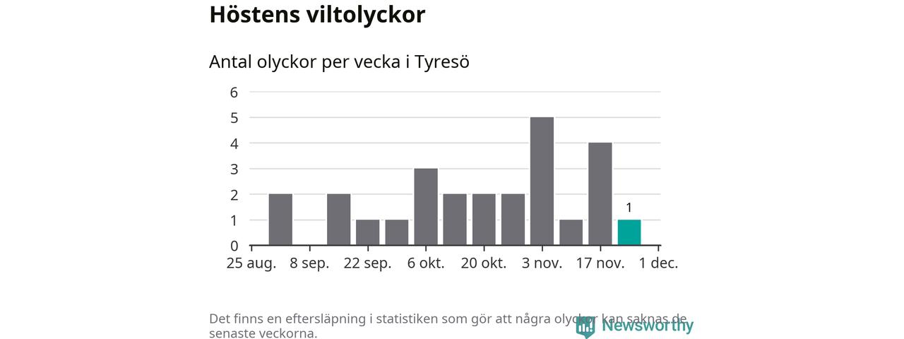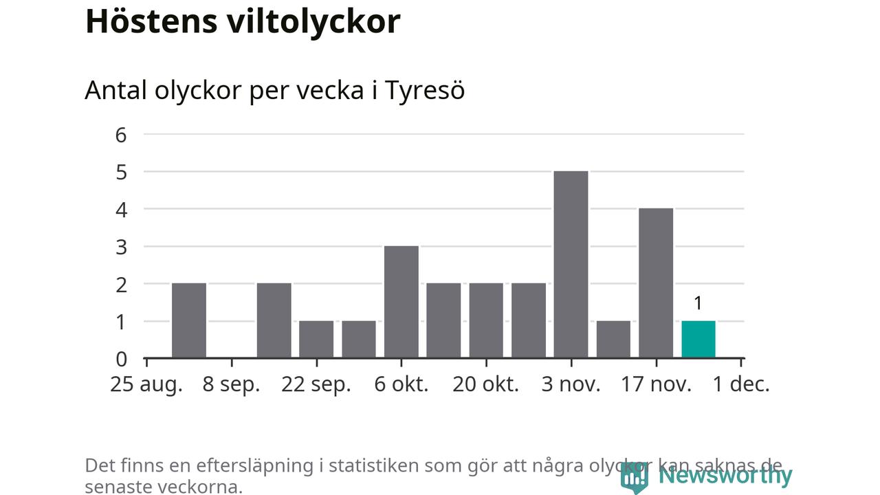 Från förra veckan (vecka 48) har hittills en viltolycka rapporterats in i Tyresö kommun.