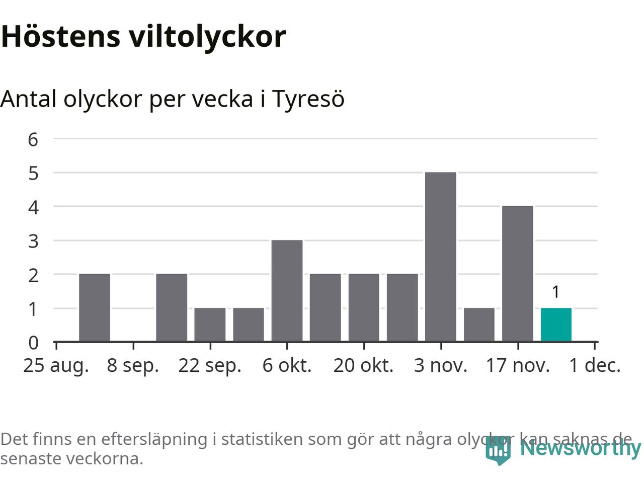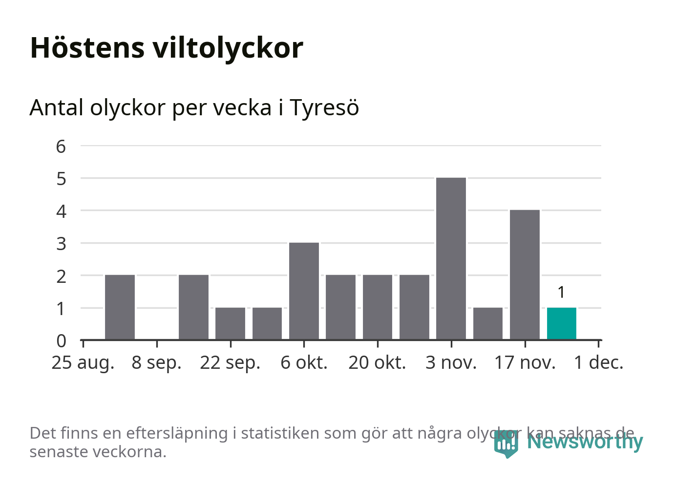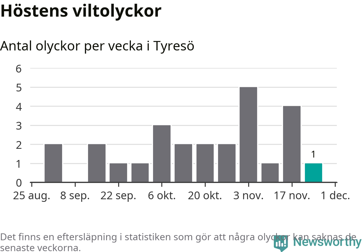Från förra veckan (vecka 48) har hittills en viltolycka rapporterats in i Tyresö kommun.