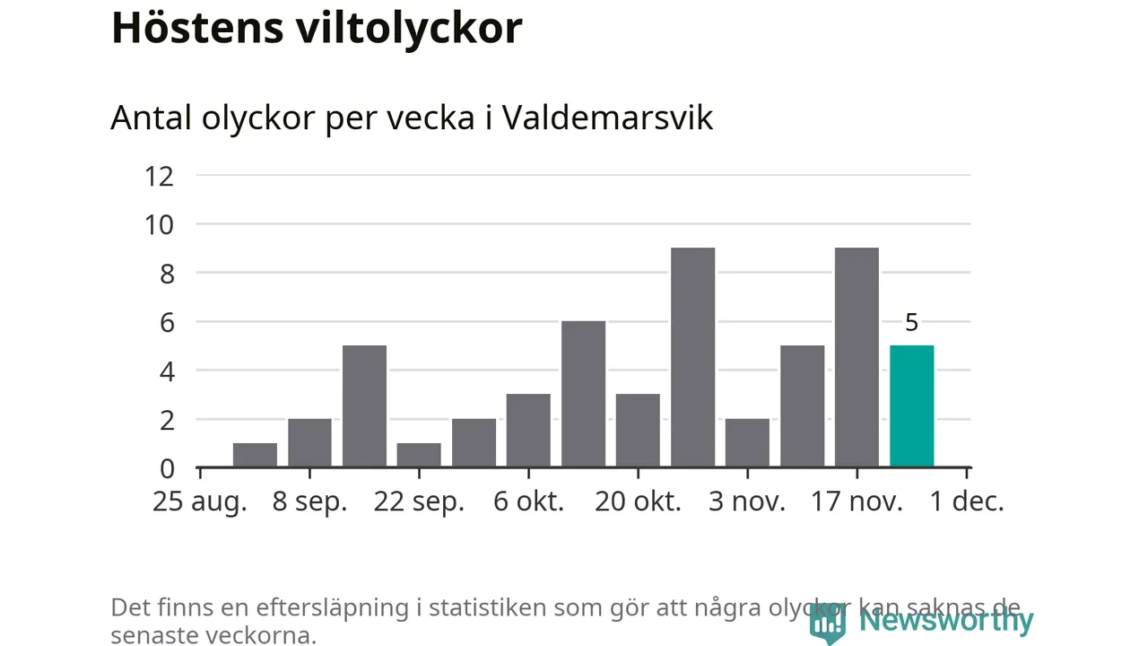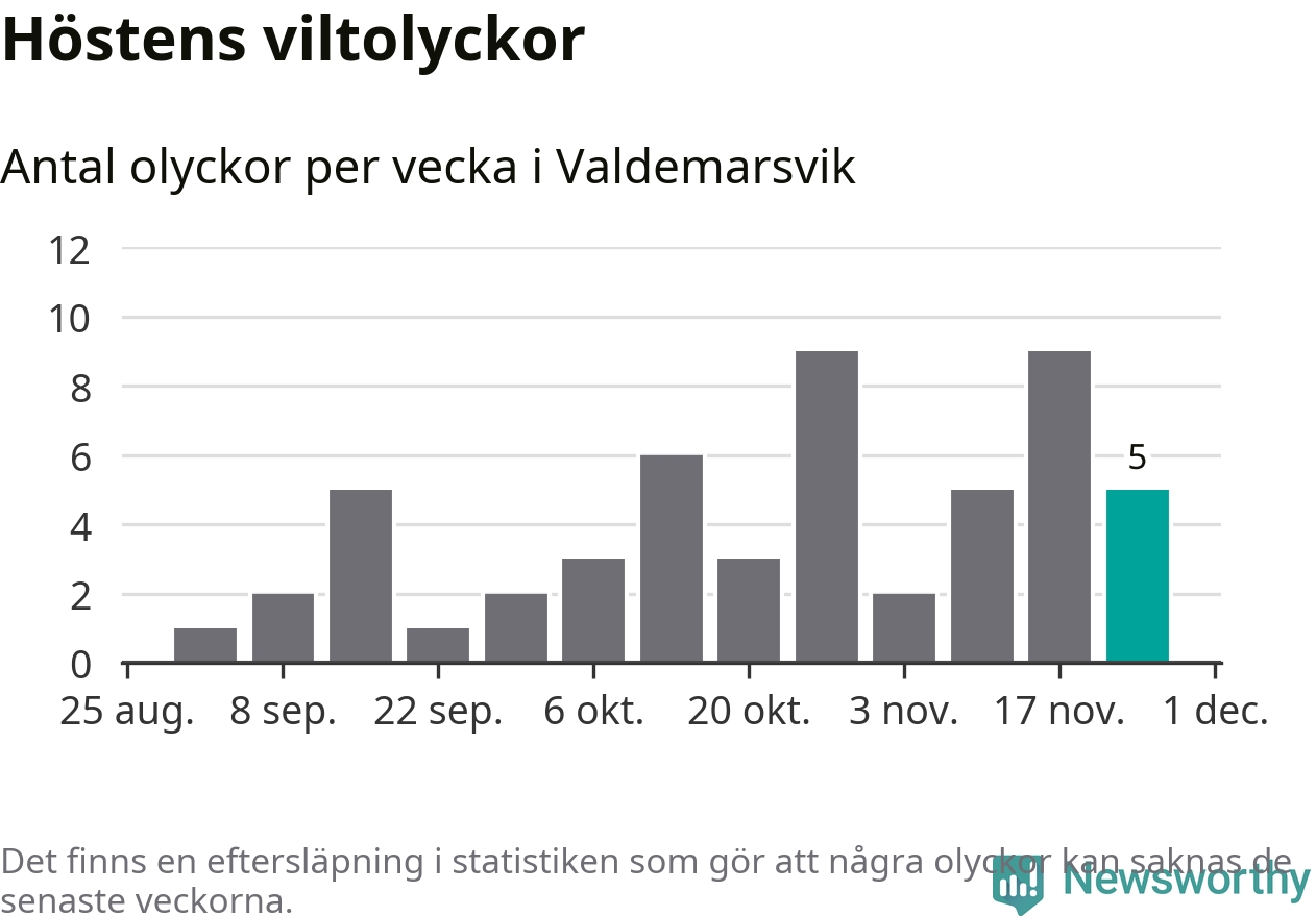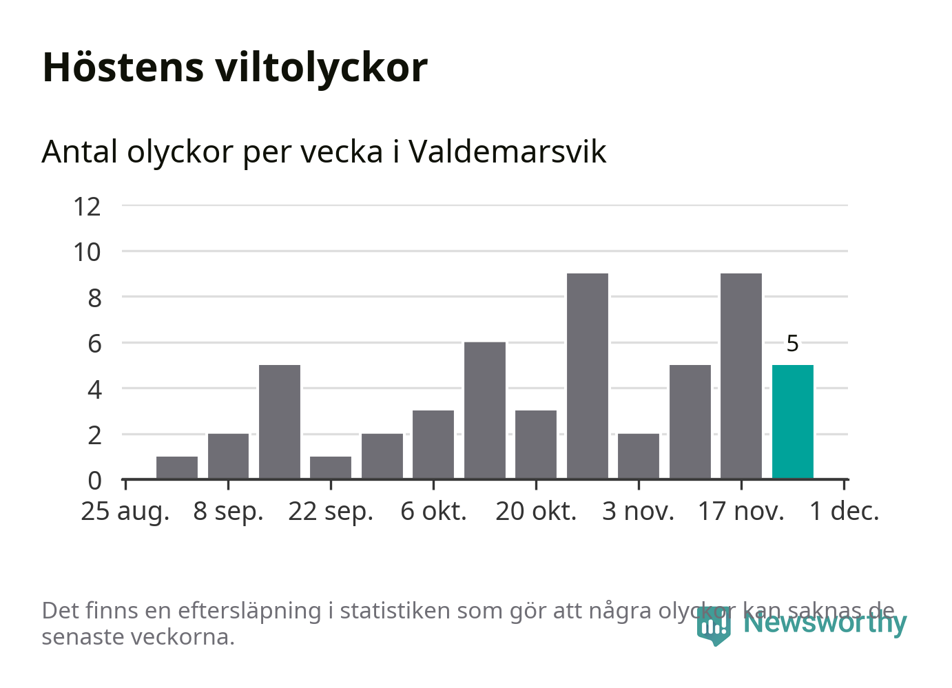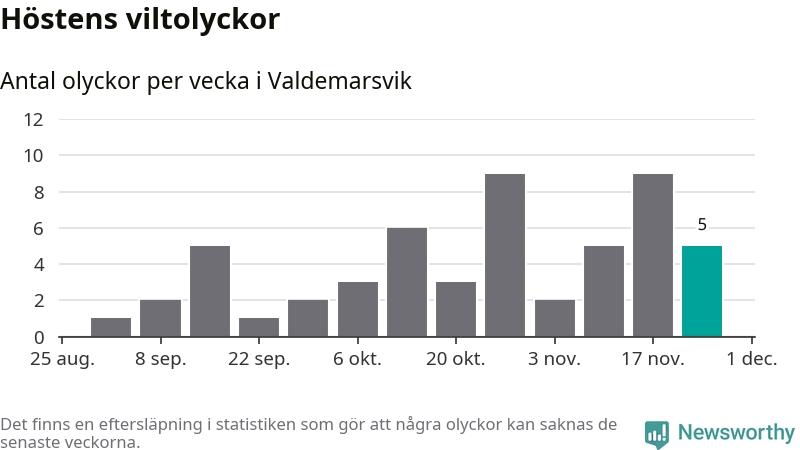 Hittills har fem viltolyckor rapporterats in i Valdemarsviks kommun från vecka 48. Se listan här.