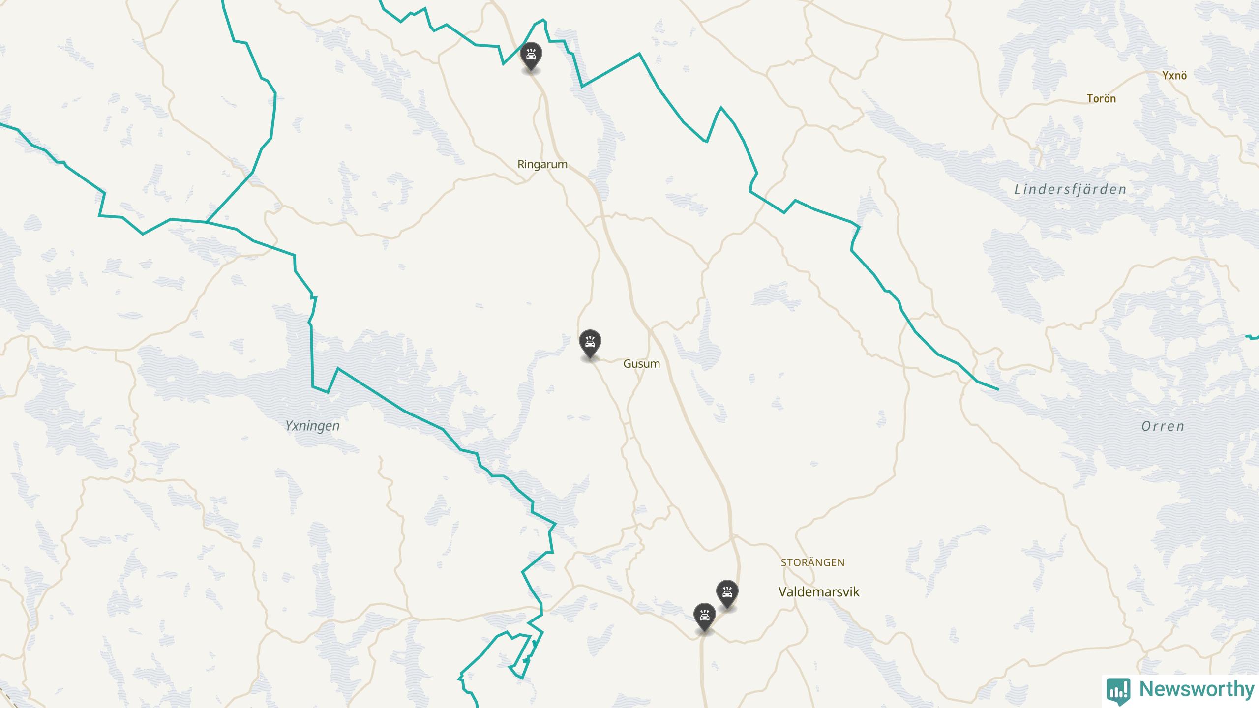 Karta: Förra veckans viltolyckor i Valdemarsvik