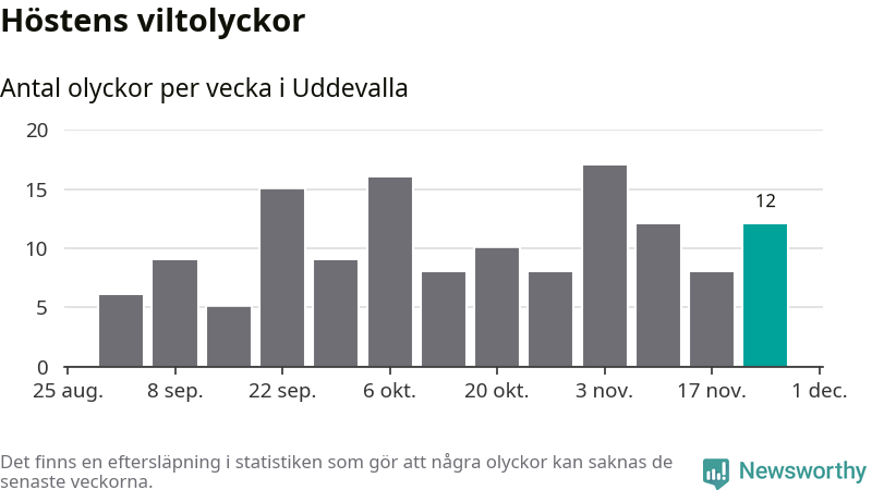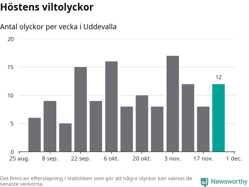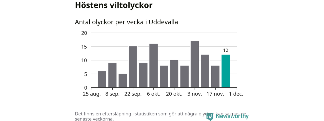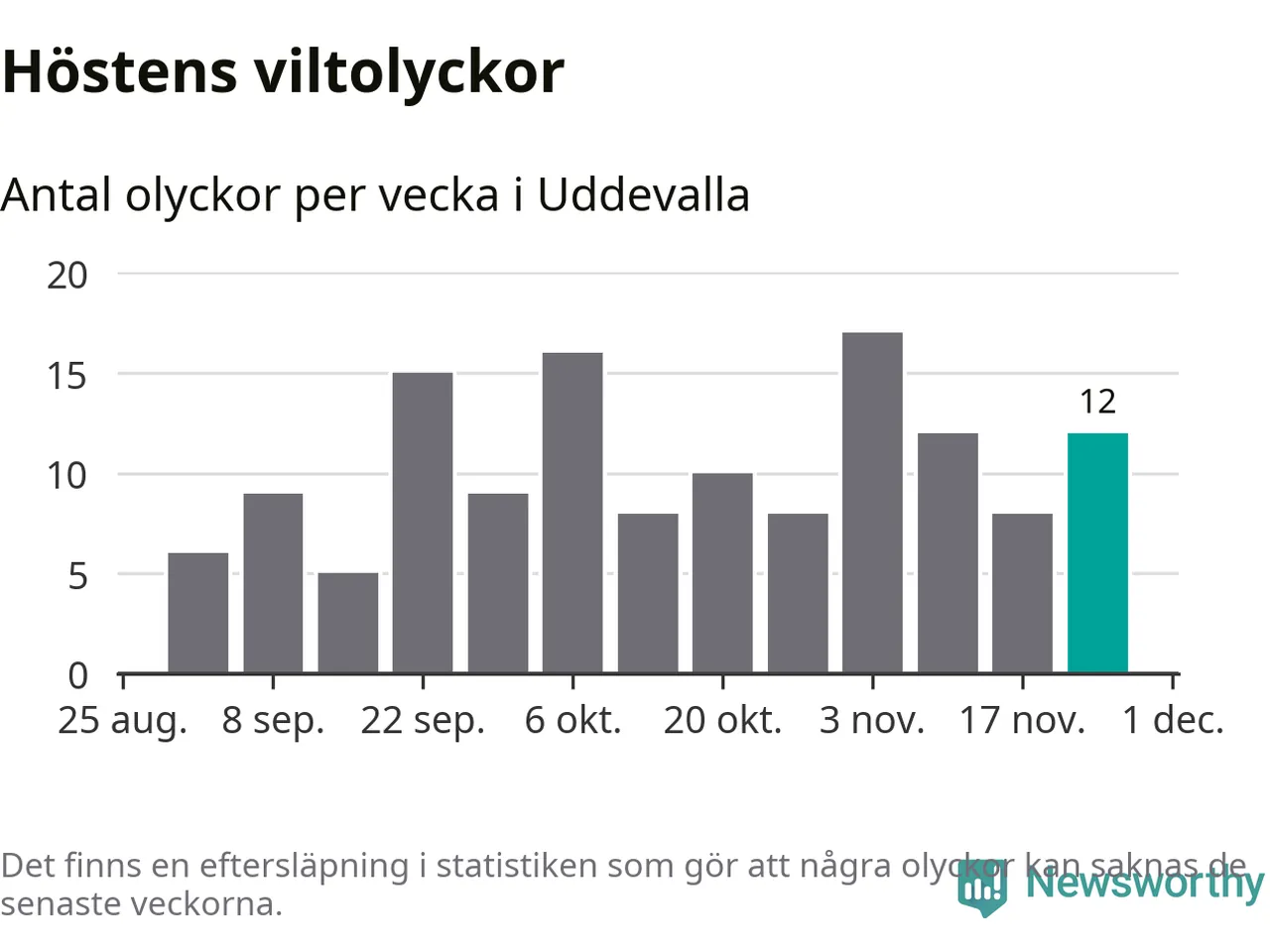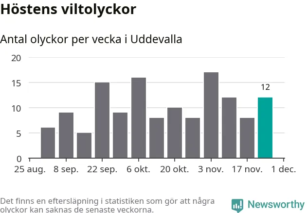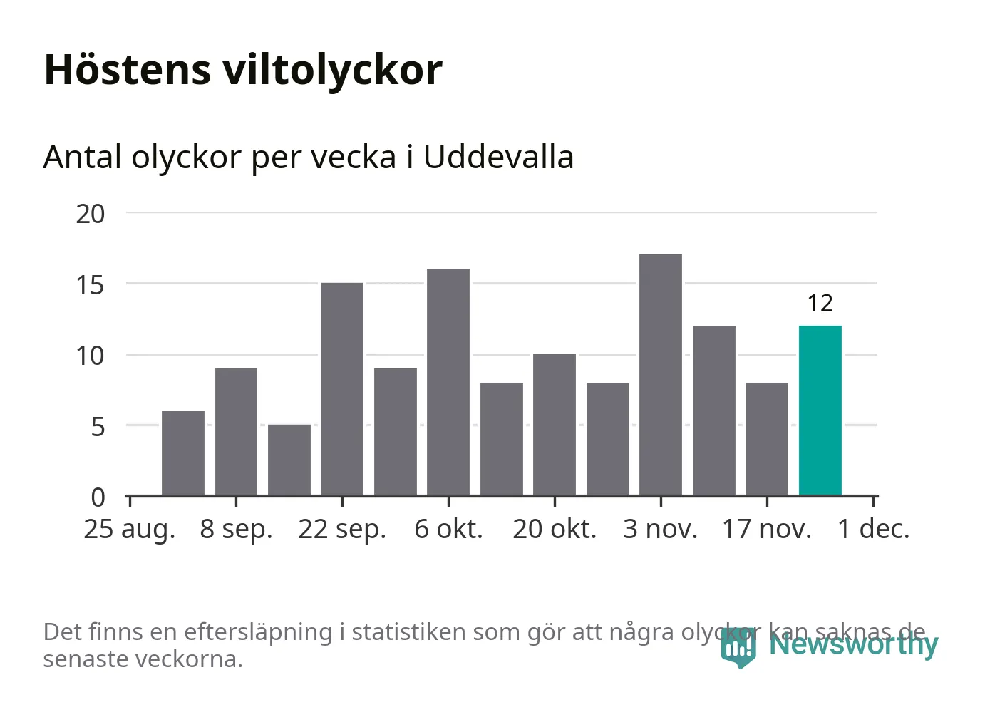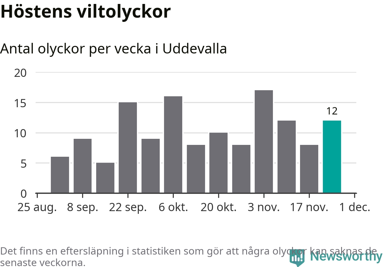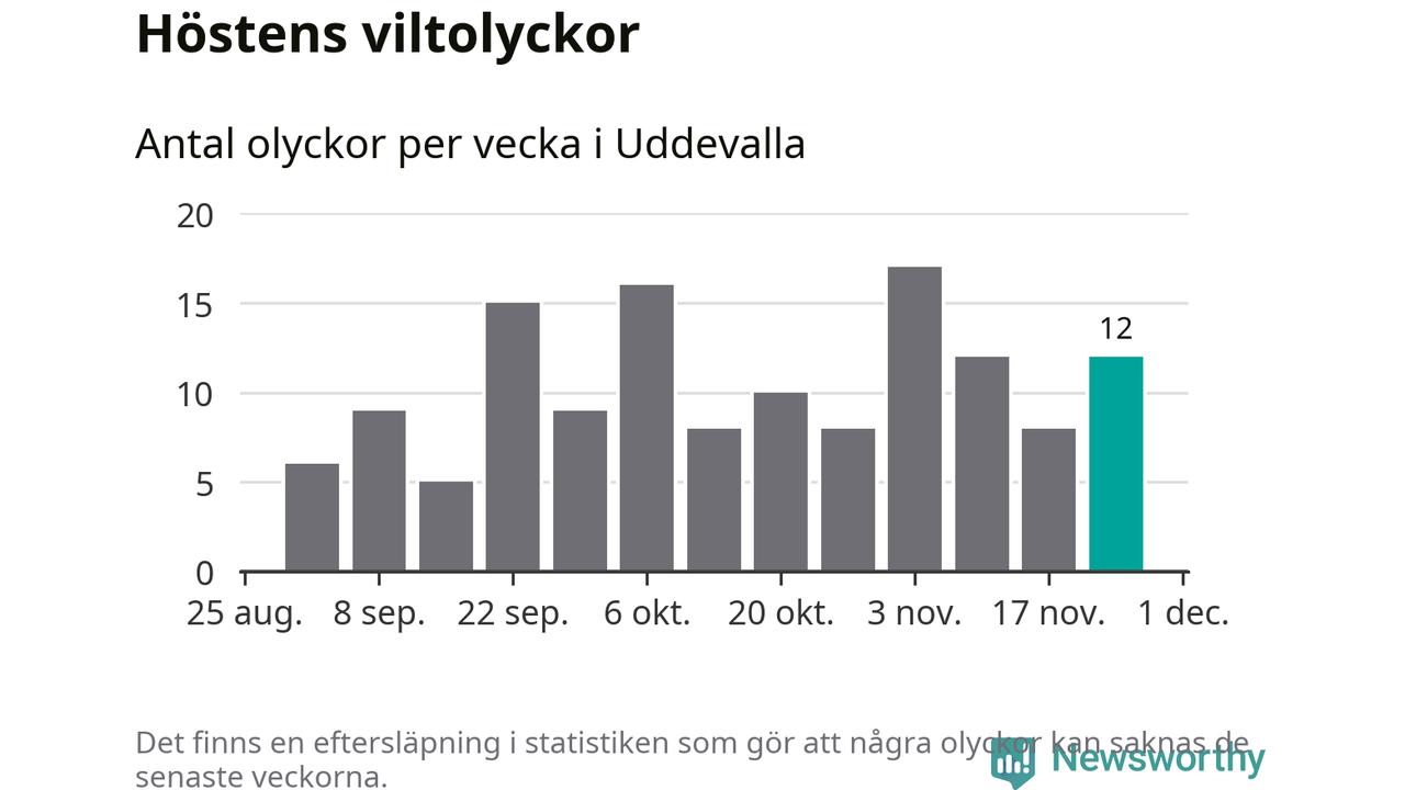 Hittills har tolv viltolyckor rapporterats in i Uddevalla kommun från vecka 48. Se listan här.
