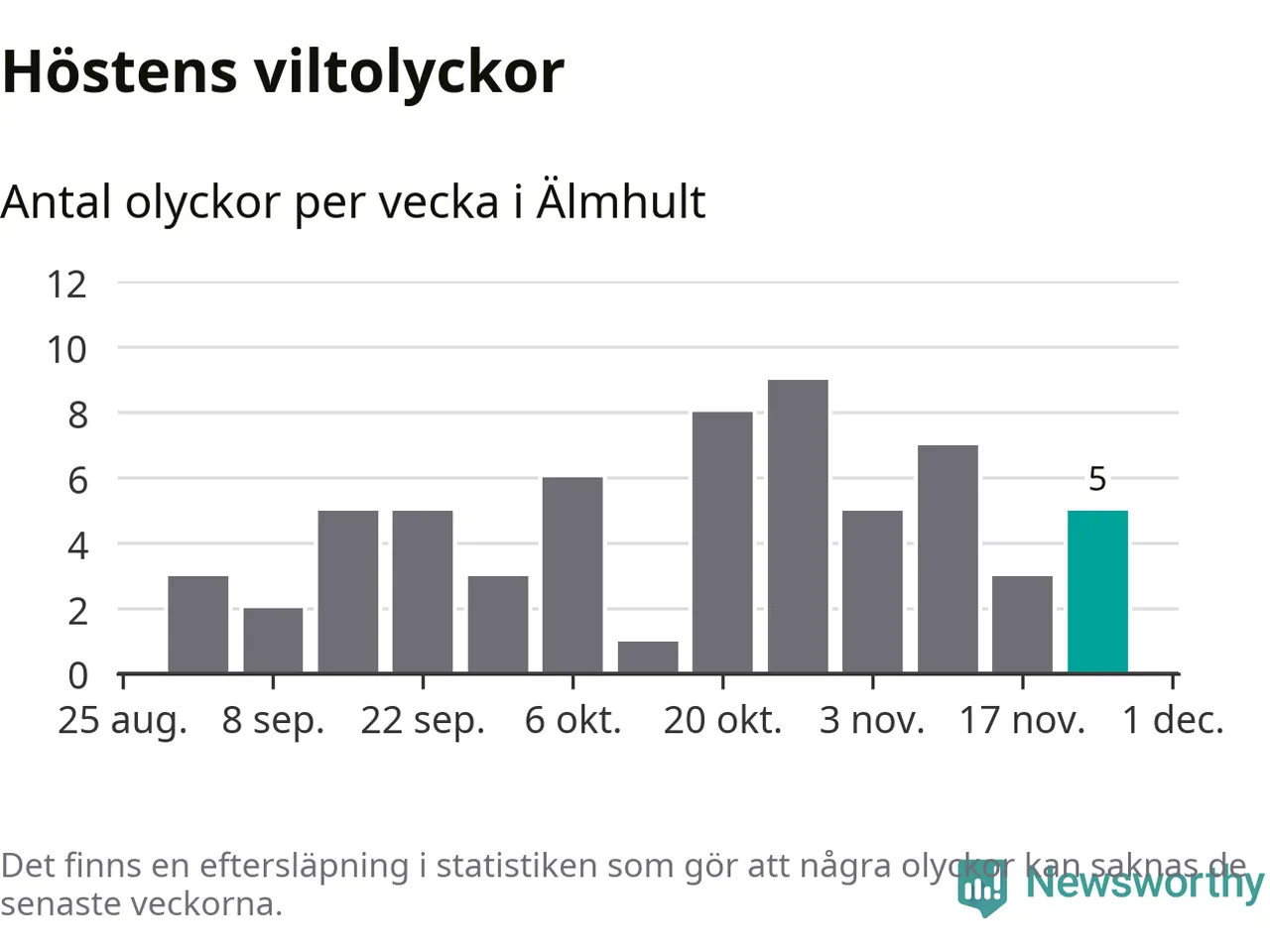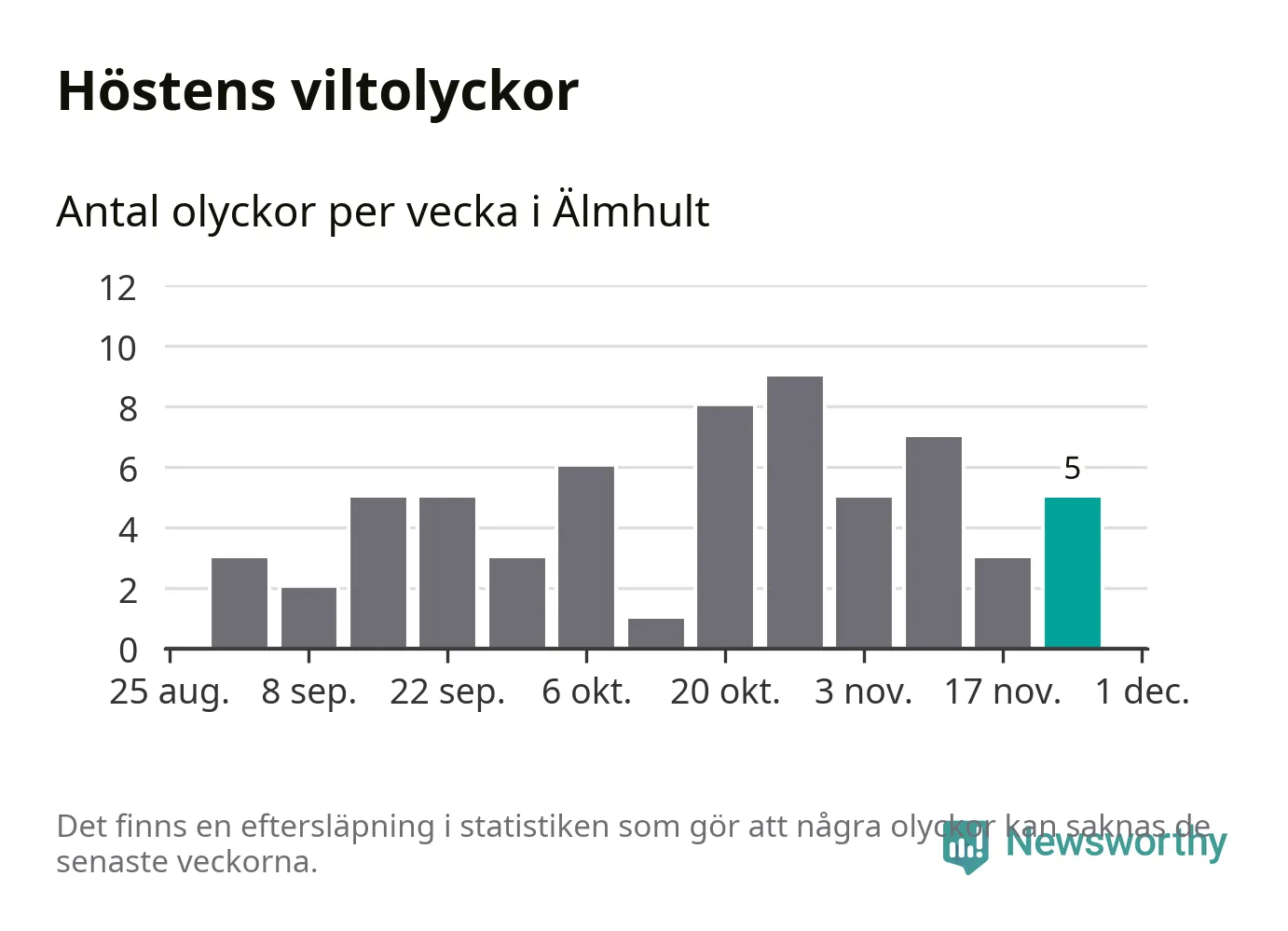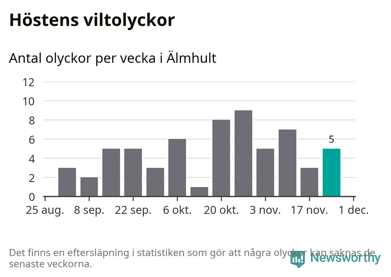 Hittills har fem viltolyckor rapporterats in i Älmhults kommun från vecka 48. Se listan här.