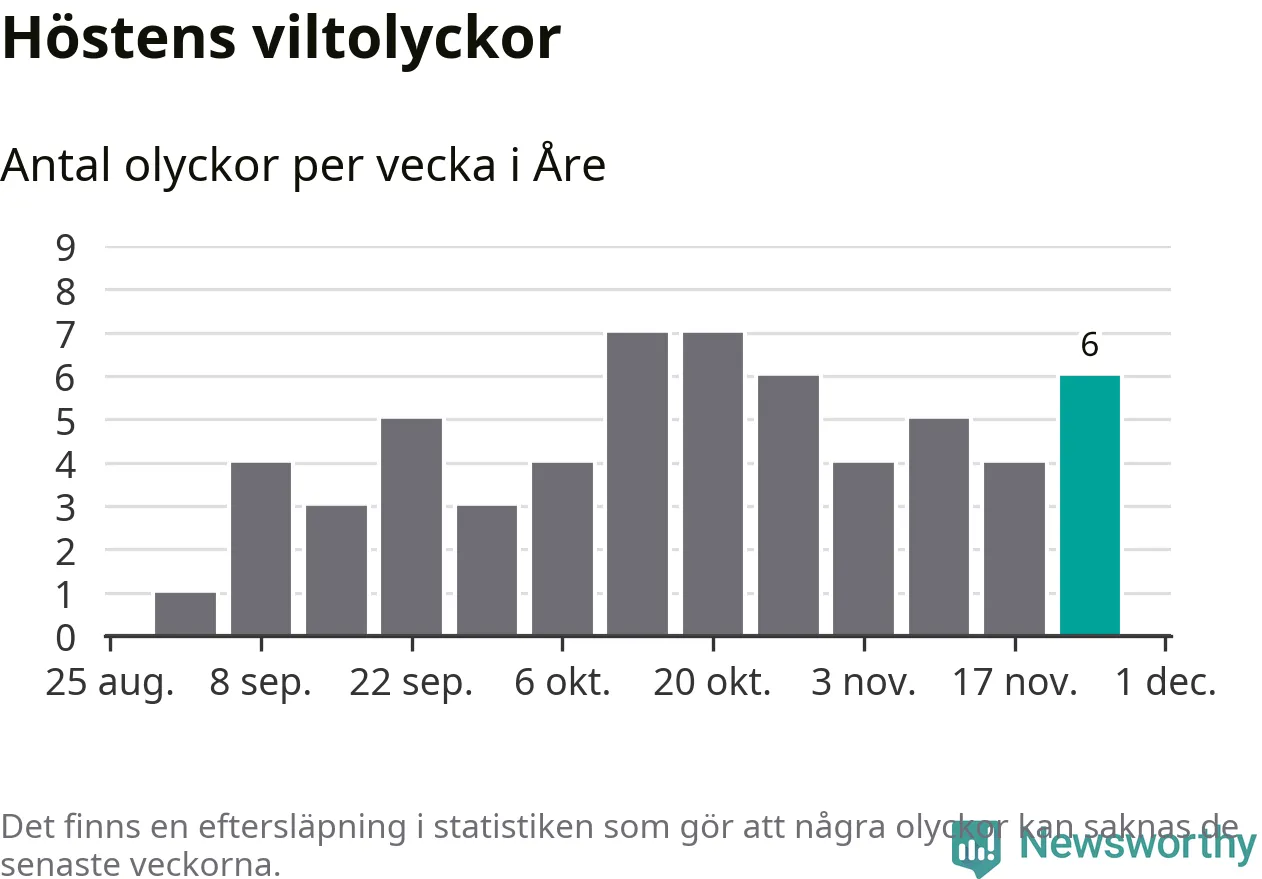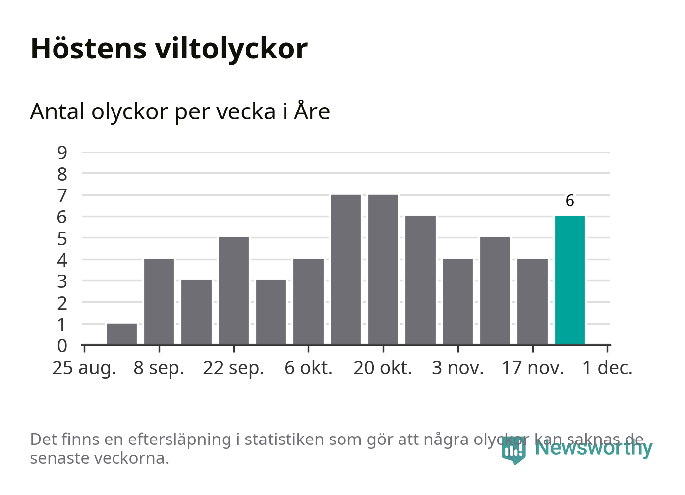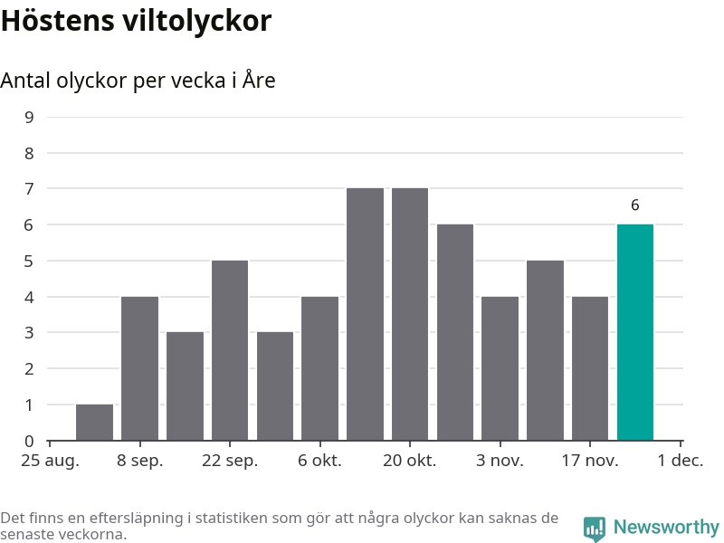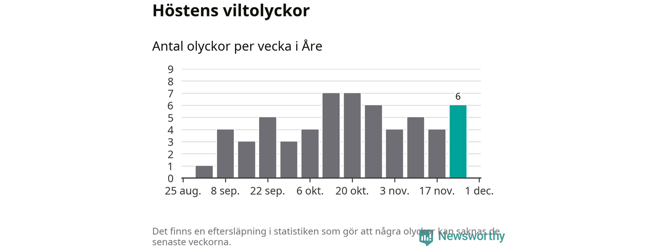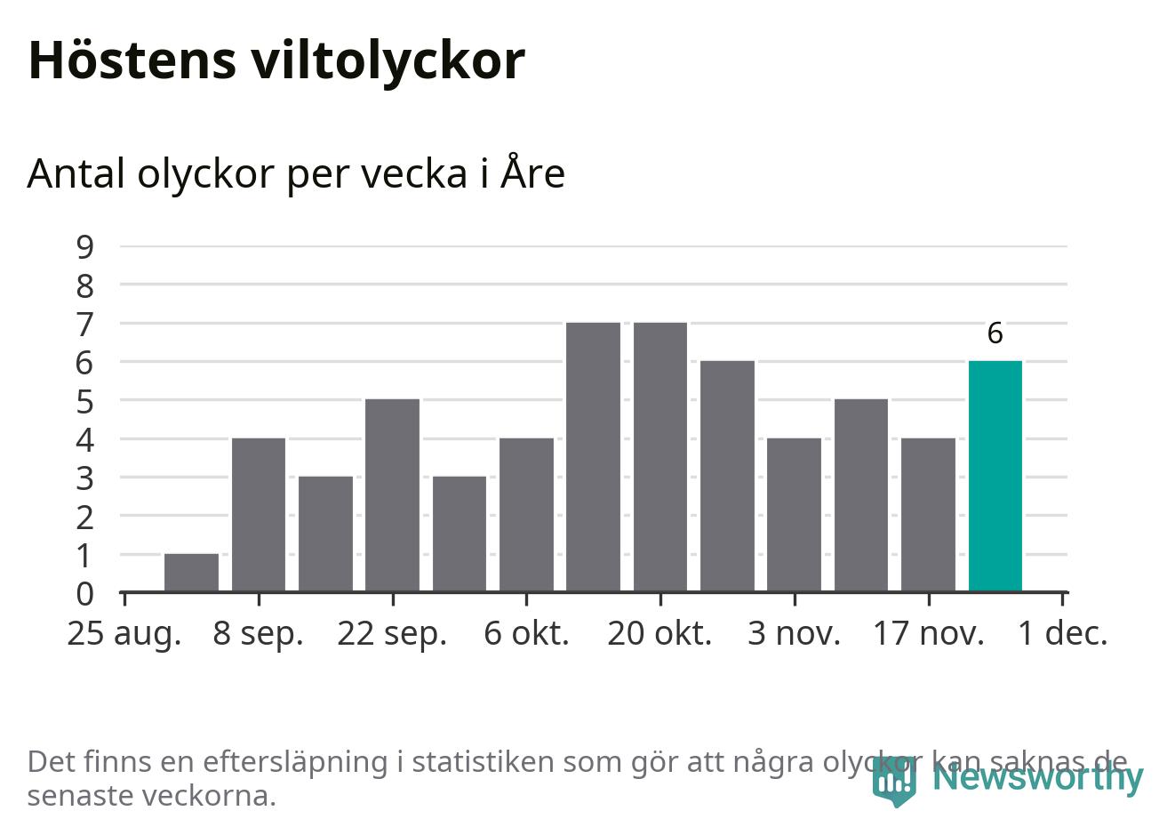 Hittills har sex viltolyckor rapporterats in i Åre kommun från vecka 48. Se listan här.