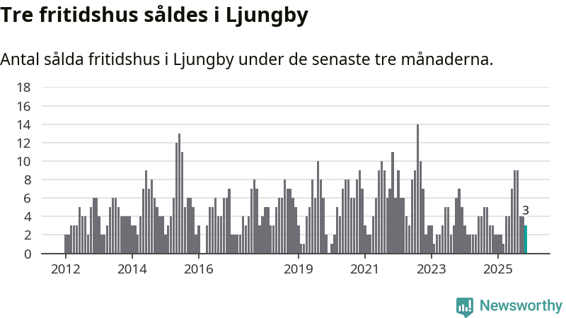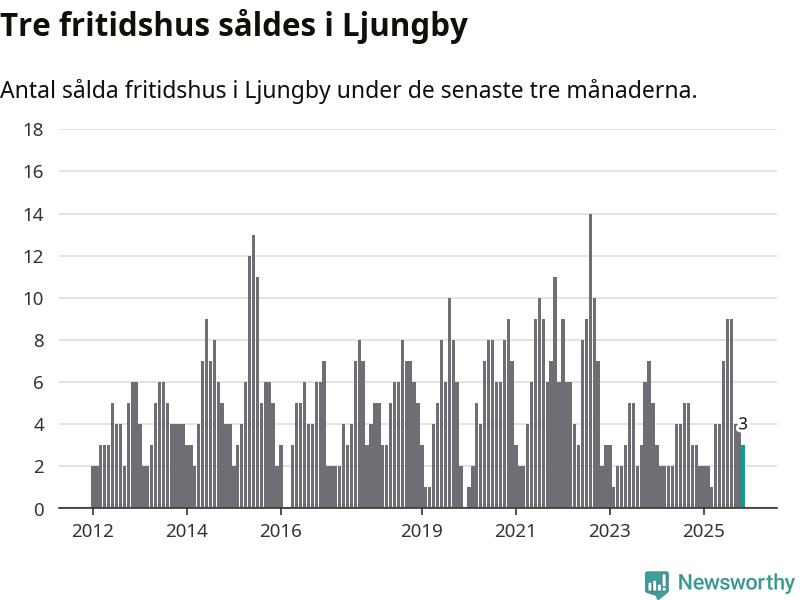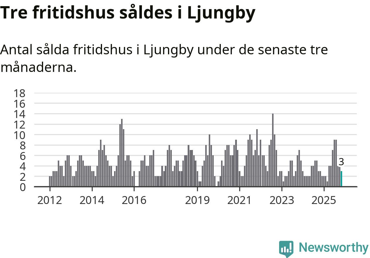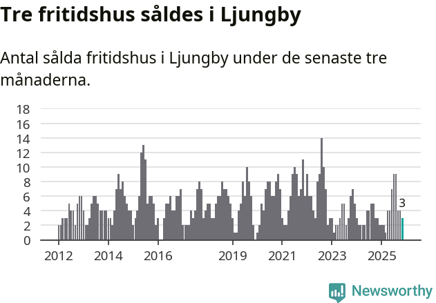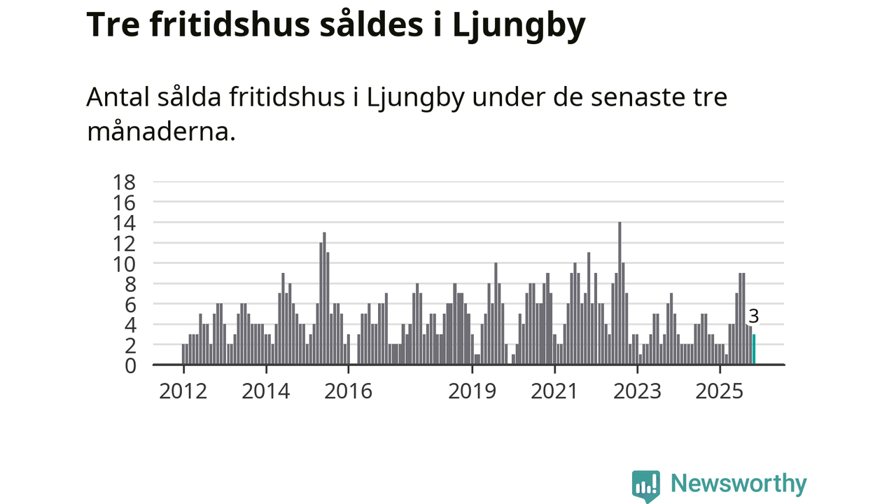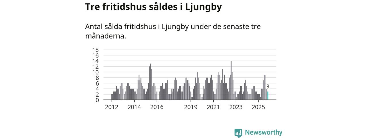 Mellan september och november gjordes sammanlagt tre affärer med fritidshus i Ljungby kommun. Det är lika många affärer som vid motsvarande tid i fjol.