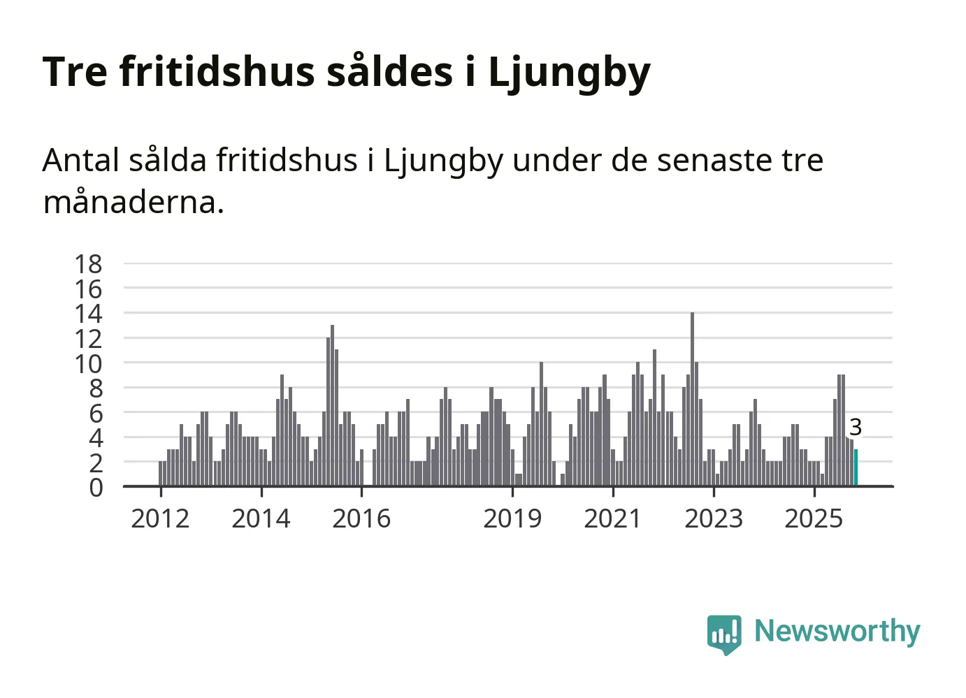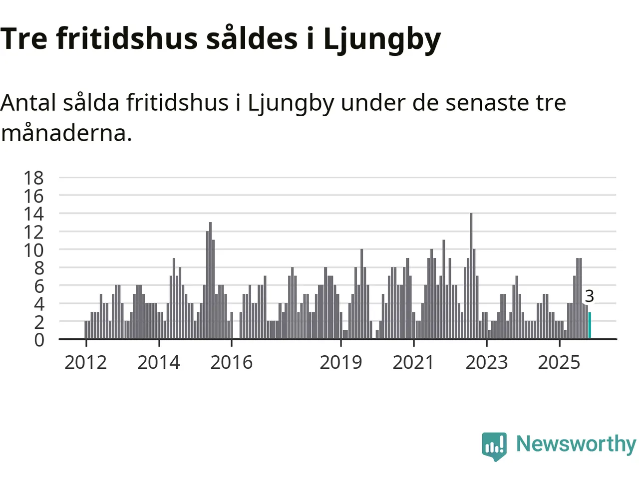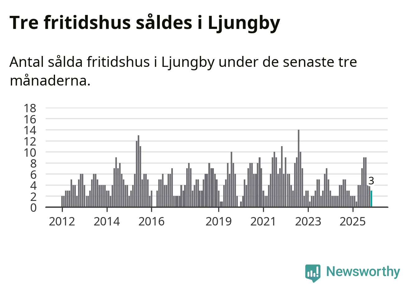 Mellan september och november gjordes sammanlagt tre affärer med fritidshus i Ljungby kommun. Det är lika många affärer som vid motsvarande tid i fjol.