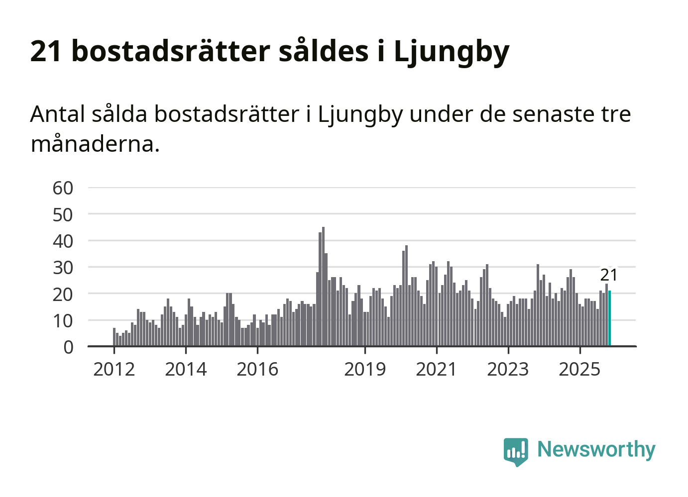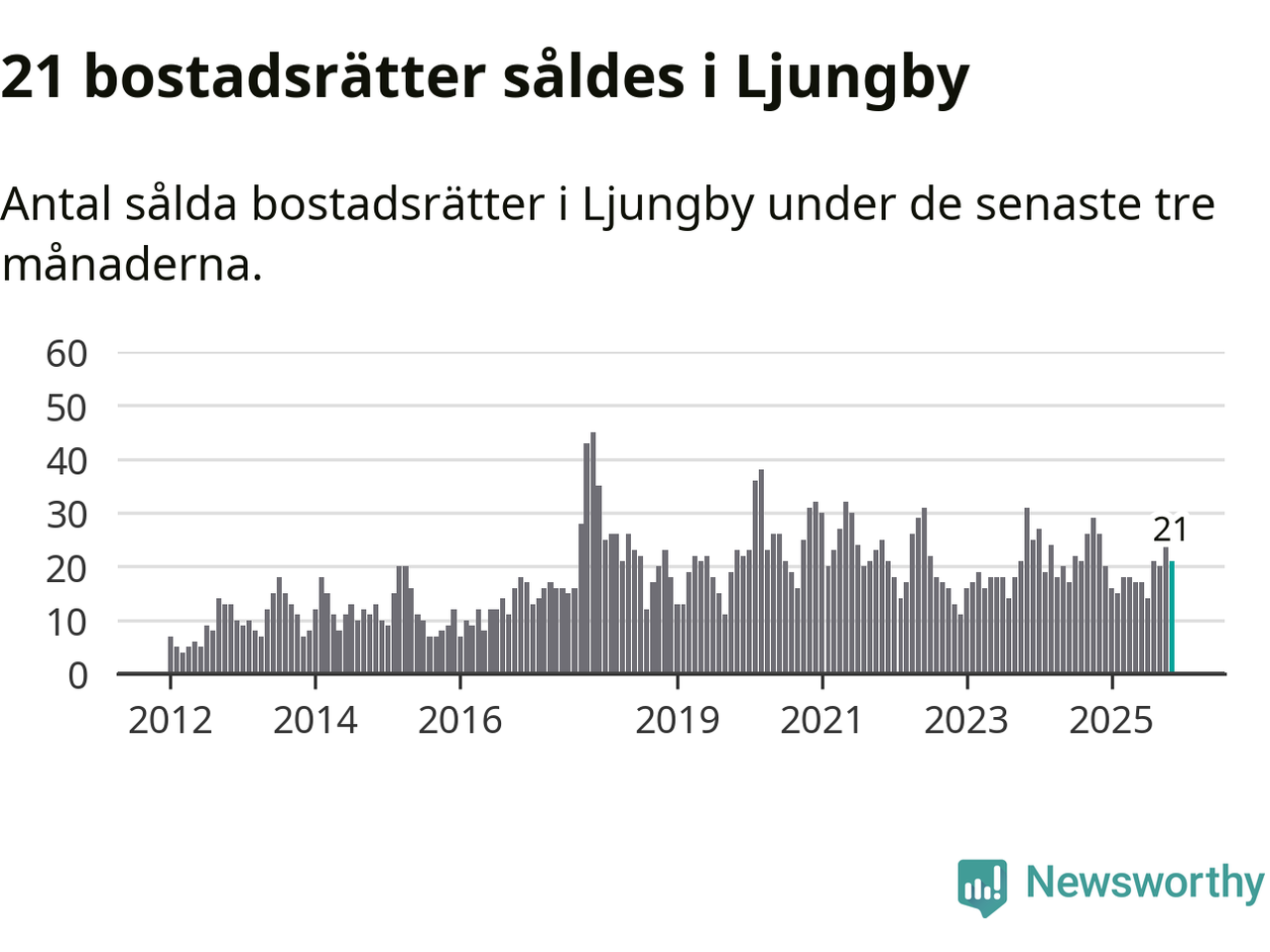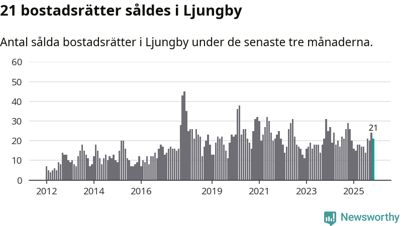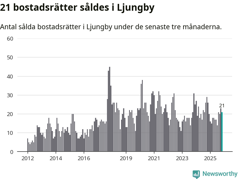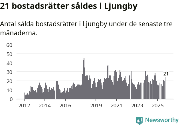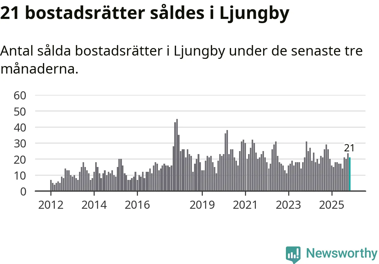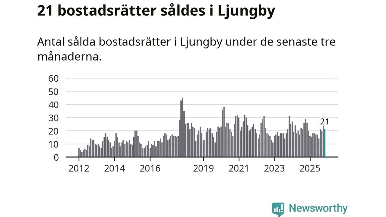 Mellan september och november gjordes sammanlagt 21 affärer med bostadsrätter i Ljungby kommun. Det kan jämföras med 26 vid motsvarande tid i fjol.