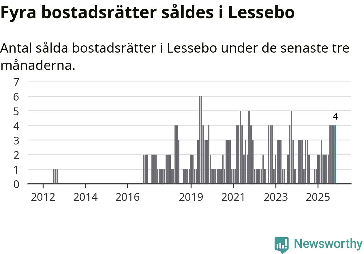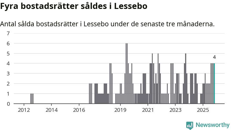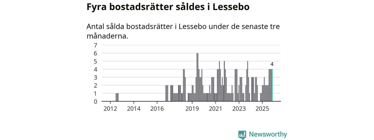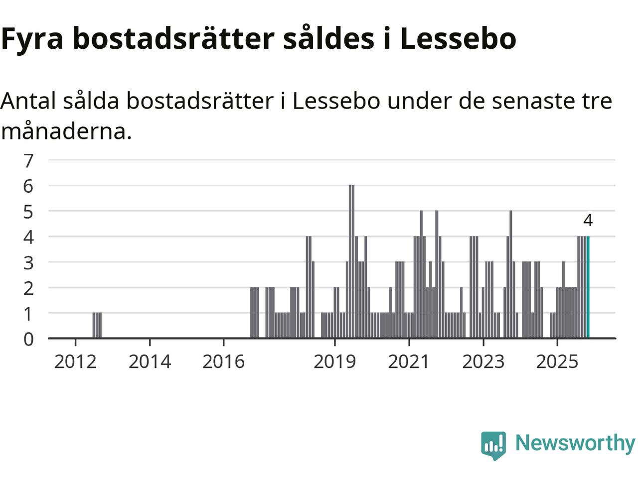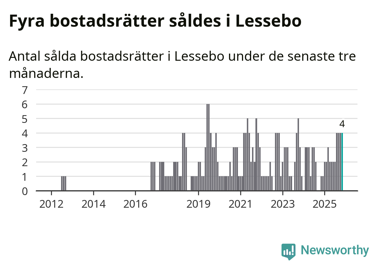Mellan september och november gjordes sammanlagt fyra affärer med bostadsrätter i Lessebo kommun. Det kan jämföras med ett vid motsvarande tid i fjol.