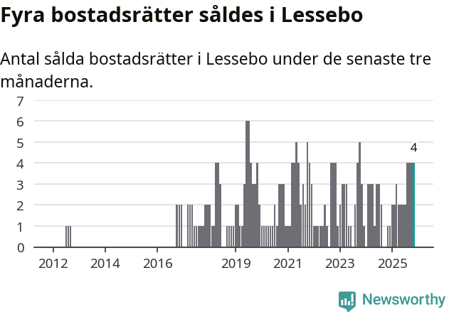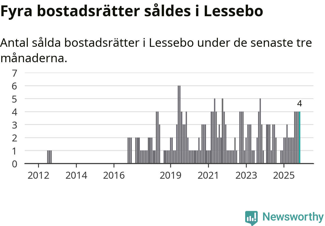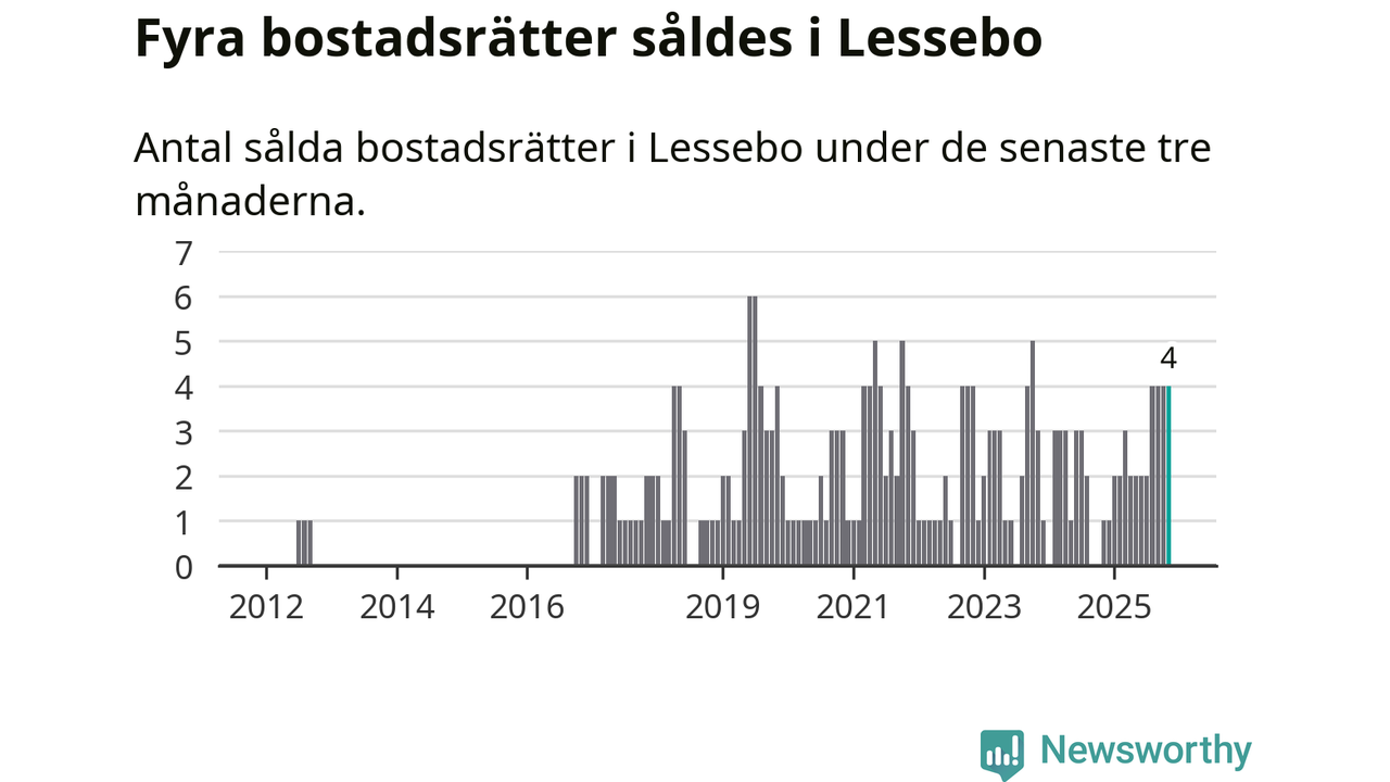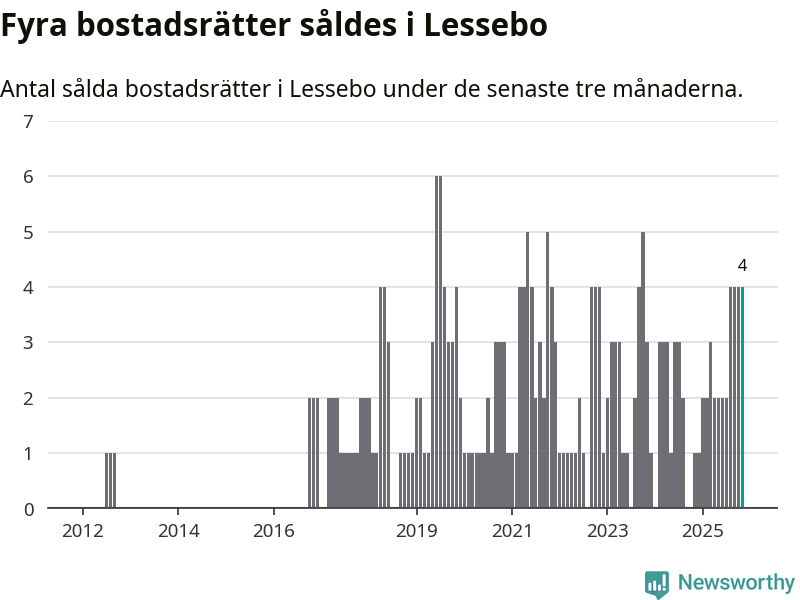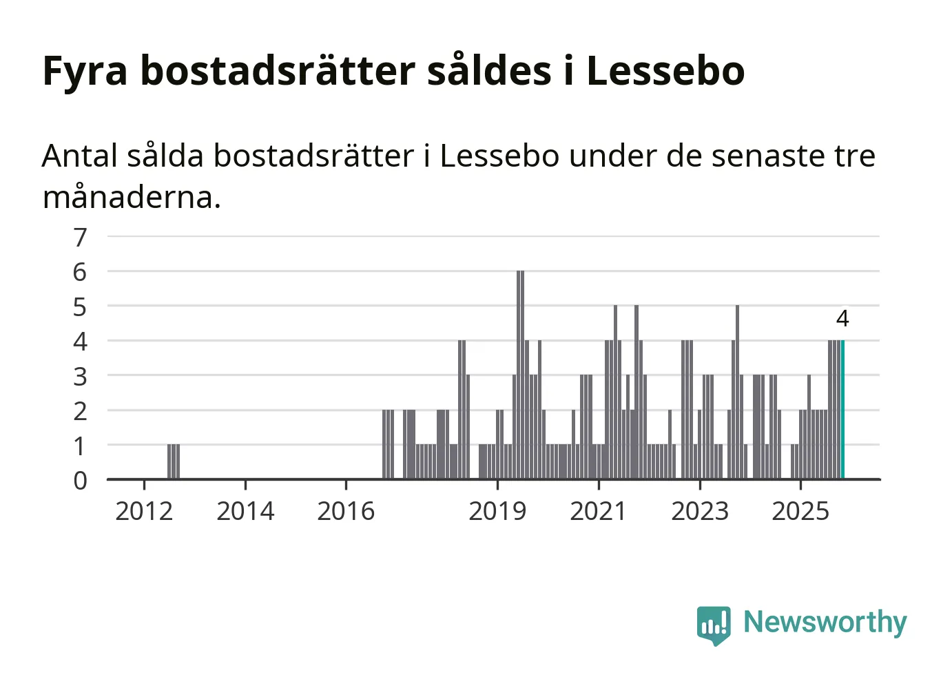 Mellan september och november gjordes sammanlagt fyra affärer med bostadsrätter i Lessebo kommun. Det kan jämföras med ett vid motsvarande tid i fjol.