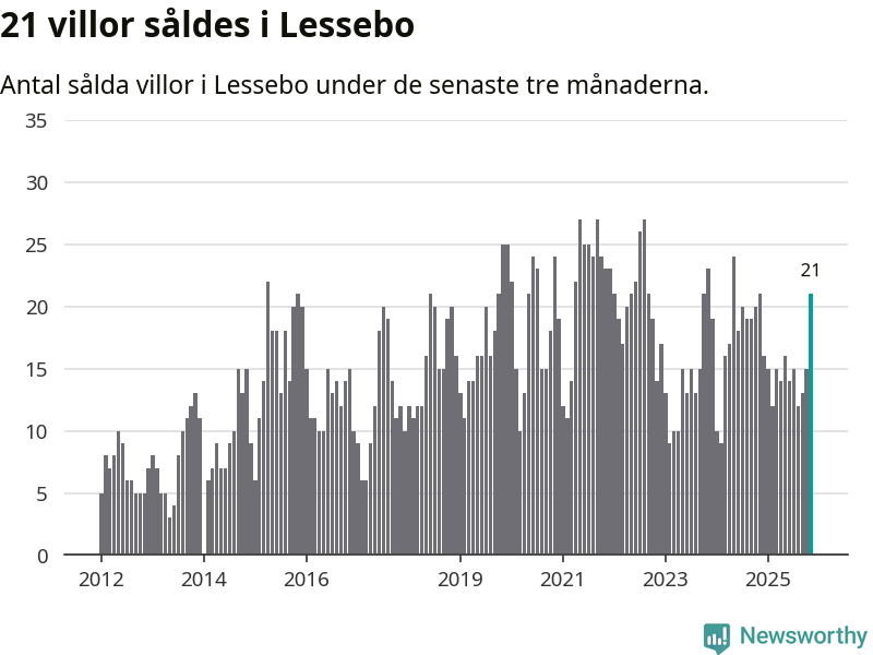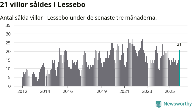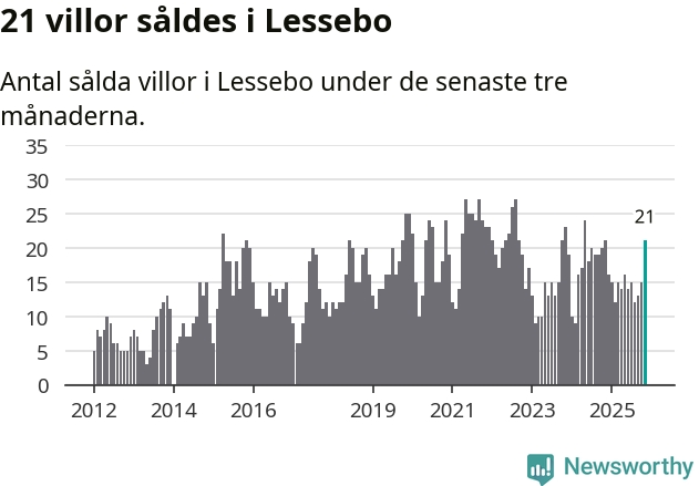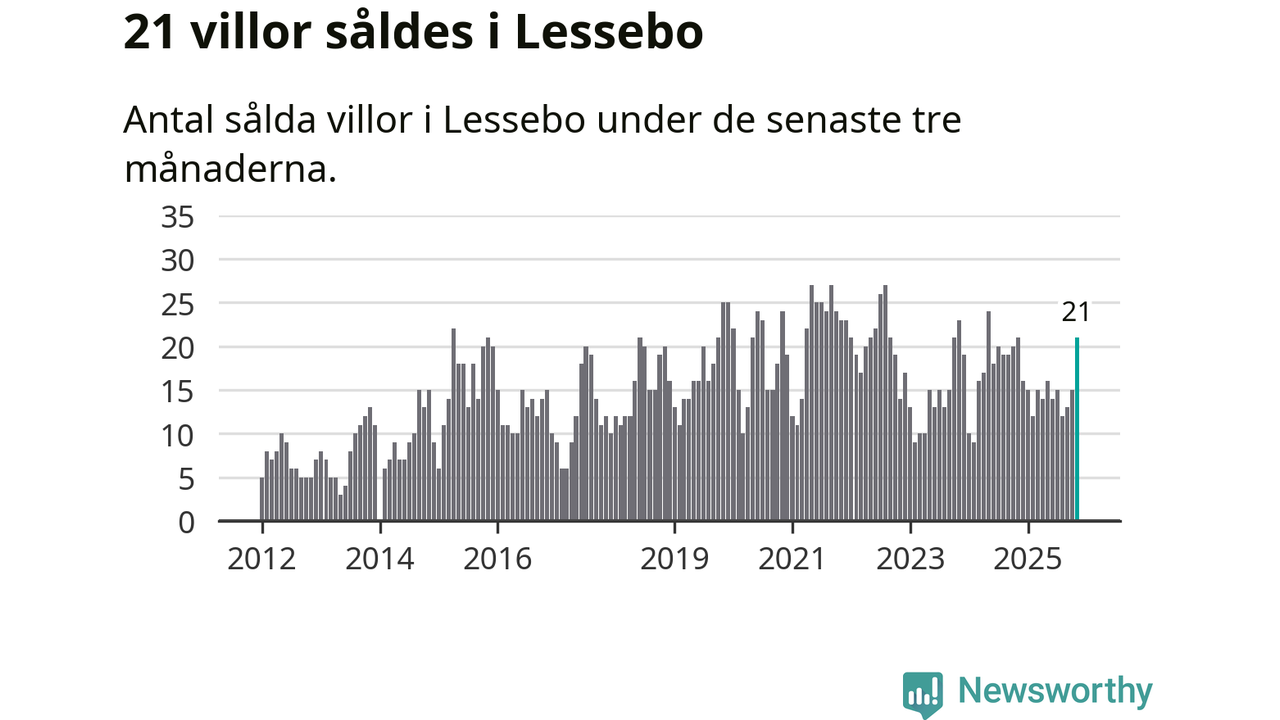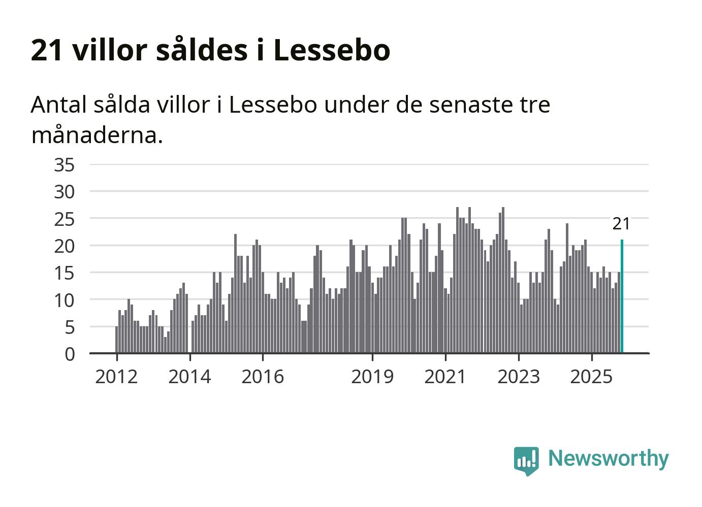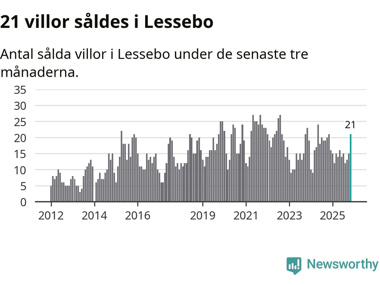 Mellan september och november gjordes sammanlagt 21 affärer med villor i Lessebo kommun. Det är lika många affärer som vid motsvarande tid i fjol.