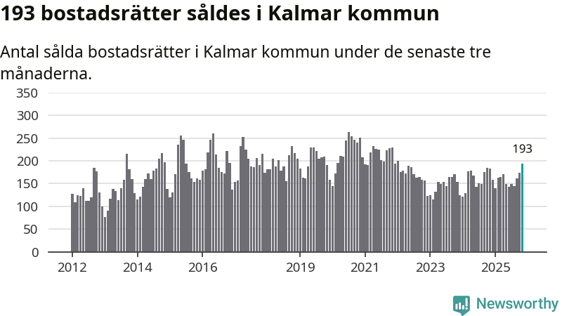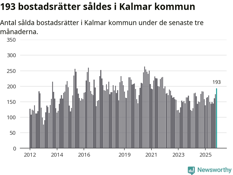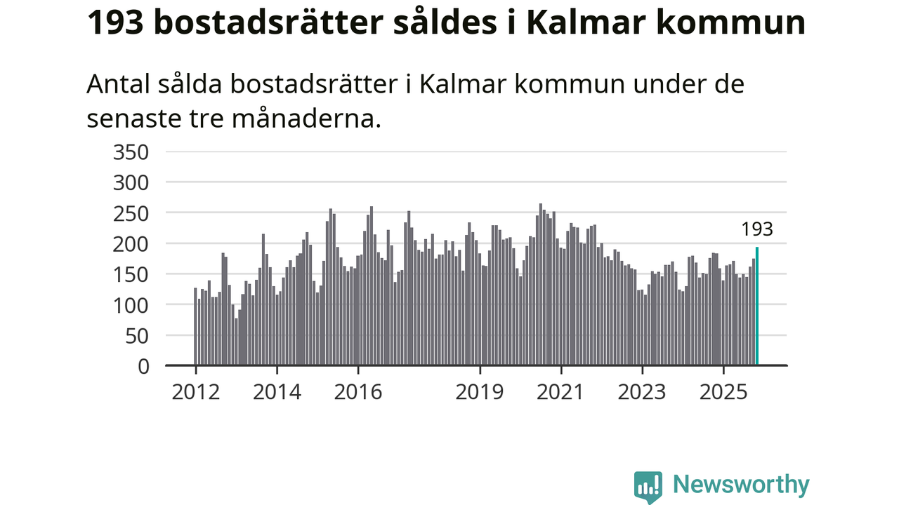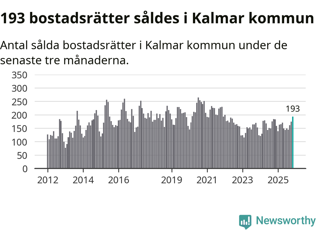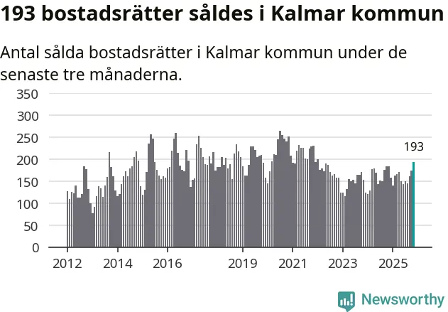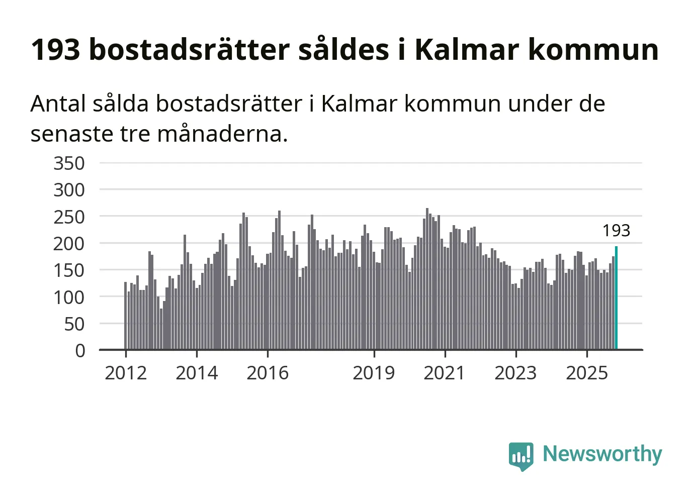 Sammanlagt såldes 193 bostadsrätter i Kalmar kommun mellan september och november till ett genomsnittligt pris på 1,7 miljoner kronor. I fjol gjordes 183 affärer vid den här tiden på året.