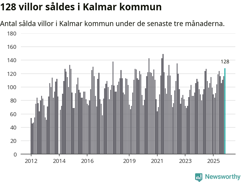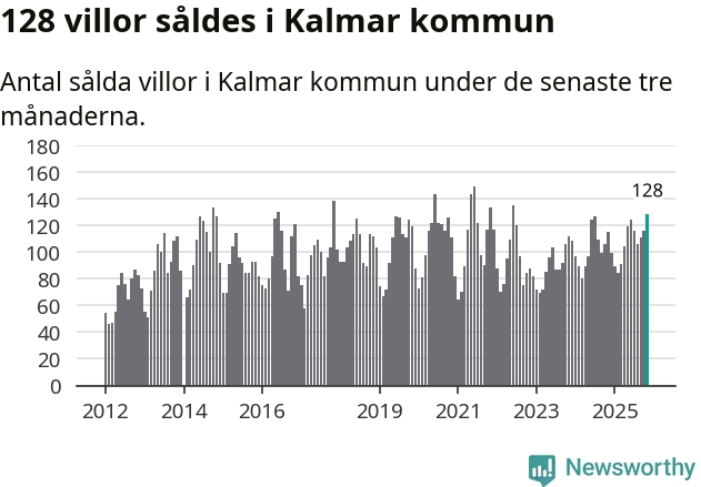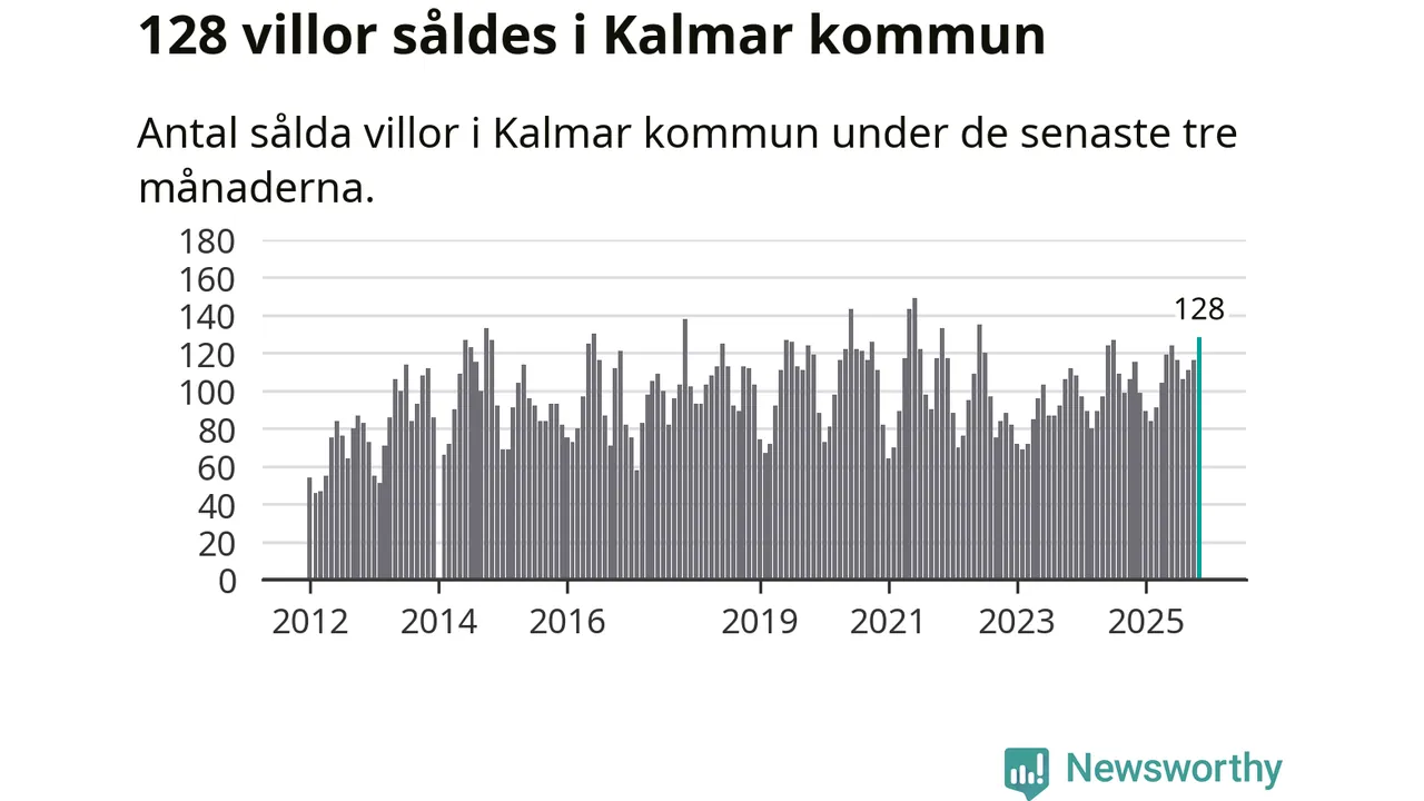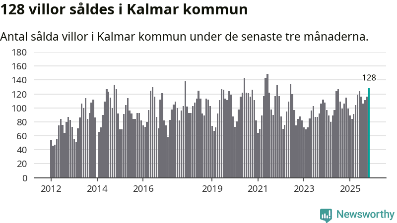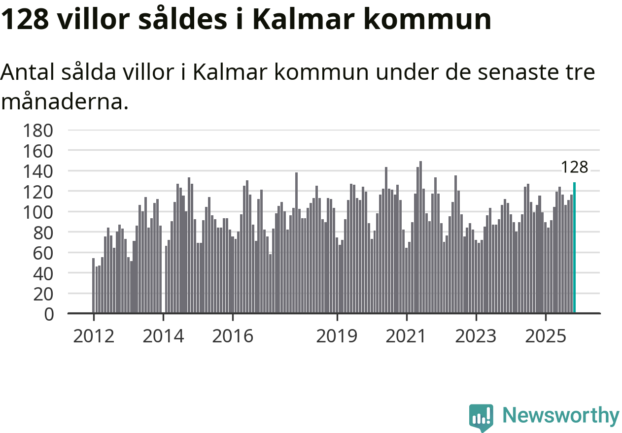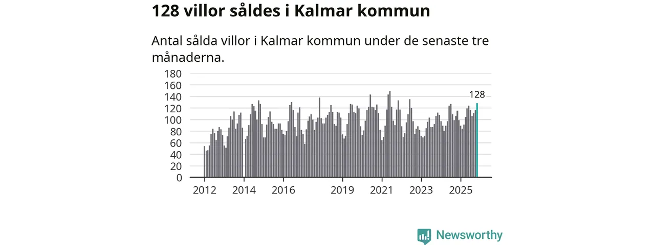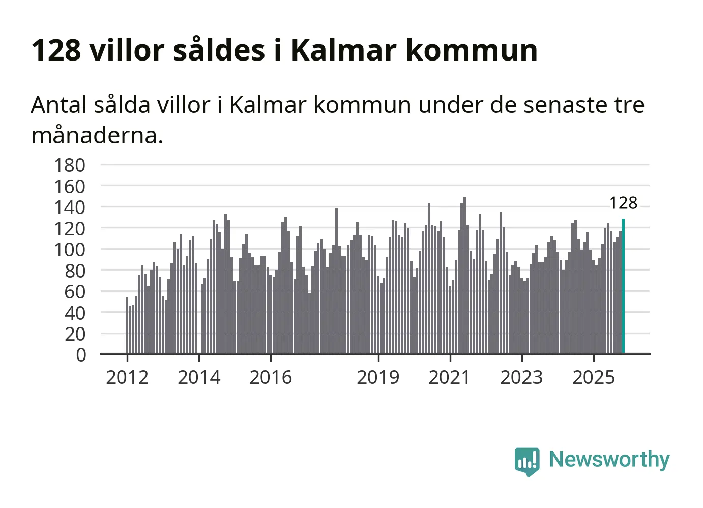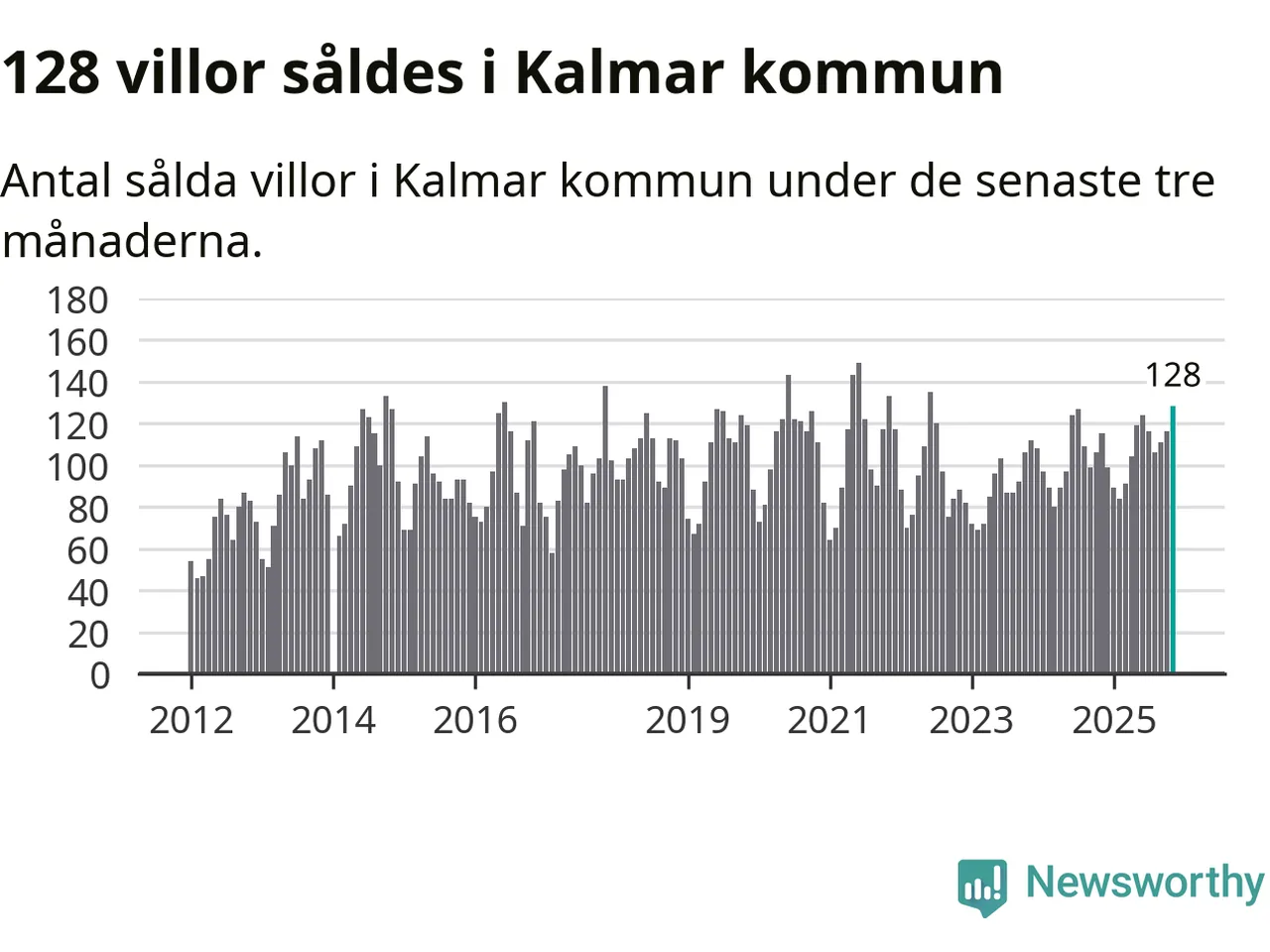 Mellan september och november såldes 128 villor i Kalmar kommun. Det är fler än någon tremånadersperiod sedan 2022.